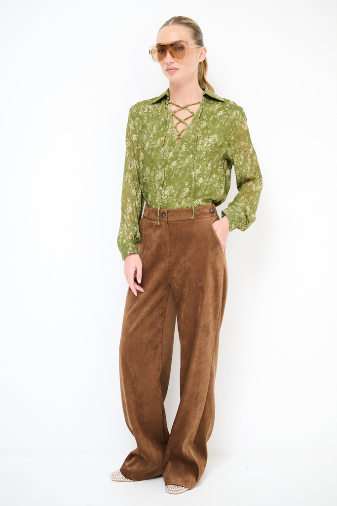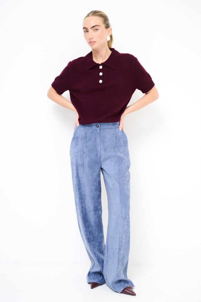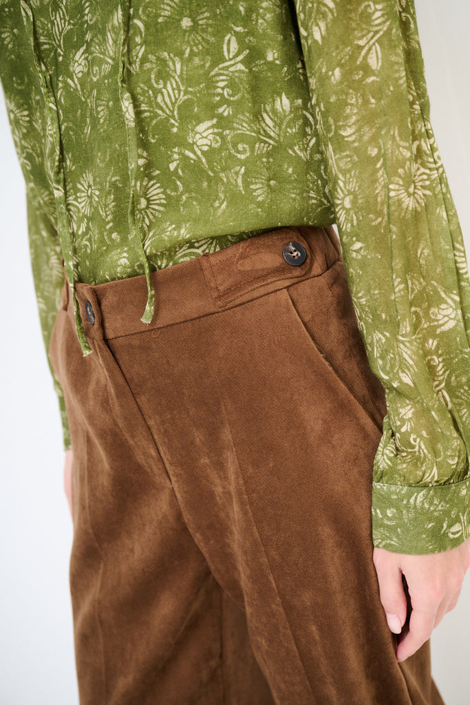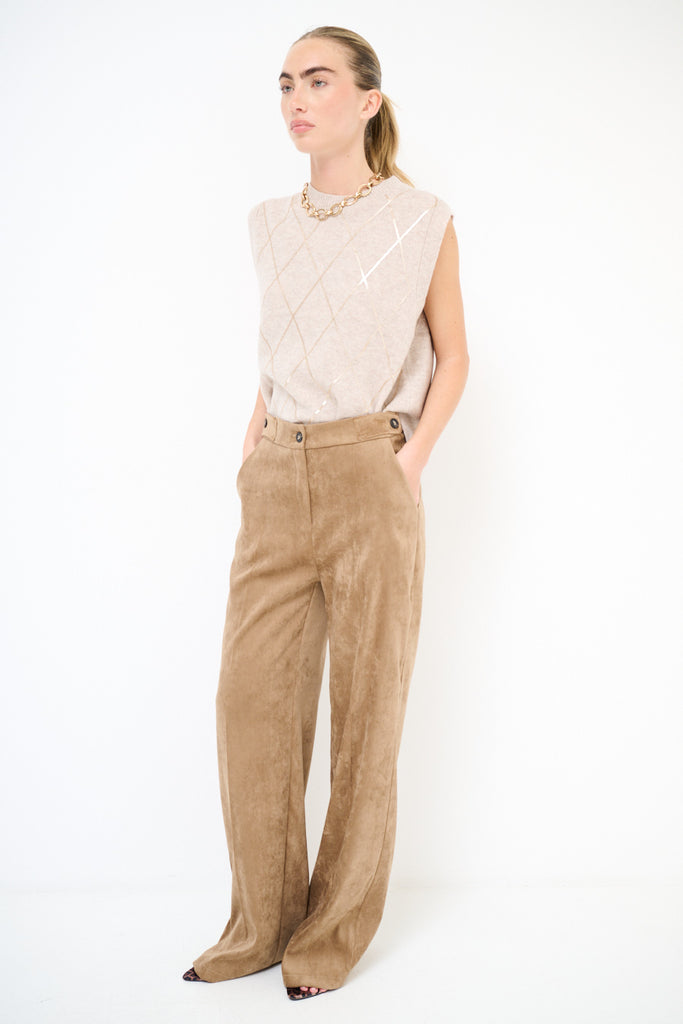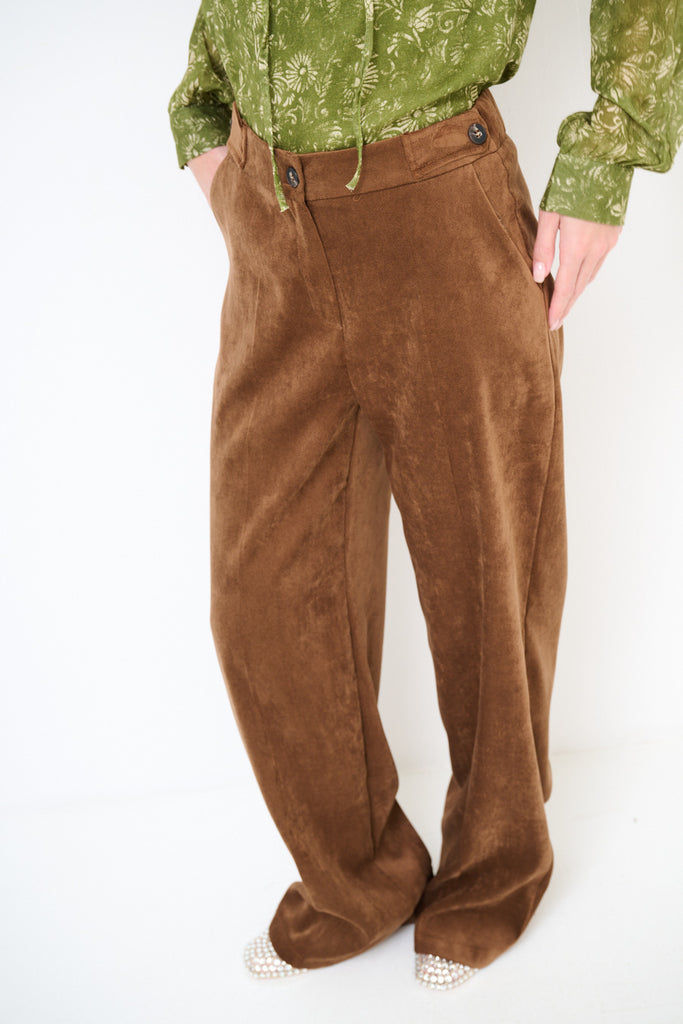 - Getailleerde broek met een gladde suède-achtige afwerking