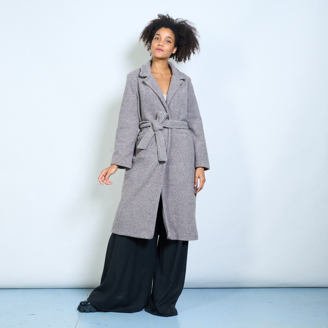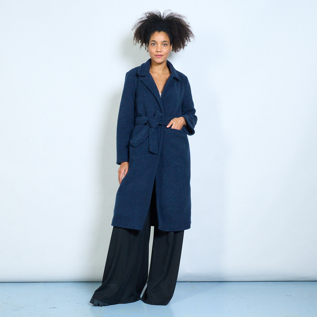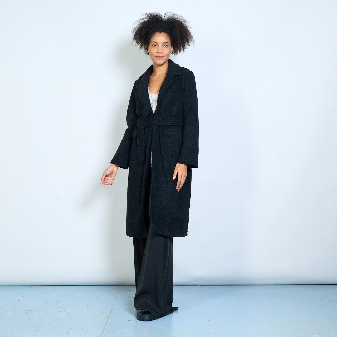Groothandel lange wikkeljas met reverskraag en riem