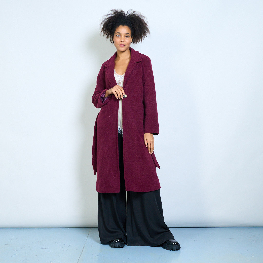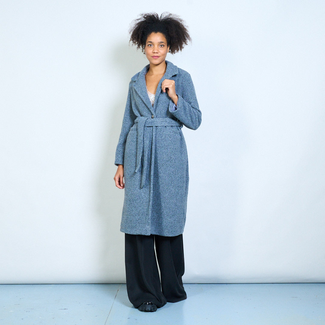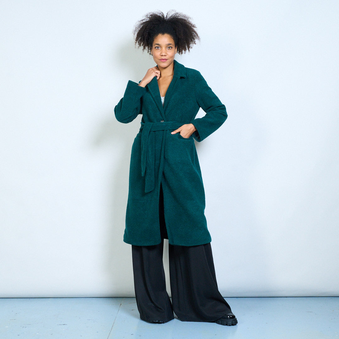 Groothandel lange wikkeljas met reverskraag en riem