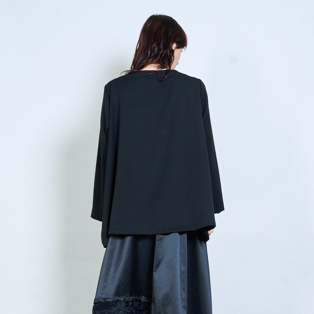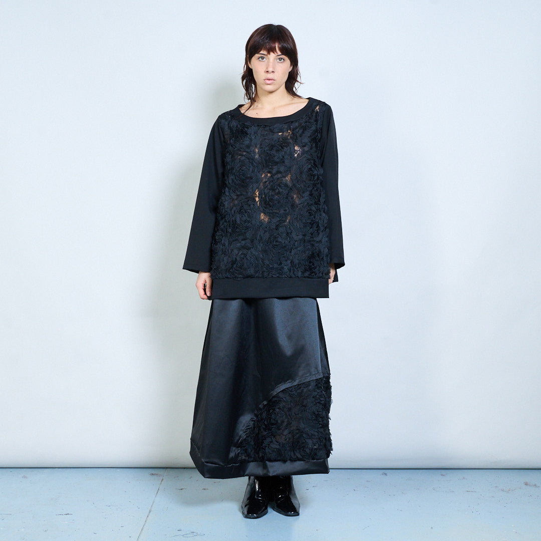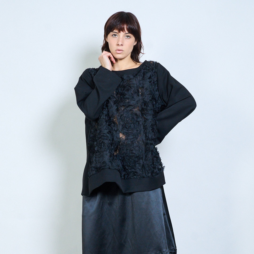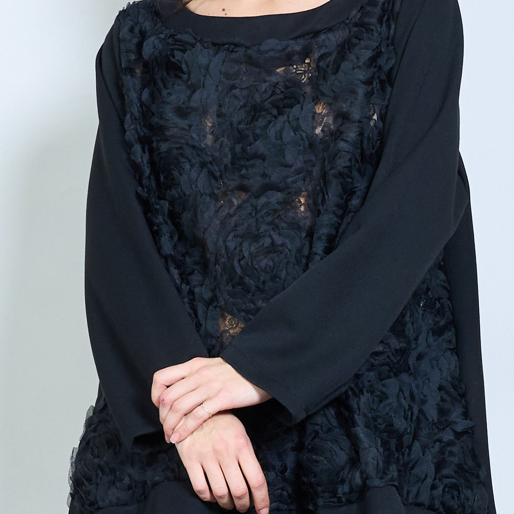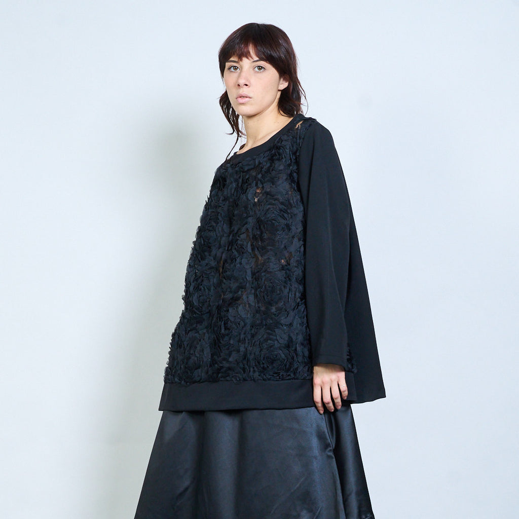 Groothandel top met lange mouwen en getextureerde bloemenapplicatie op het voorpaneel