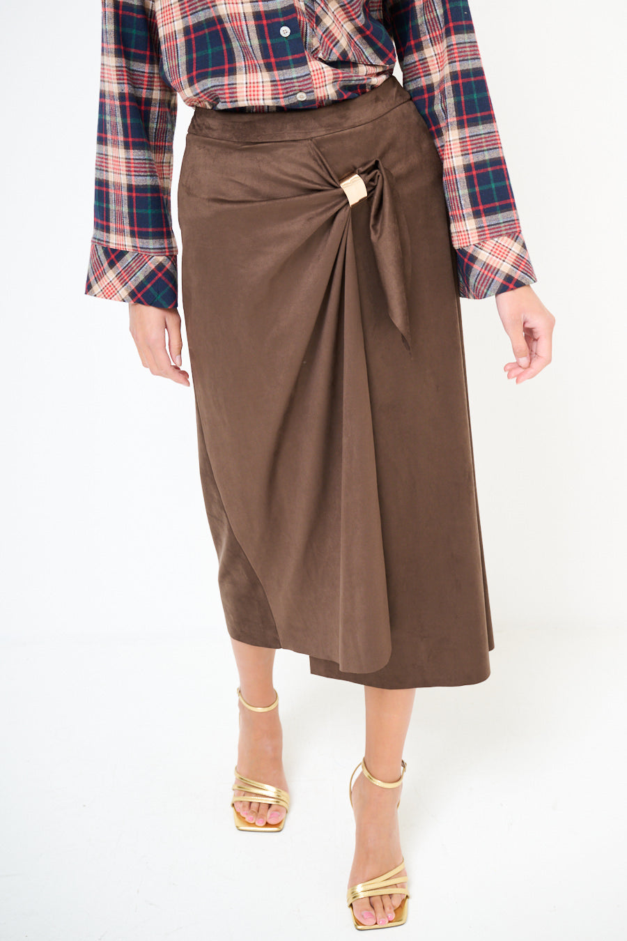 Gedrapeerde knoop midi -rok met metalen accent groothandel