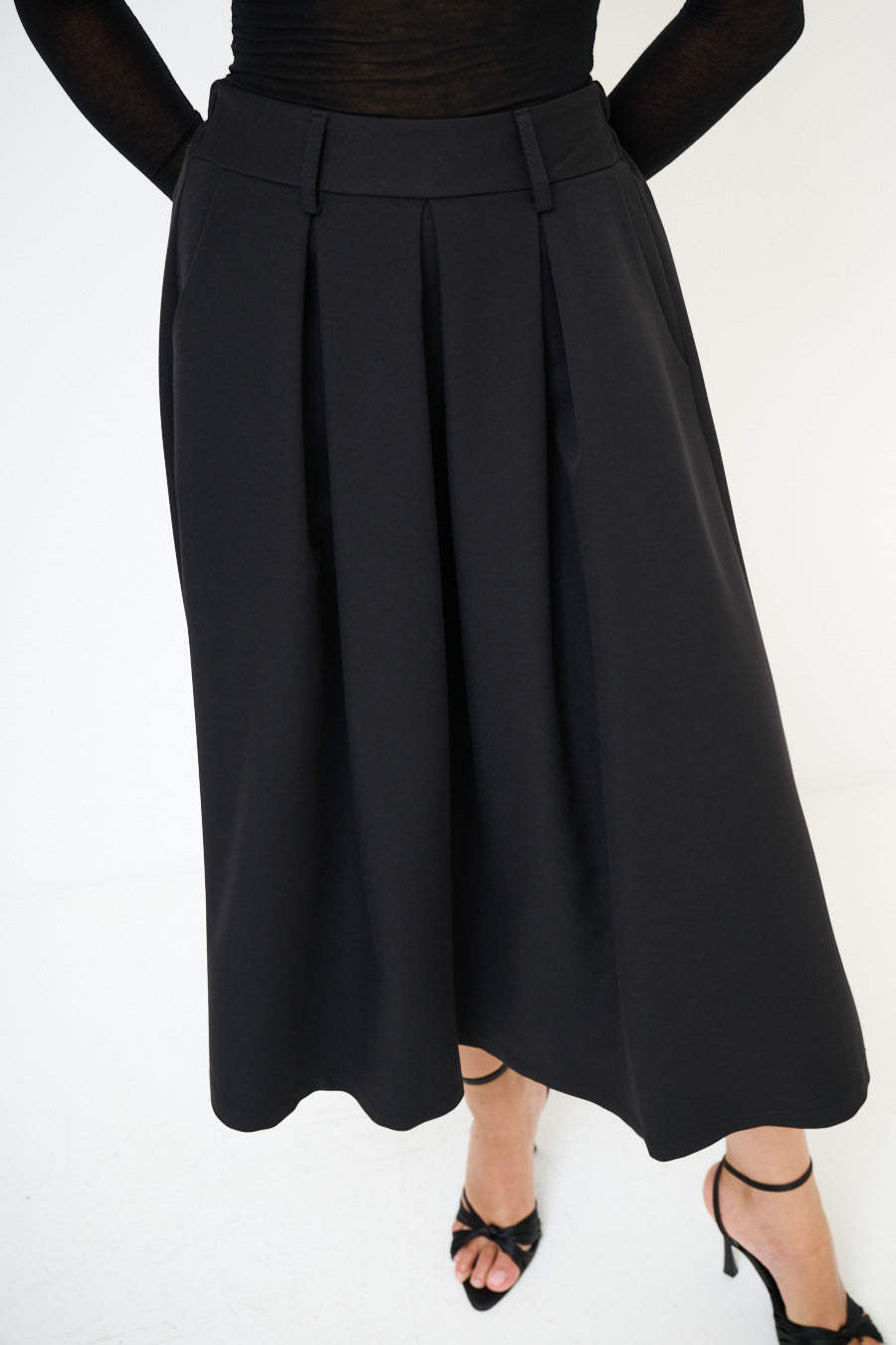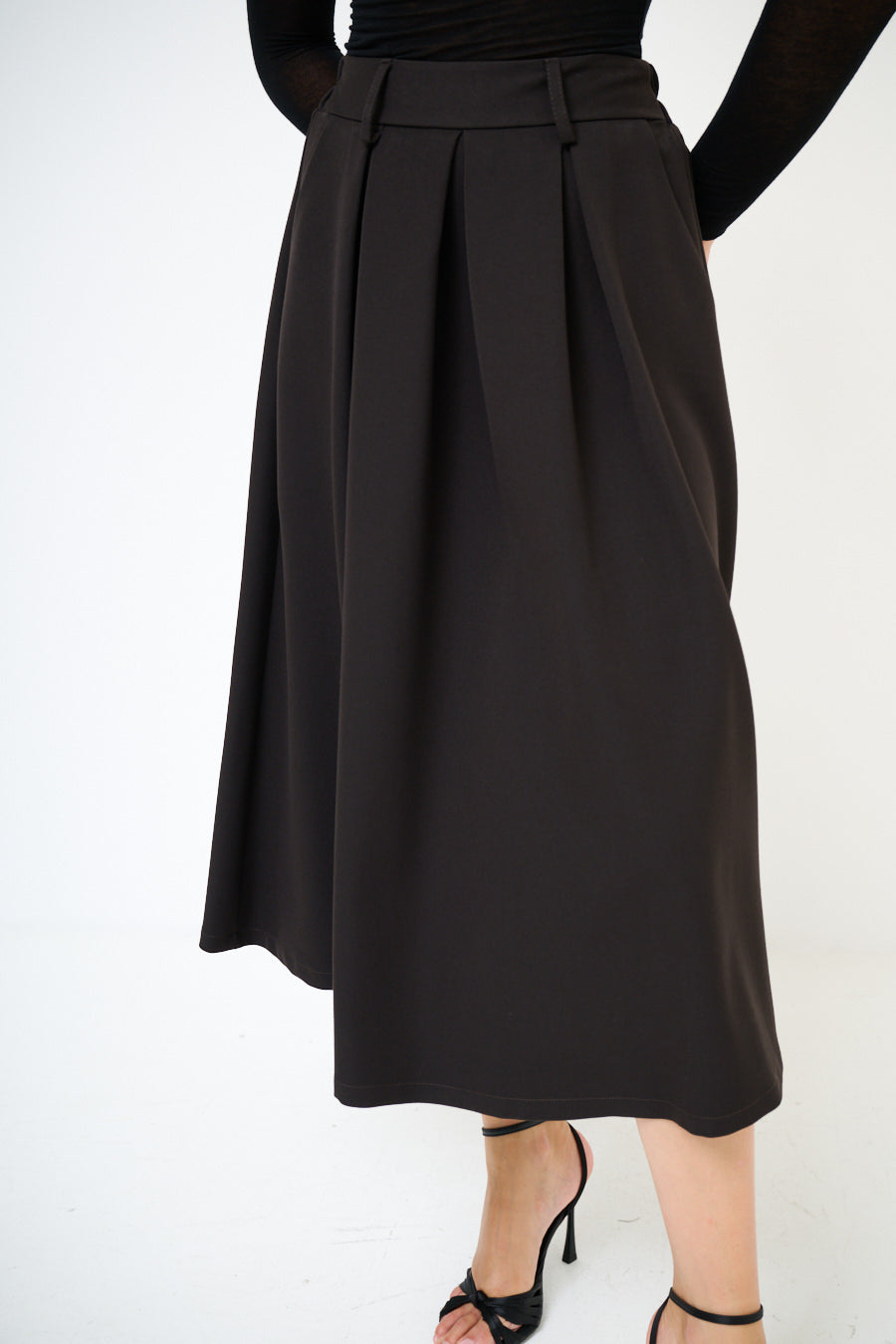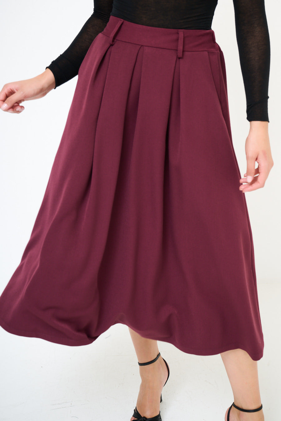 Geplooide hoge taille midi rok met riemlussen groothandel