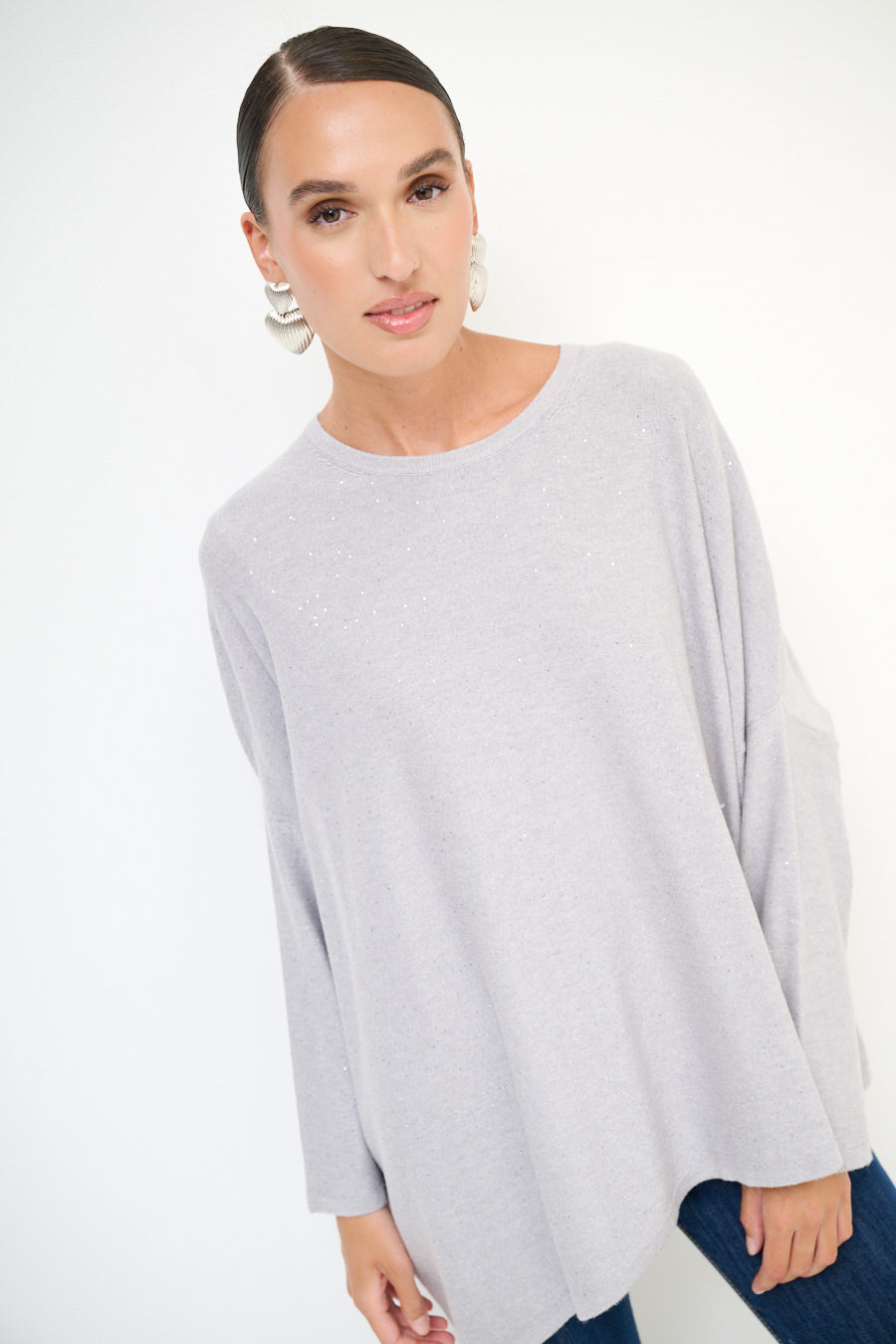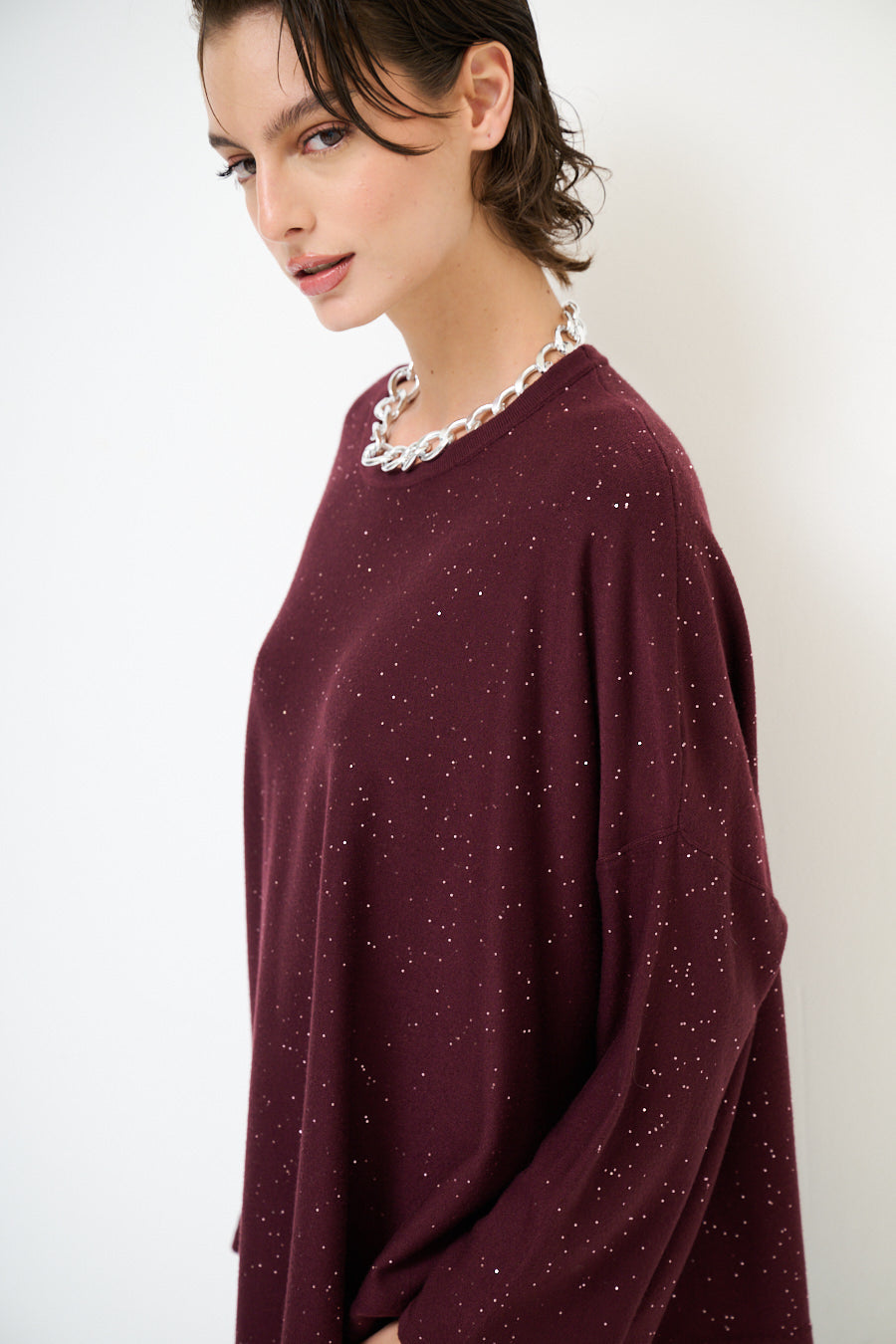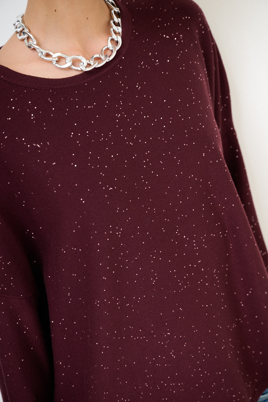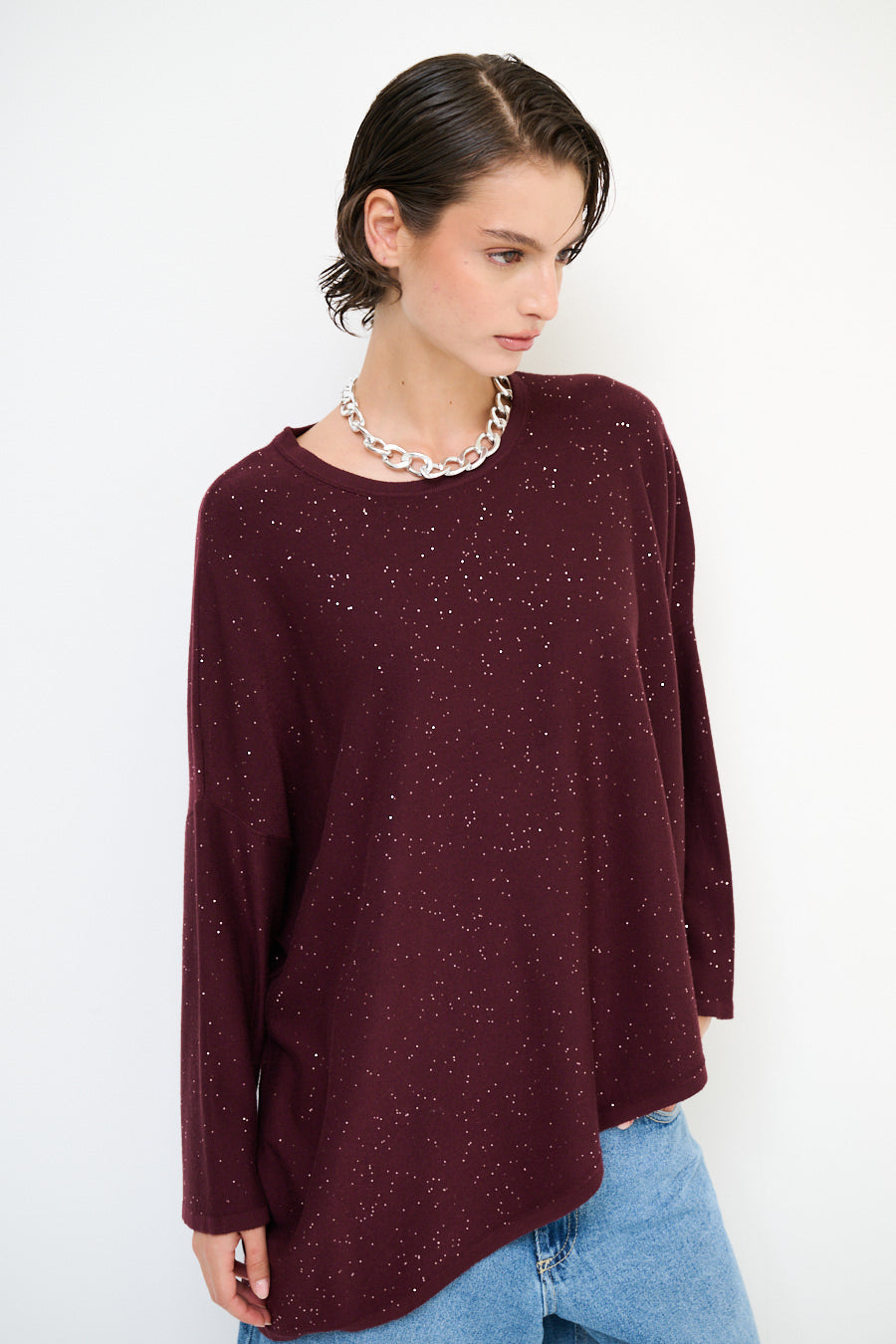 Oversized glans detail gebreide pullover groothandel