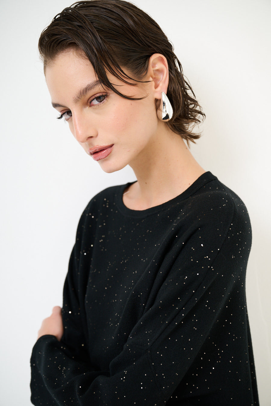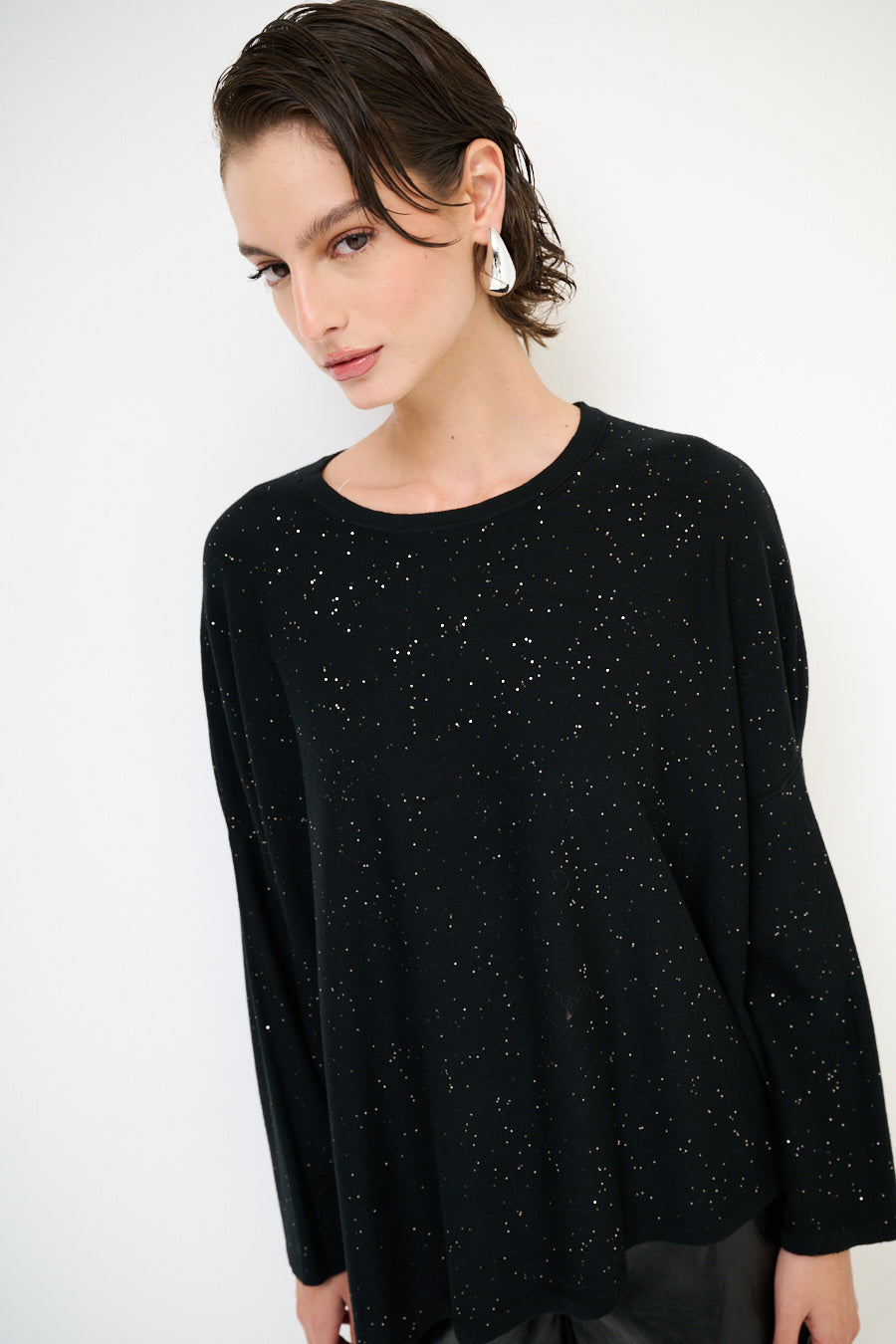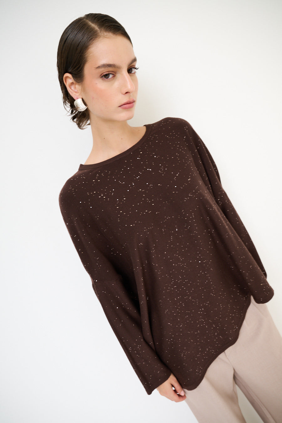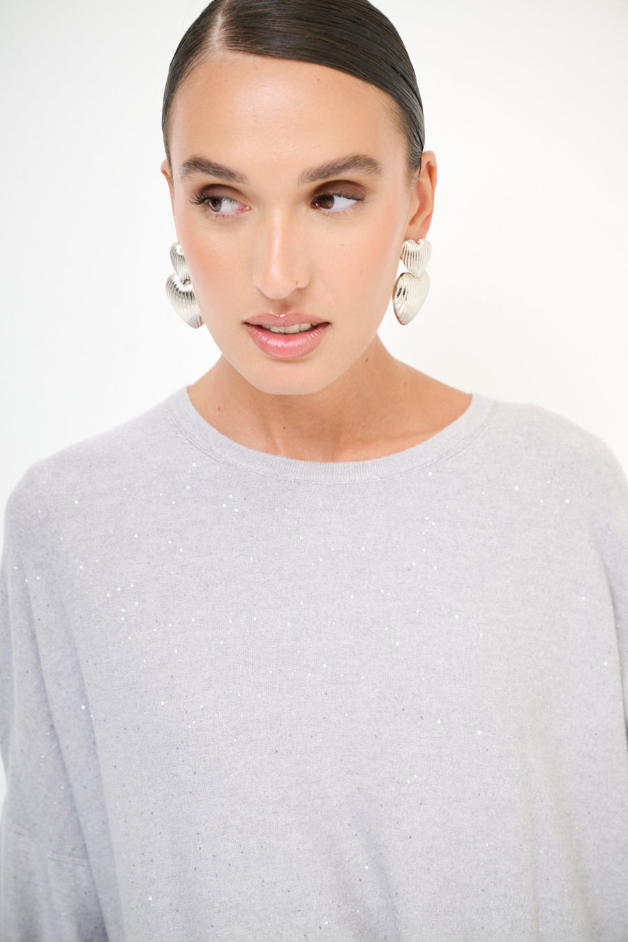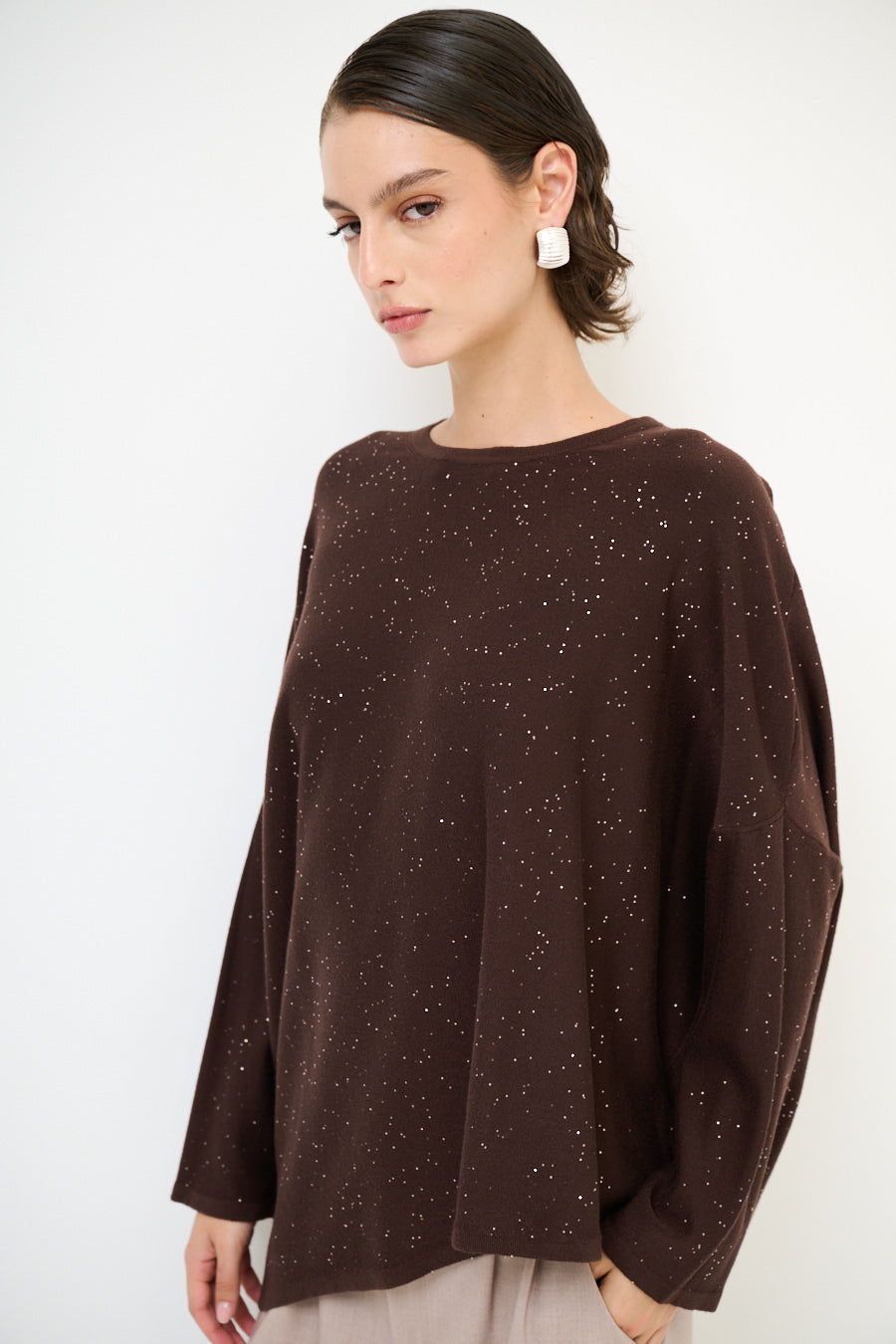 Oversized glans detail gebreide pullover groothandel