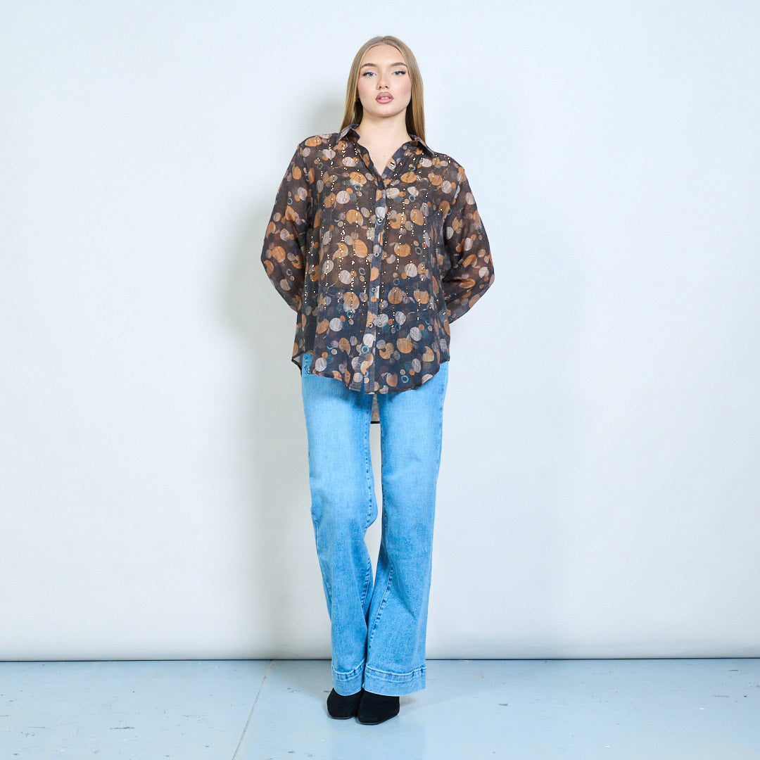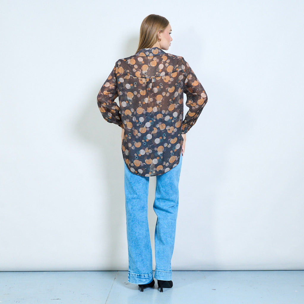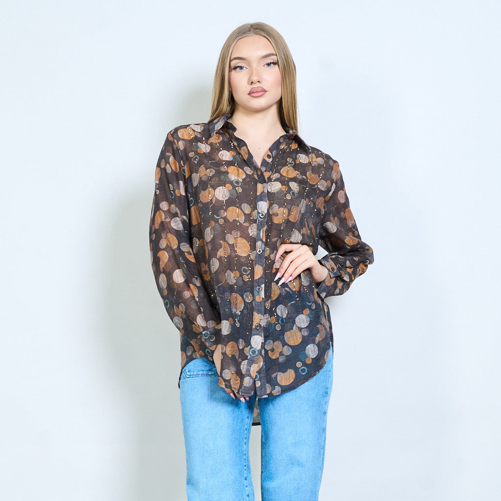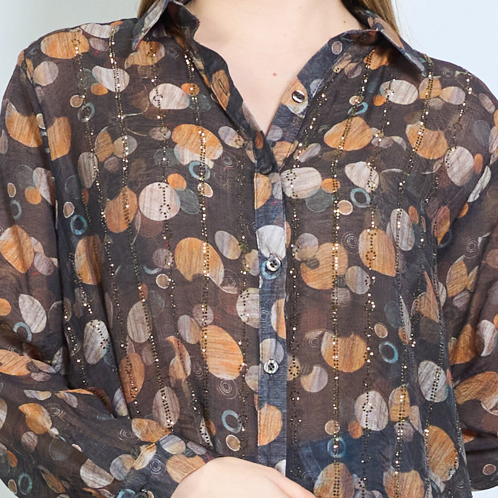 - Blouse ontworpen met een abstracte gelaagde cirkelvormige stippenafbeelding voor een moderne textuurlook