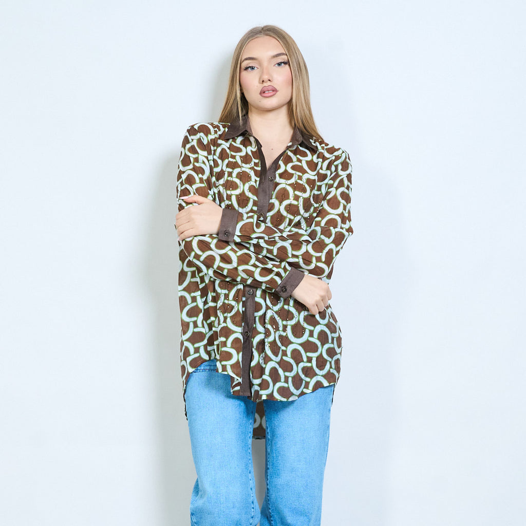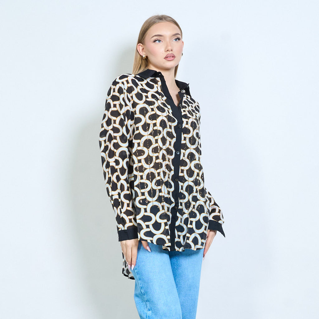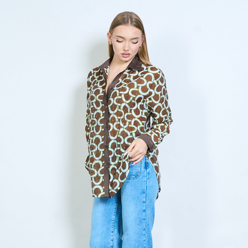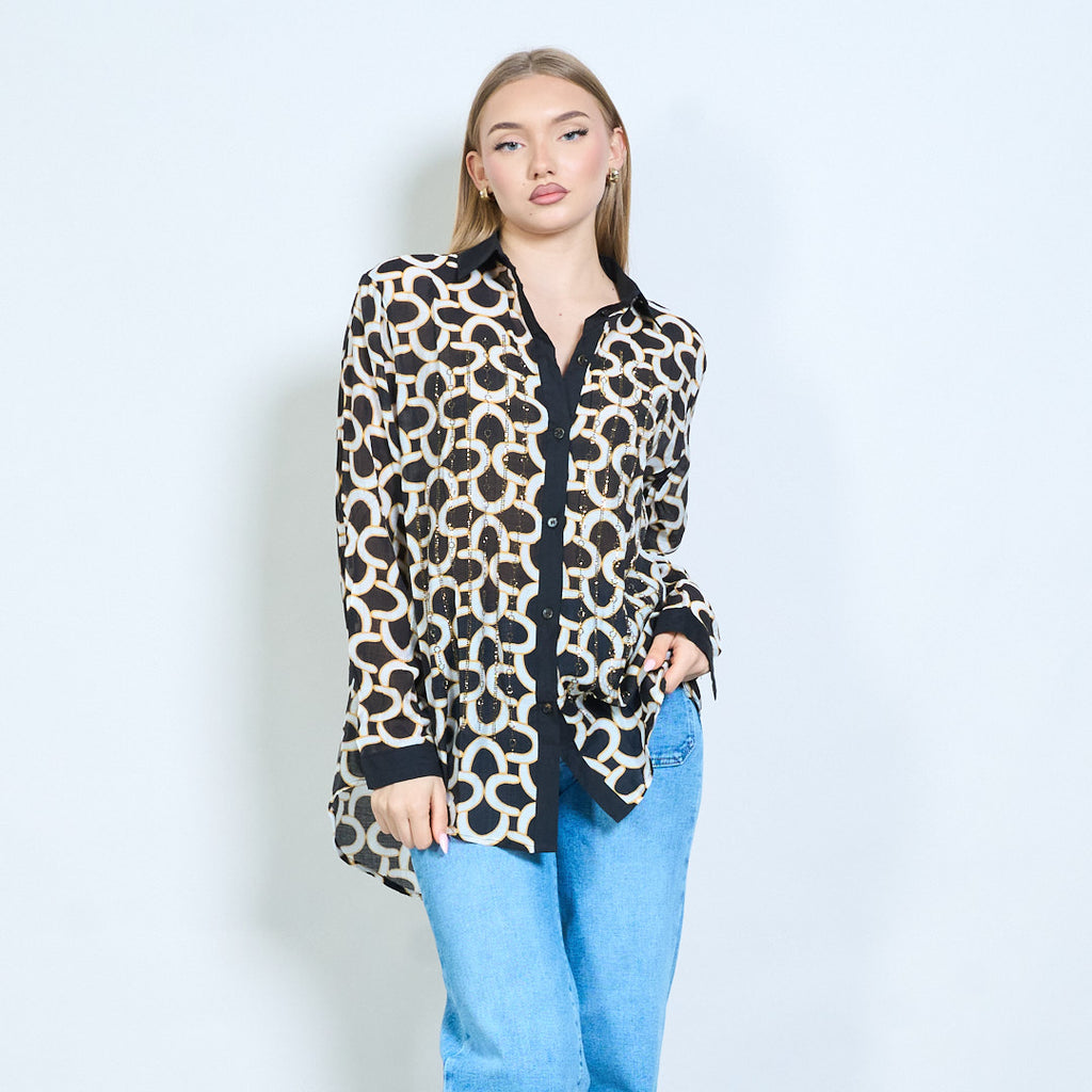 • Blouse met opvallende geometrische lussenprint voor een moderne, gestructureerde look