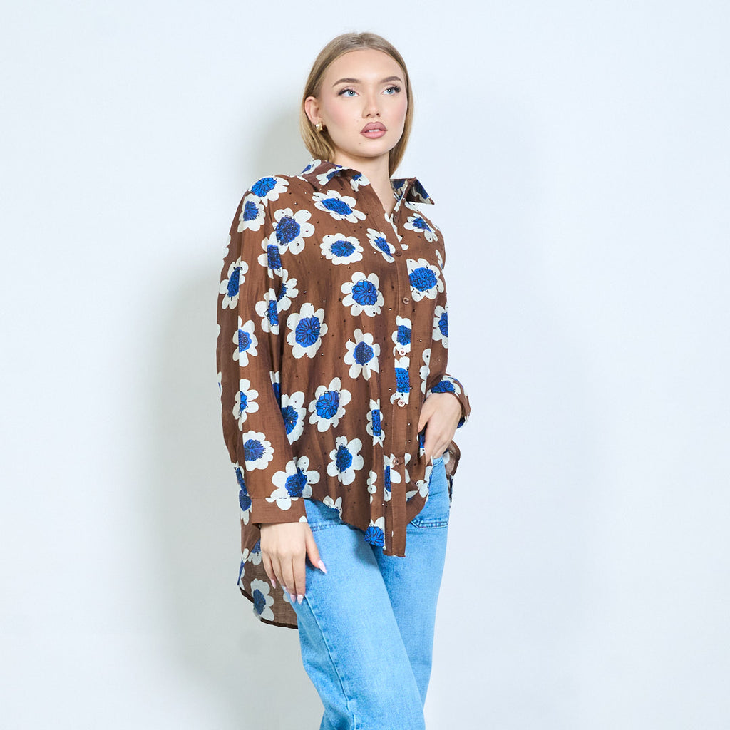 Groothandel in lichtgewicht blouses met bloemenprint en knoopsluiting aan de voorkant