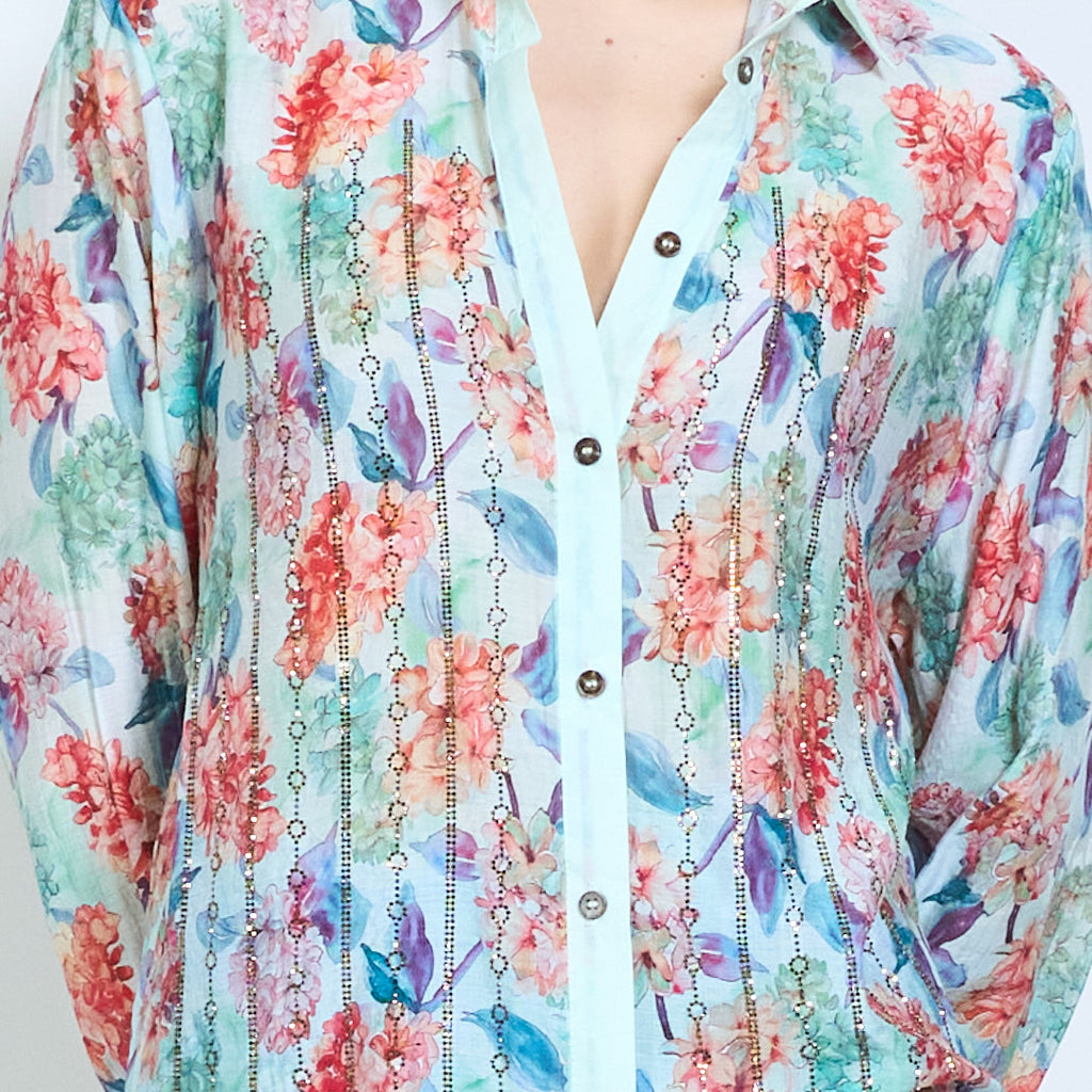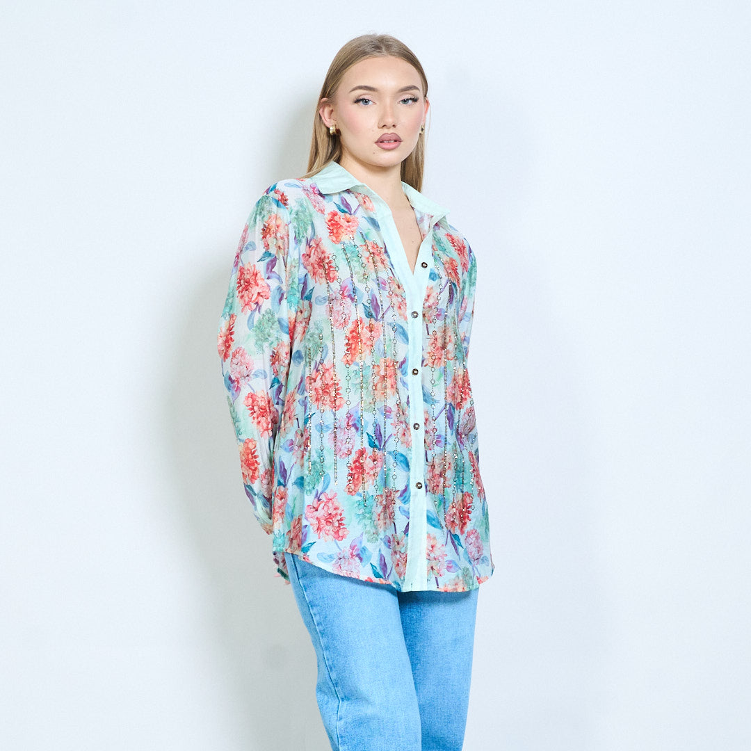 Groothandel in lichtgewicht blouses met bloementuinprint en knopen aan de voorkant