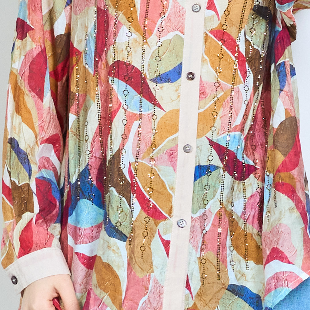 - Zachte kraag voegt structuur toe aan de vrij vloeiende, expressieve print
