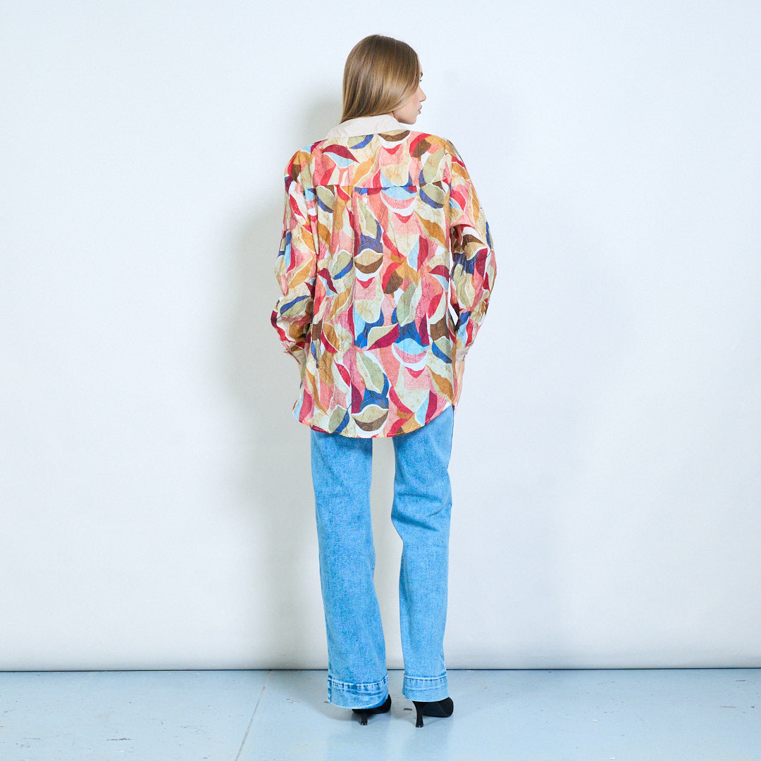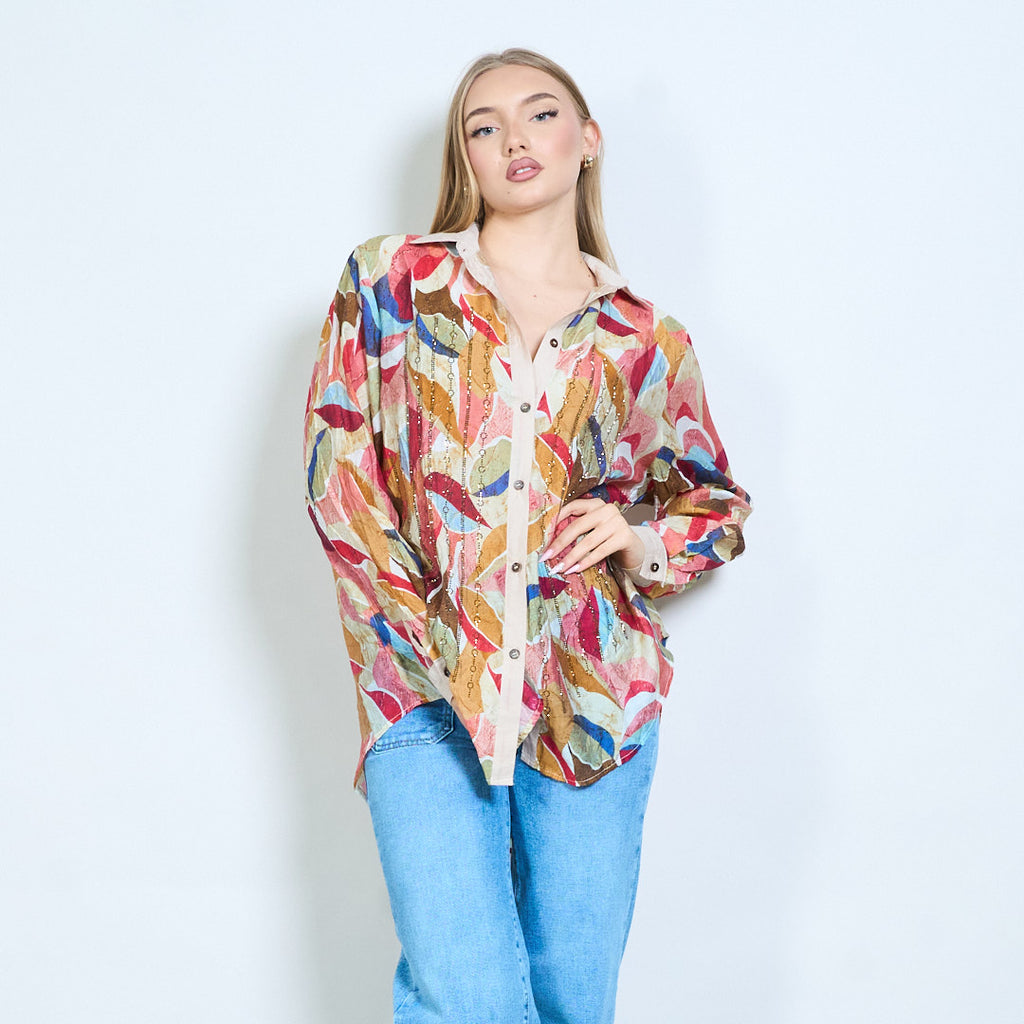 - Blouse met een opvallende abstracte afbeelding van bloemenbladeren voor een artistieke, levendige look