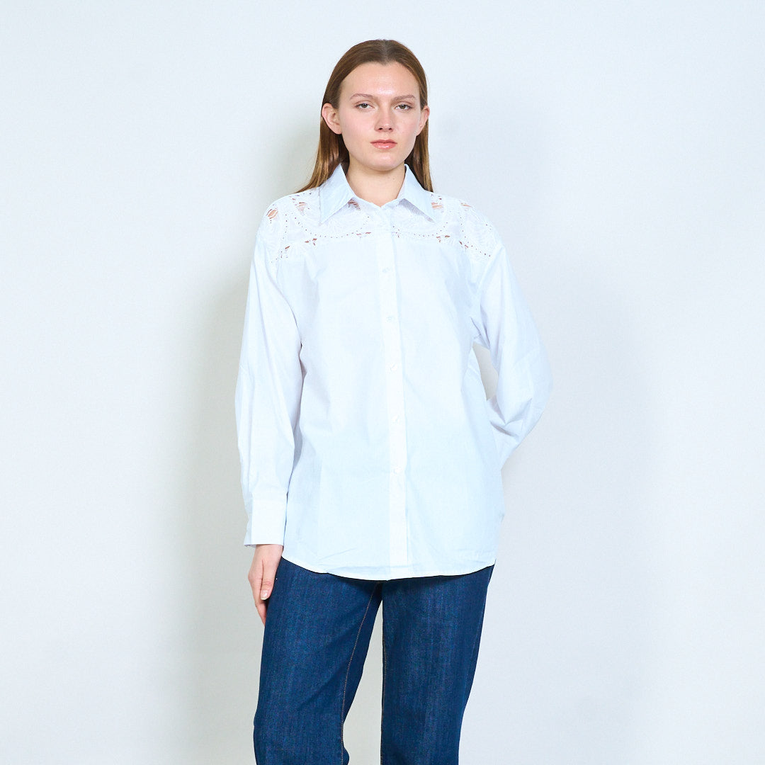 Groothandel overhemden met bloemenkant en knopen aan de voorkant en lange mouwen