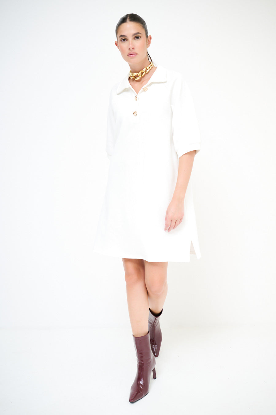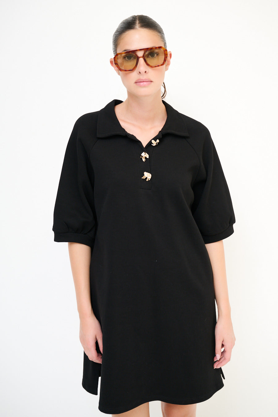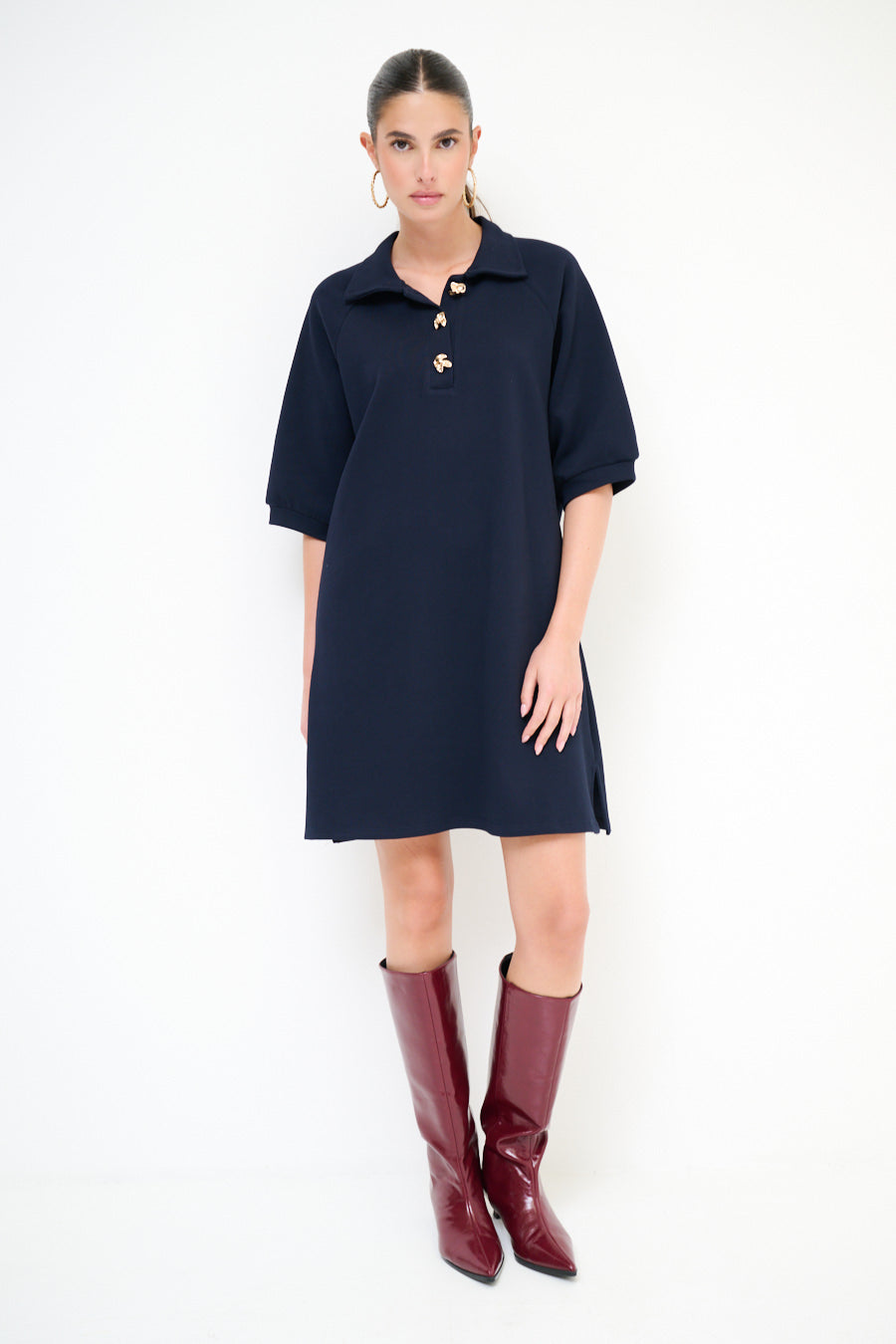Ontspannen polo mini -jurk met gouden knopdetail groothandel
