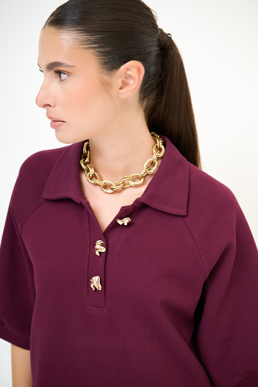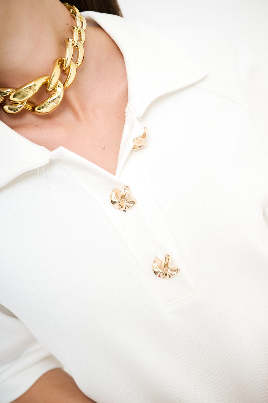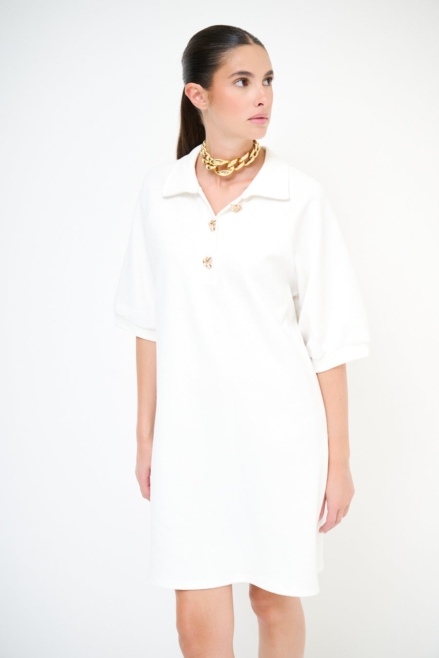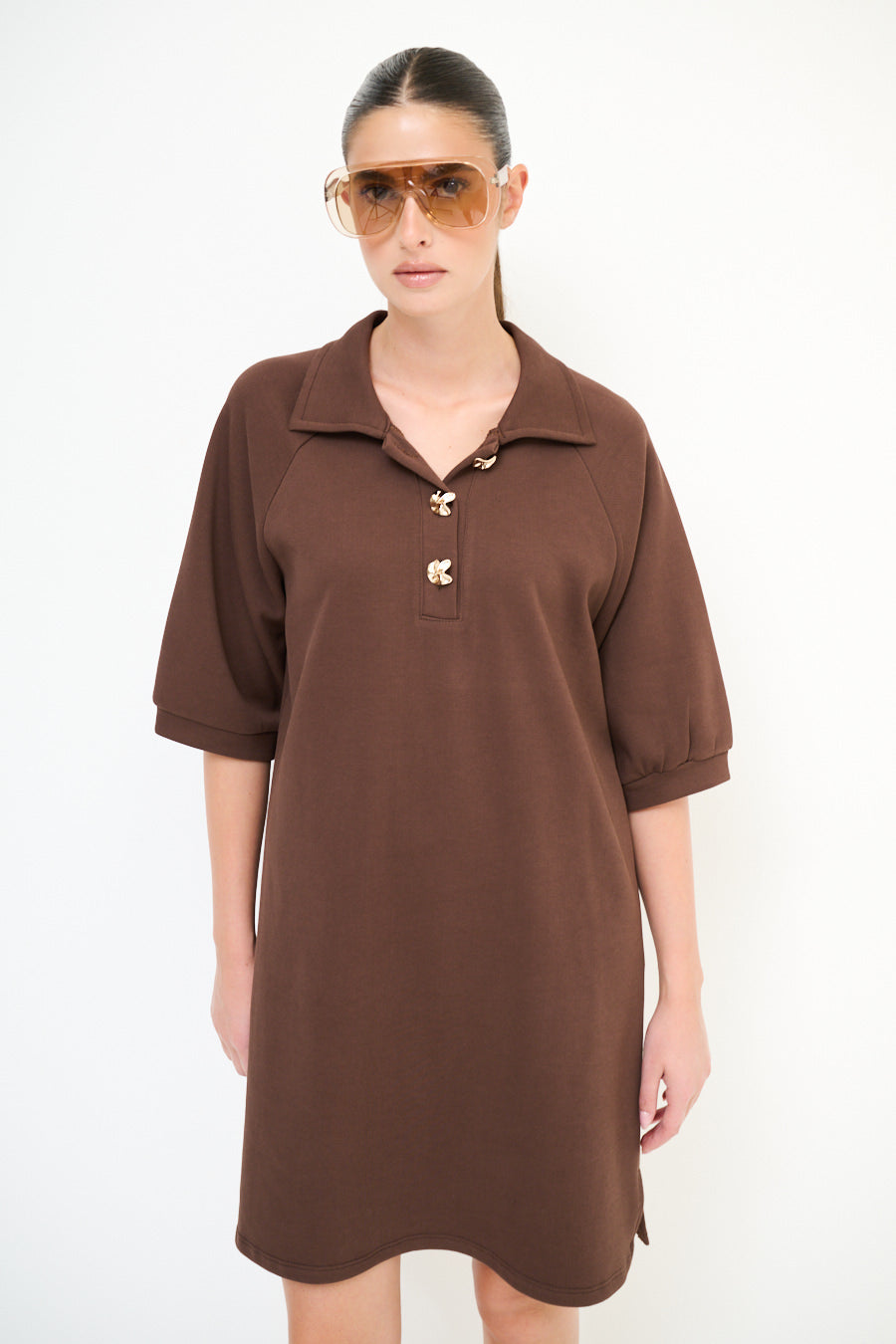 Ontspannen polo mini -jurk met gouden knopdetail groothandel