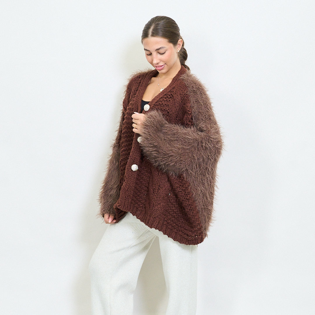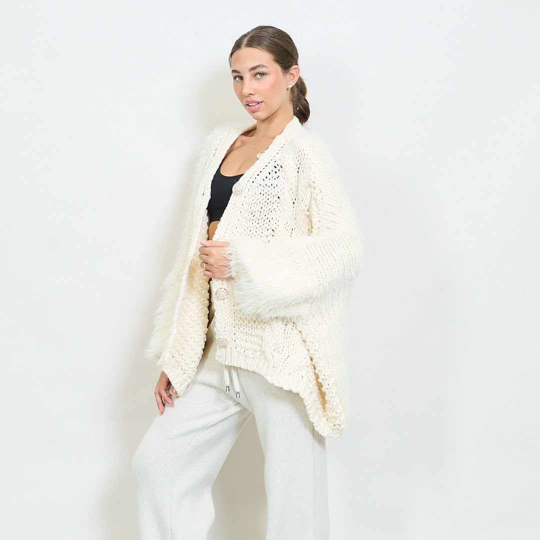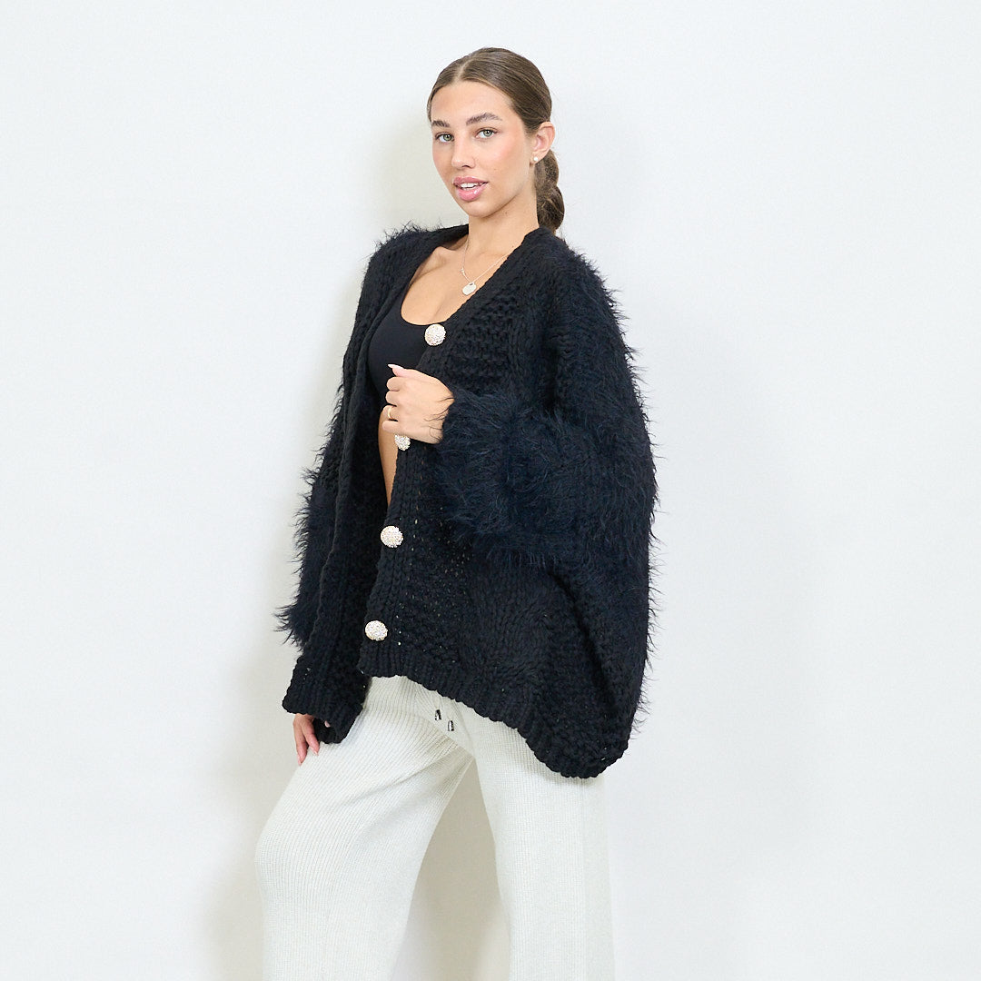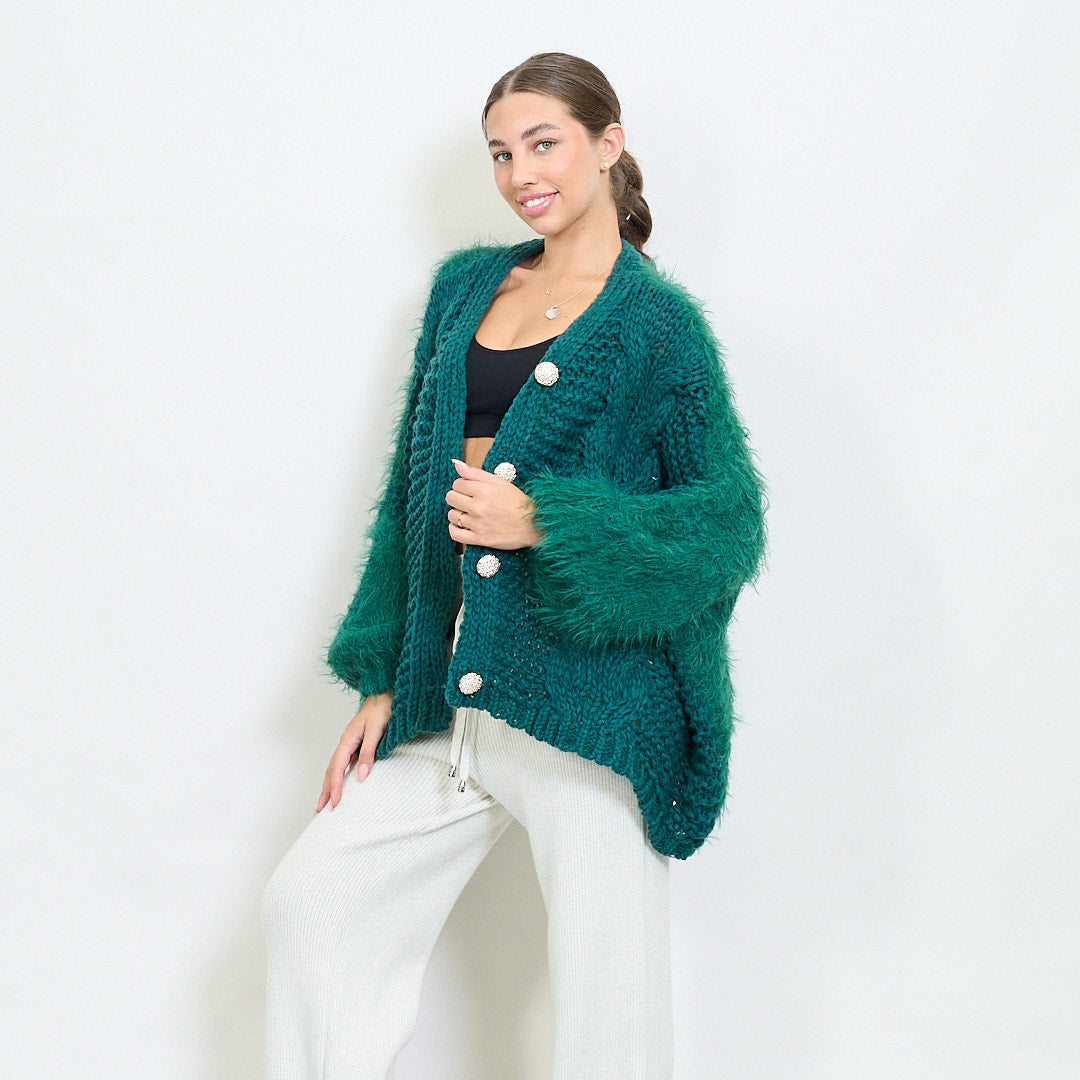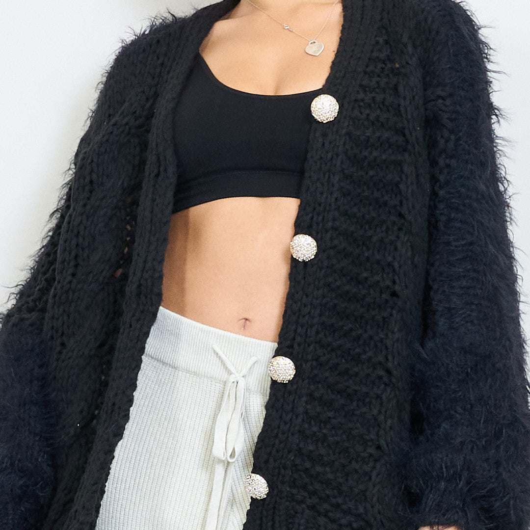 Dikke fuzzy gebreide vest met strass -knoppen groothandel