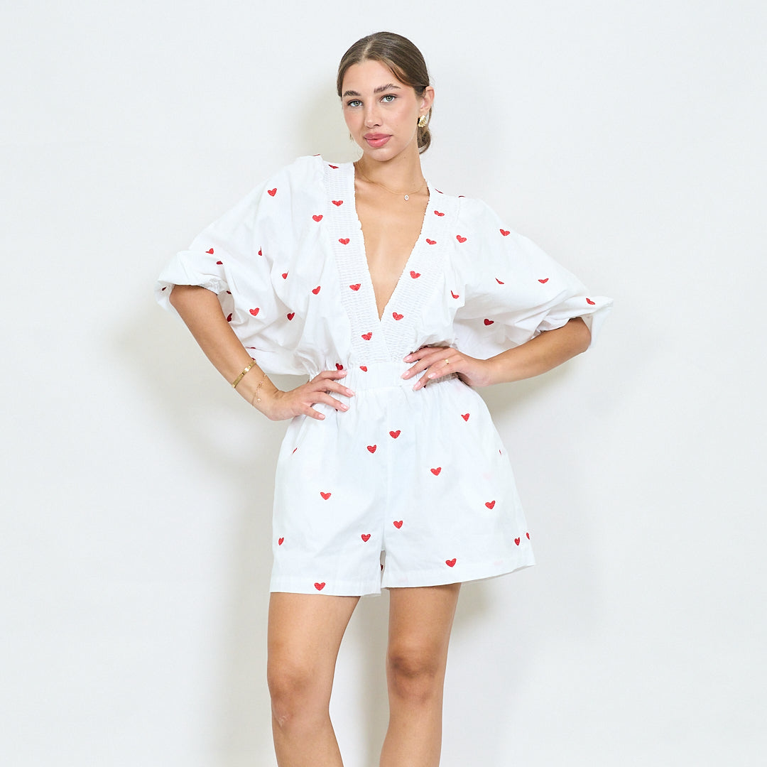 Rood hart borduurwerk shirred taille jumpsuit groothandel
