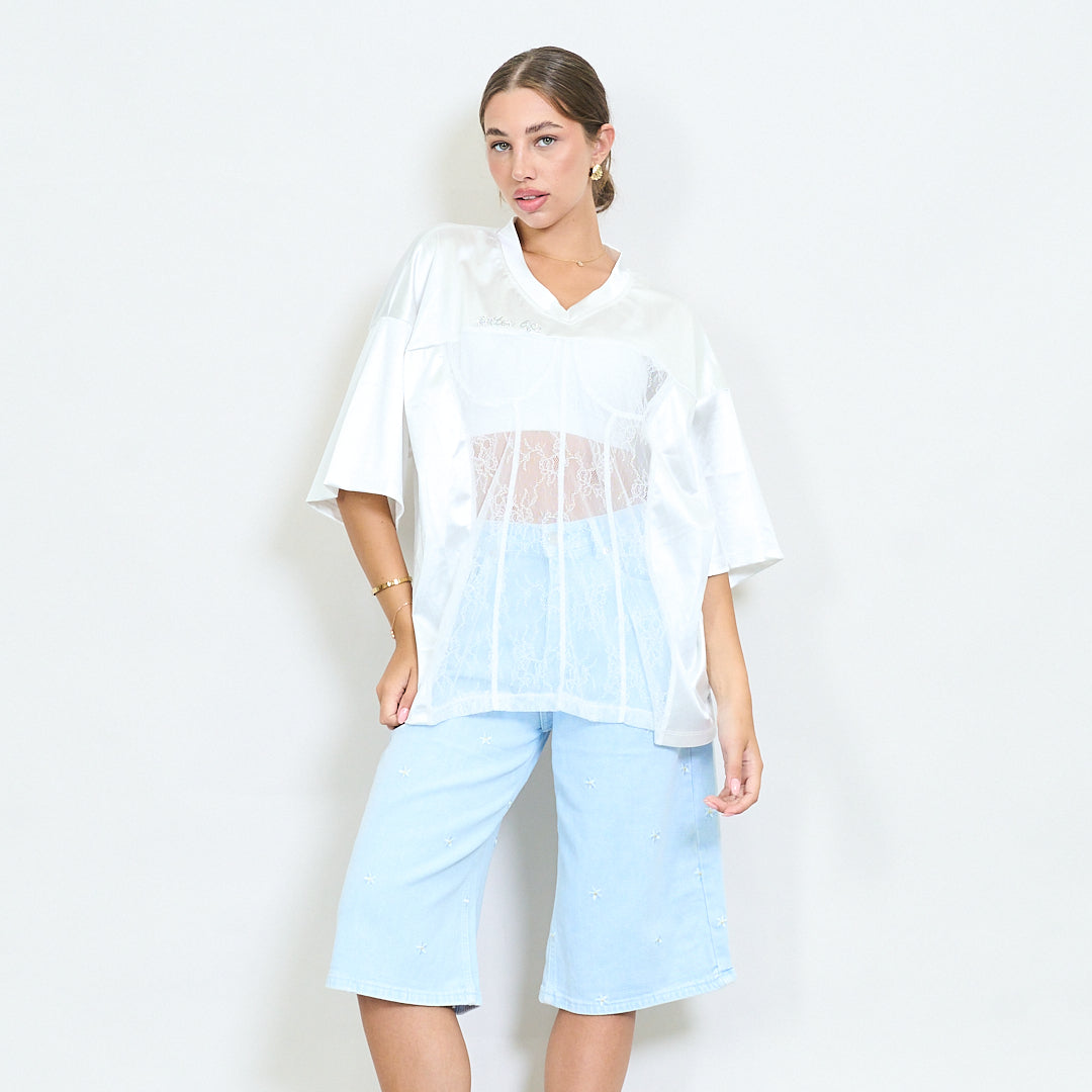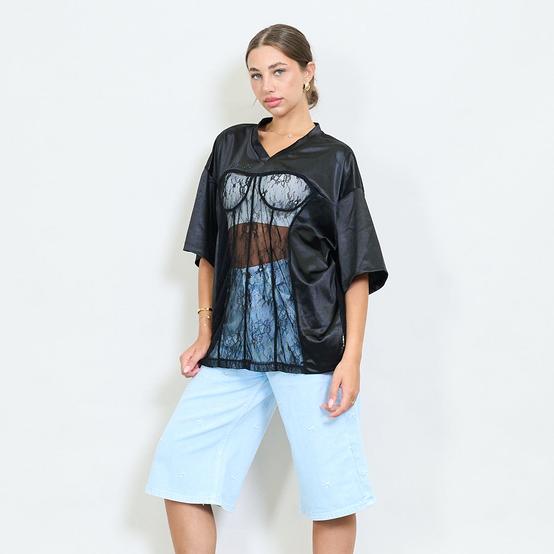 Satijn en kanten illusie korset t-shirt groothandel