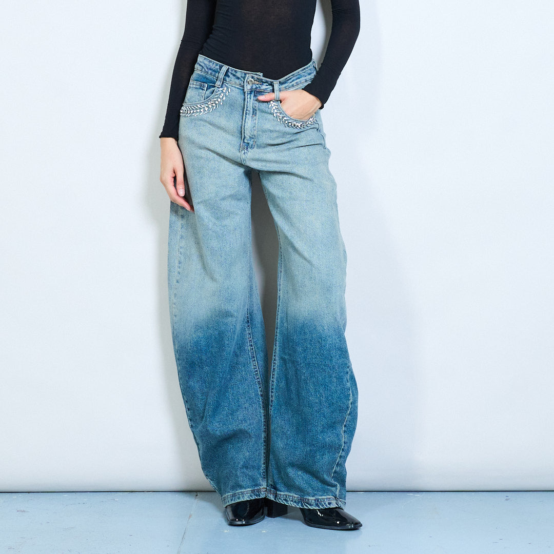 Groothandel jeans met strasssteentjes en zakken met wijde pijpen