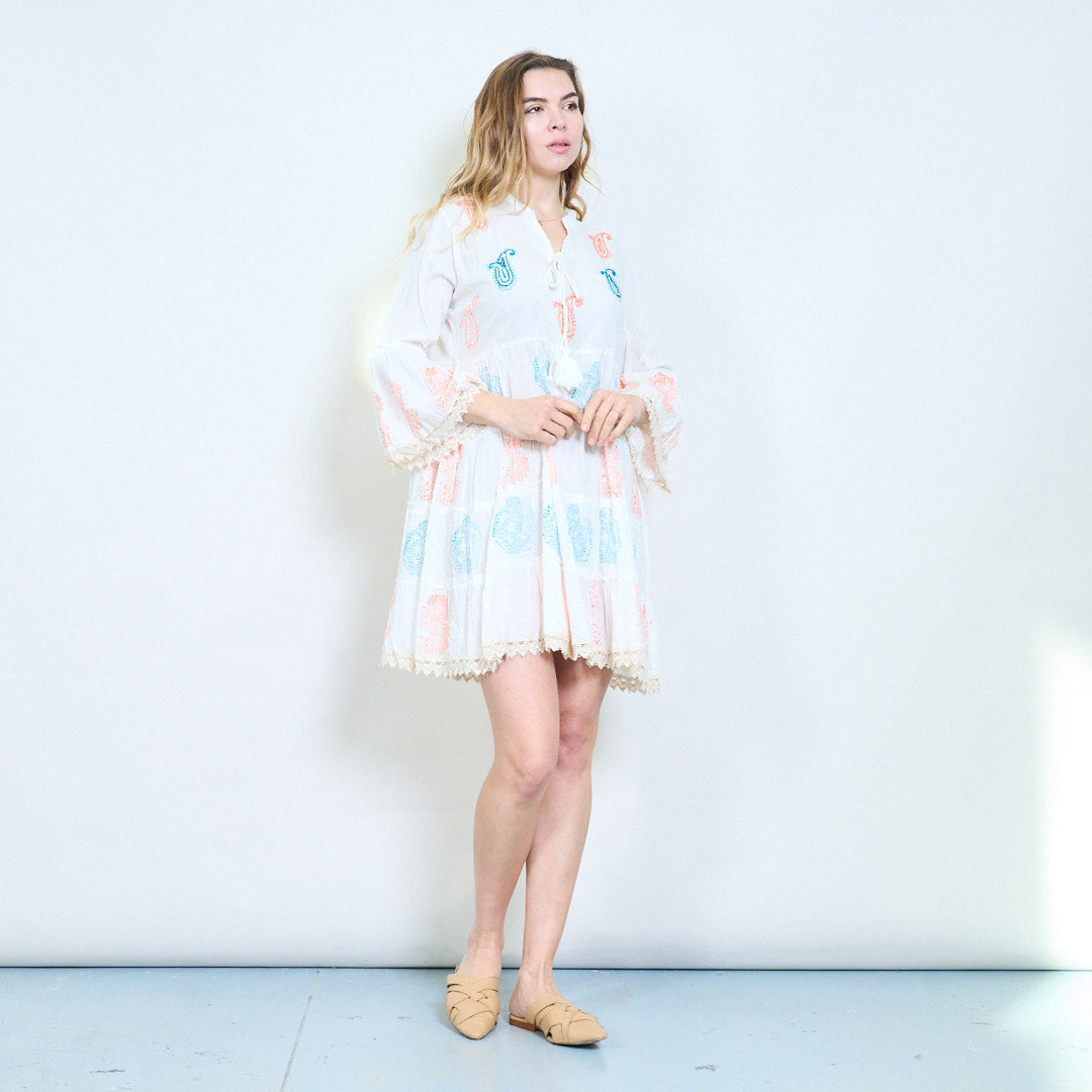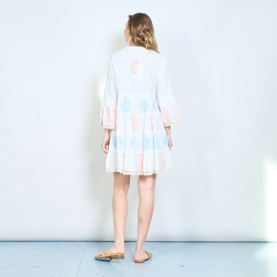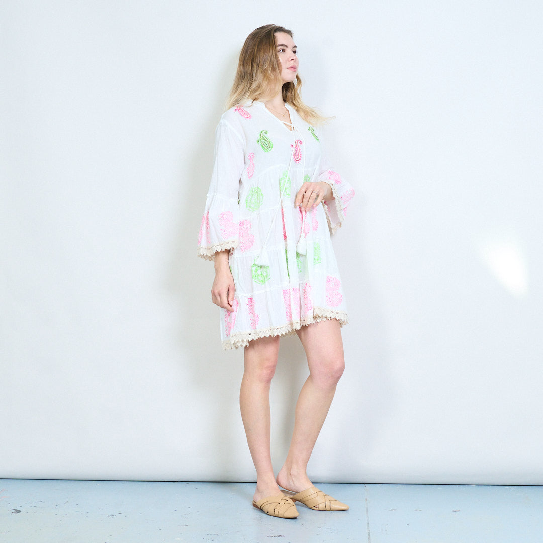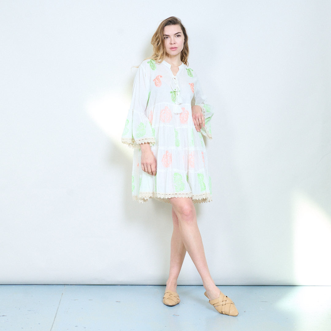 Midi-jurk met paisleyprint, stropdas met kwastjes en gelaagde zoom, groothandel