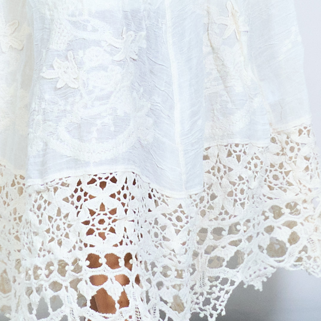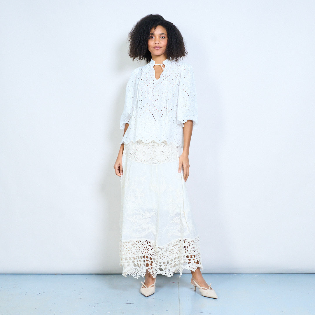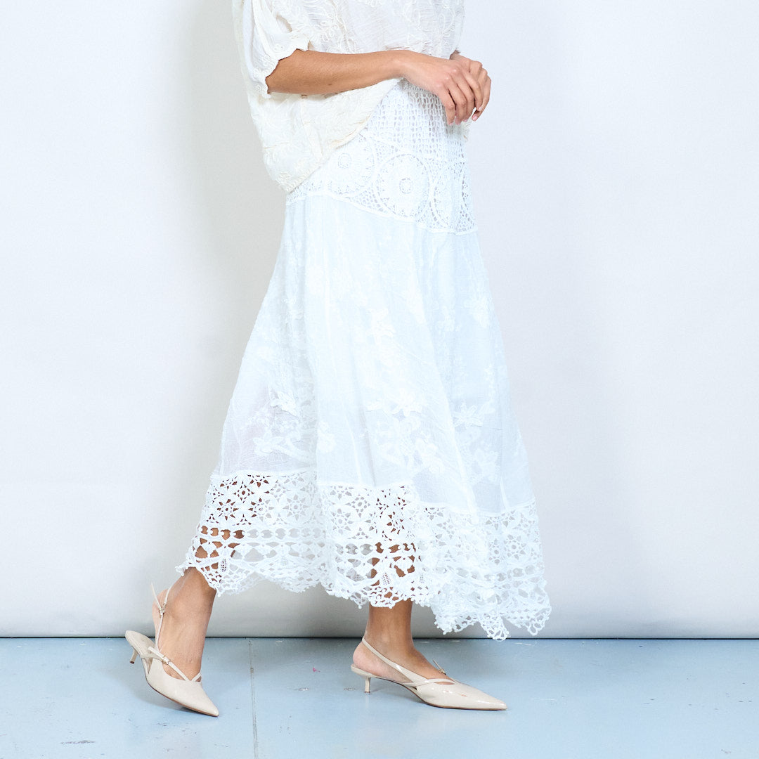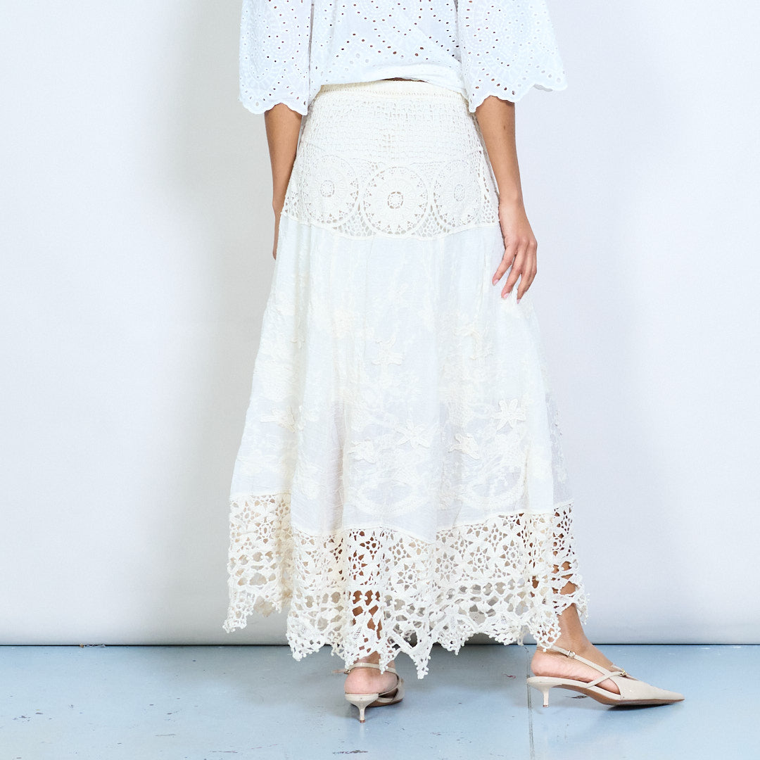 Gehaakte midi-rok met kant en gelaagde tailleband, groothandel