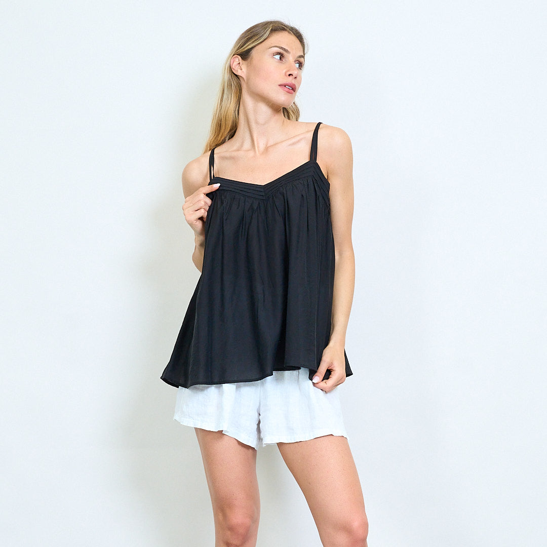 Geplooide v-hals cami top met dubbele schouderbanden groothandel