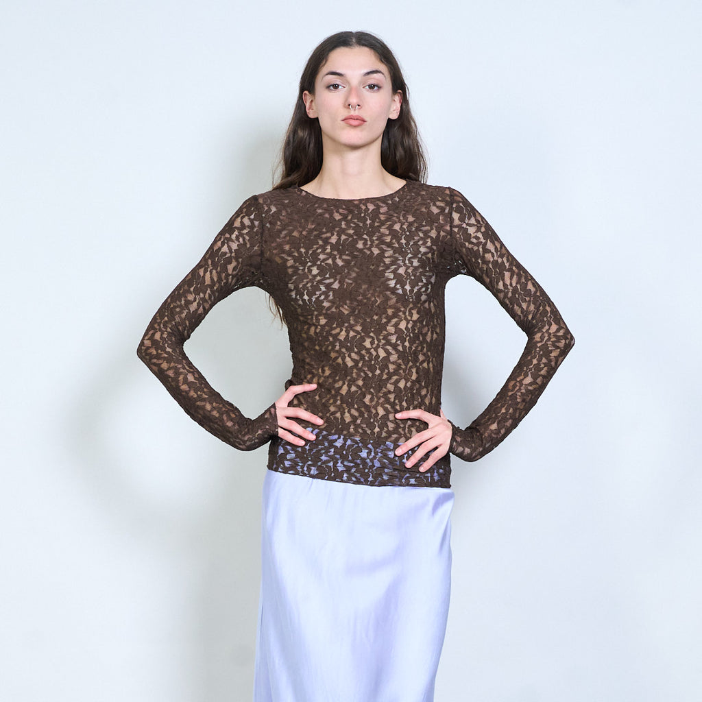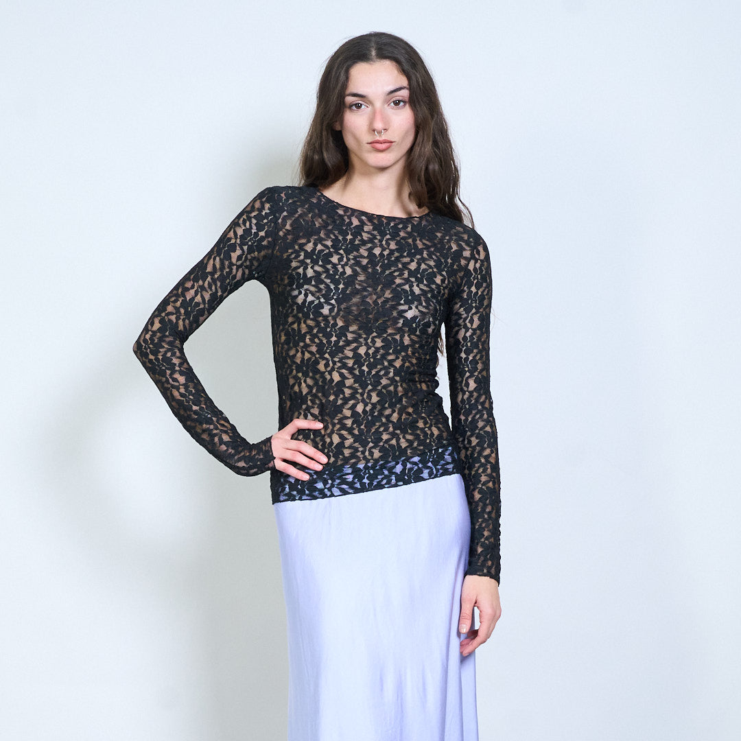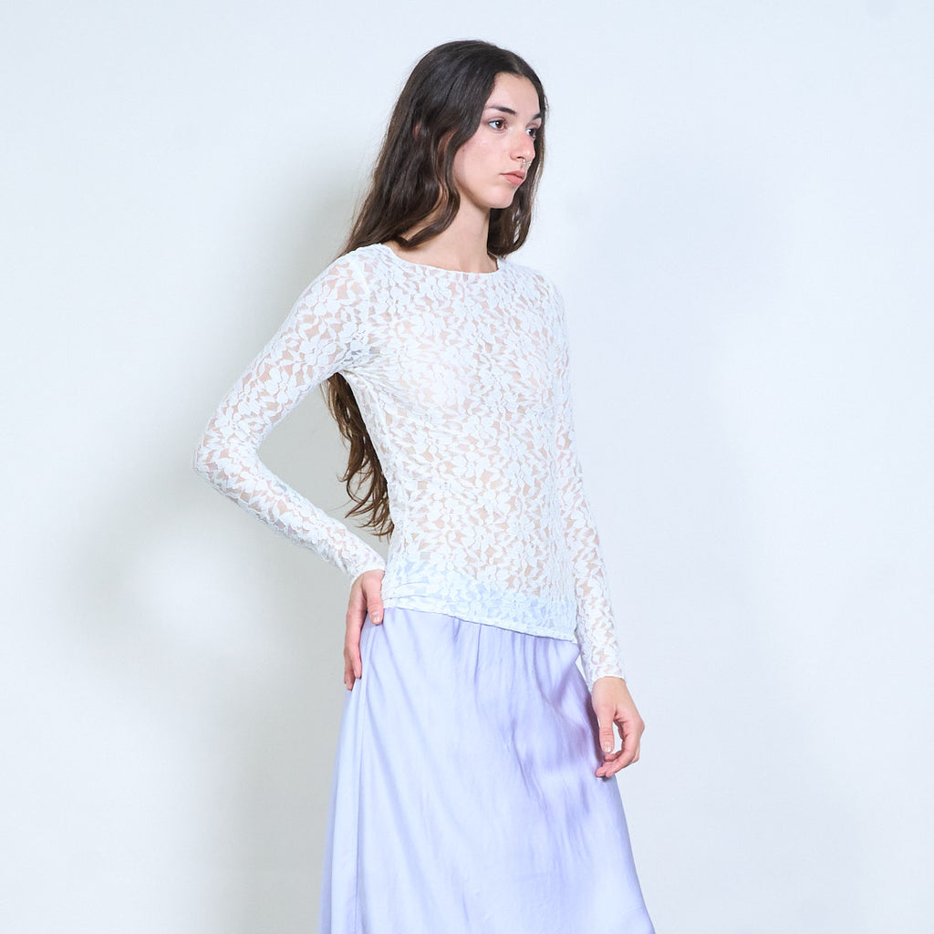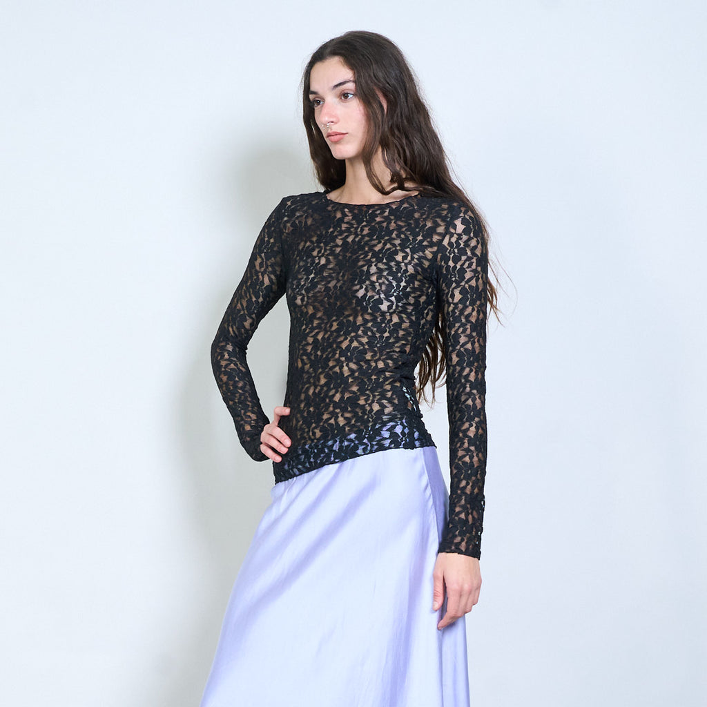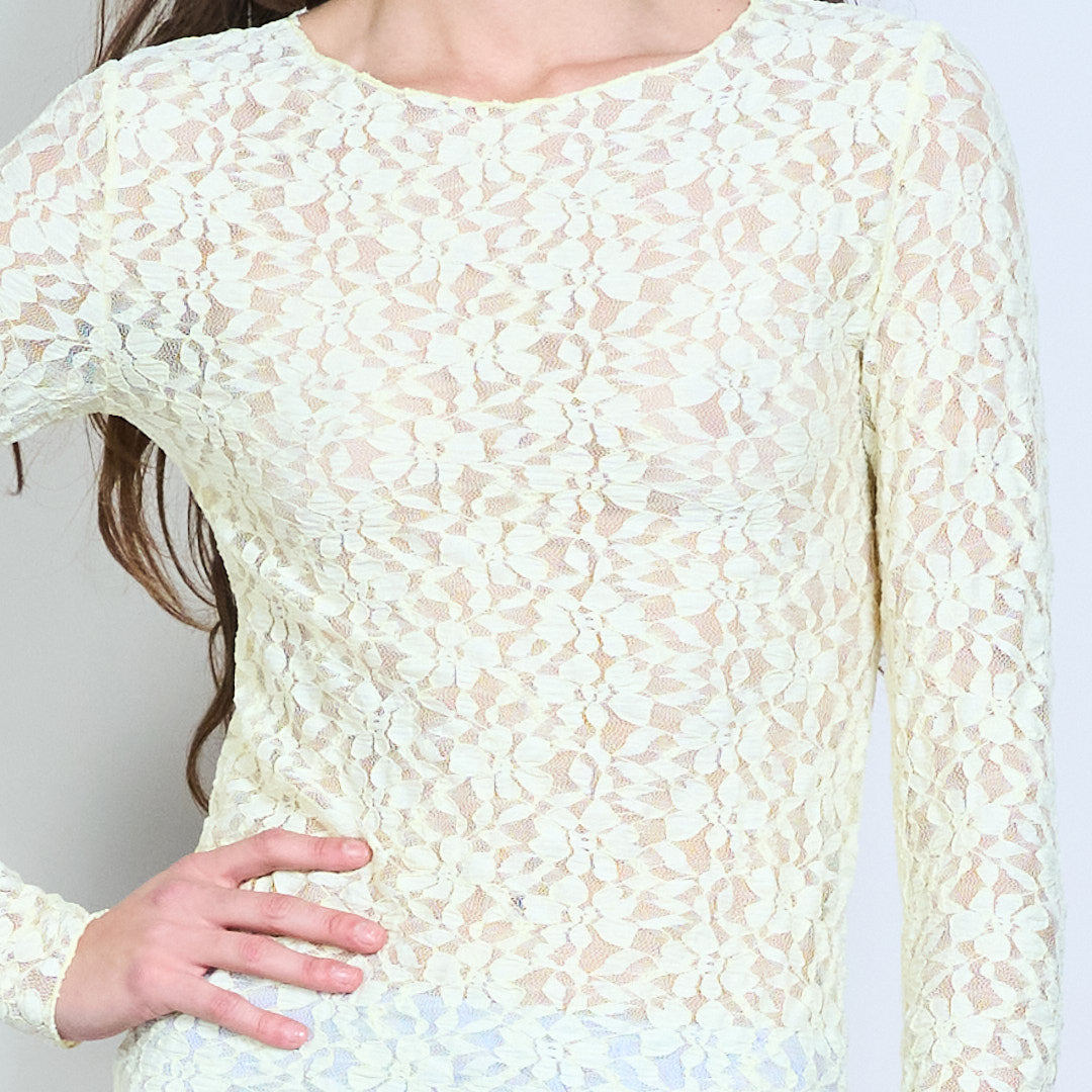 Groothandel doorzichtige top met lange mouwen en bloemenkant
