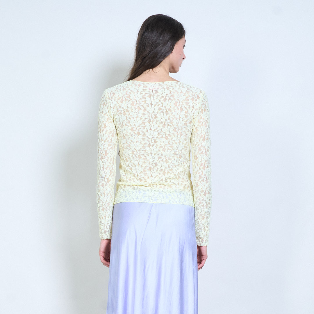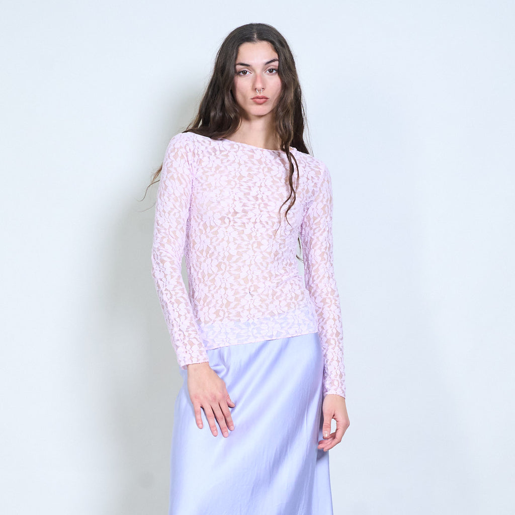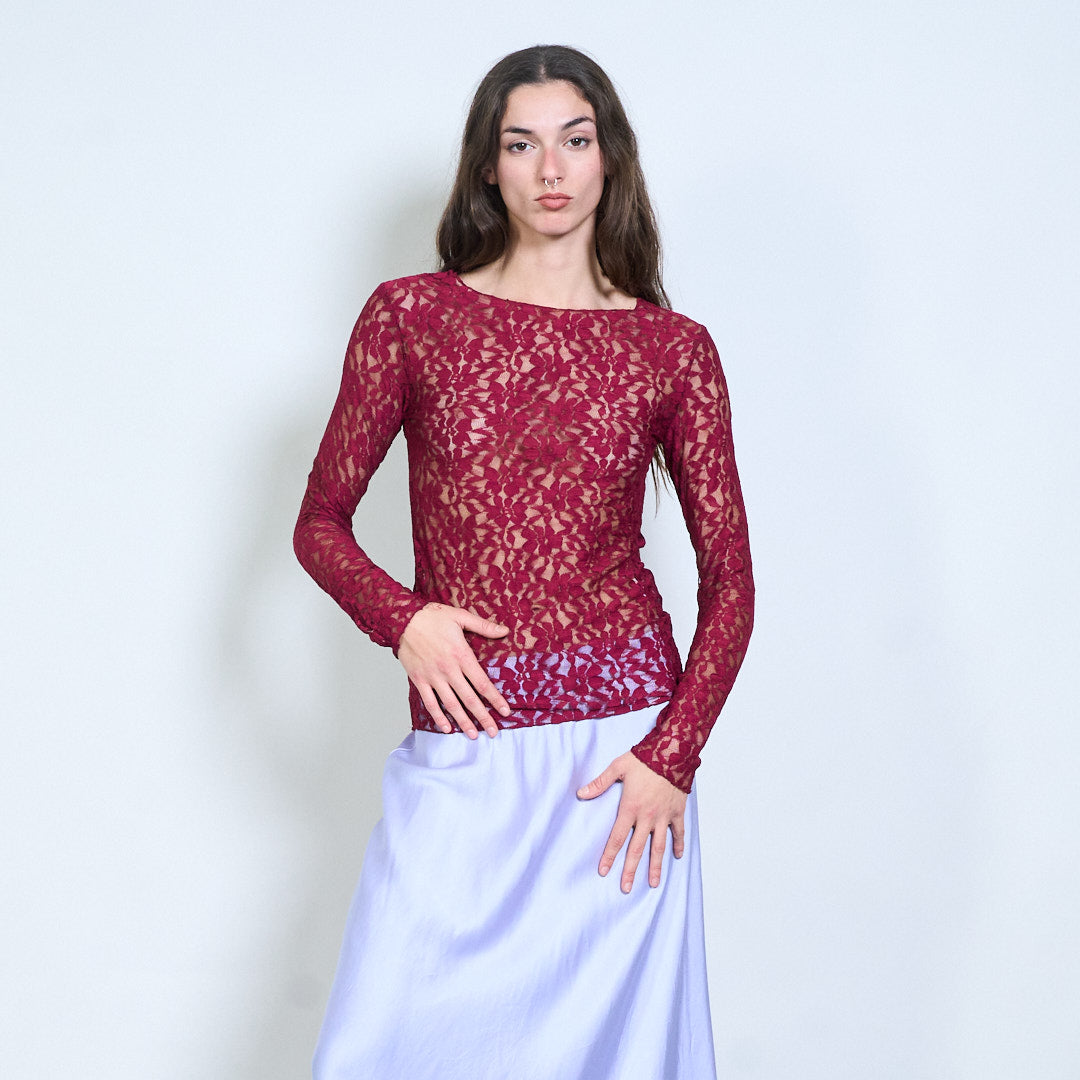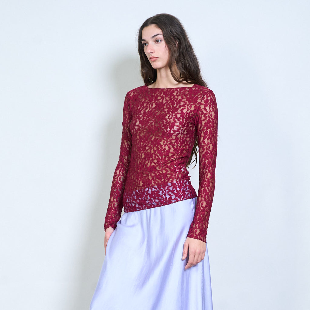 Groothandel doorzichtige top met lange mouwen en bloemenkant