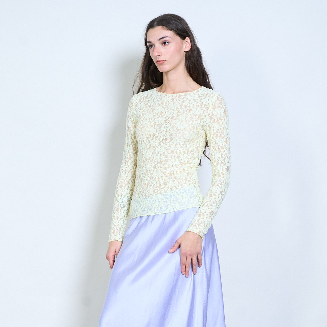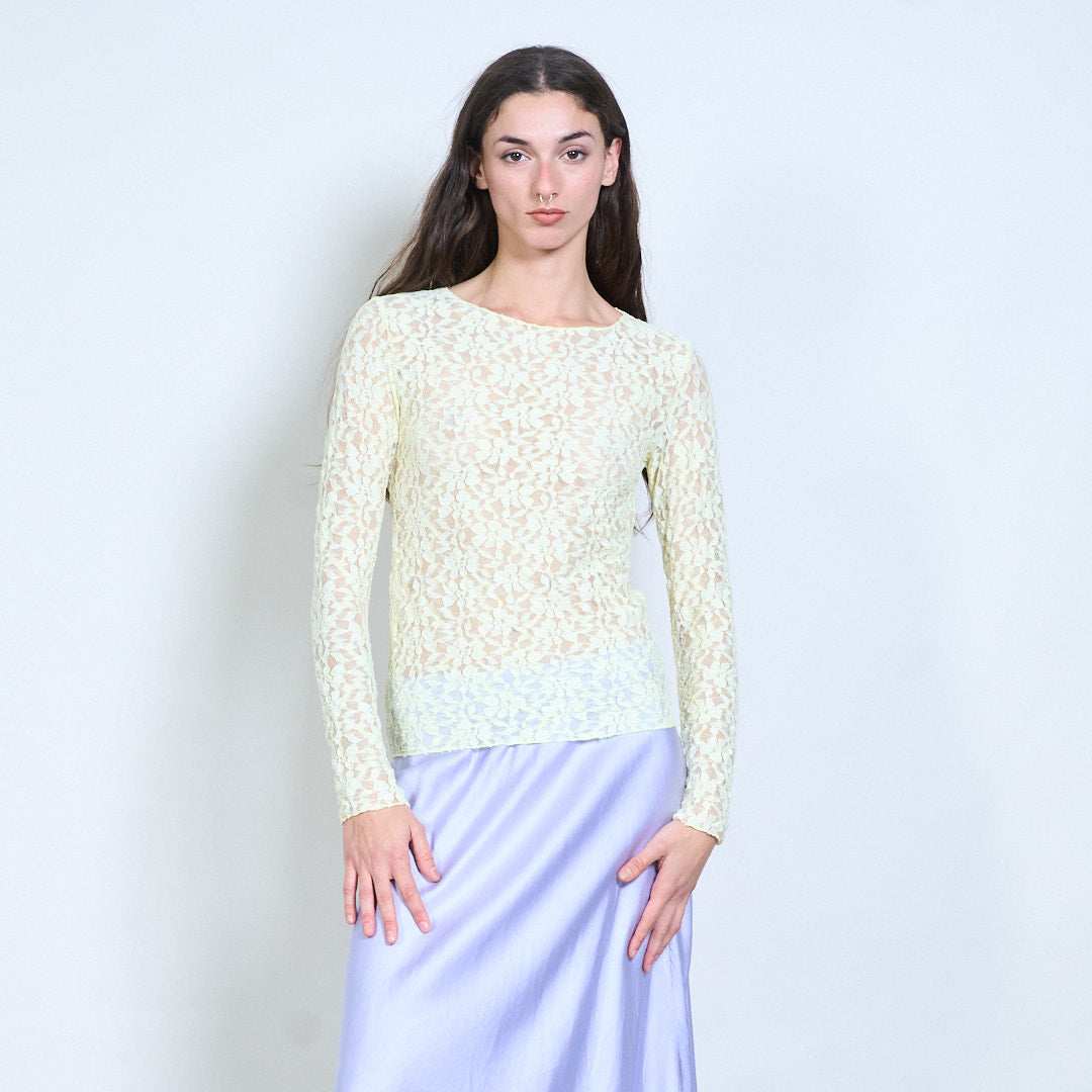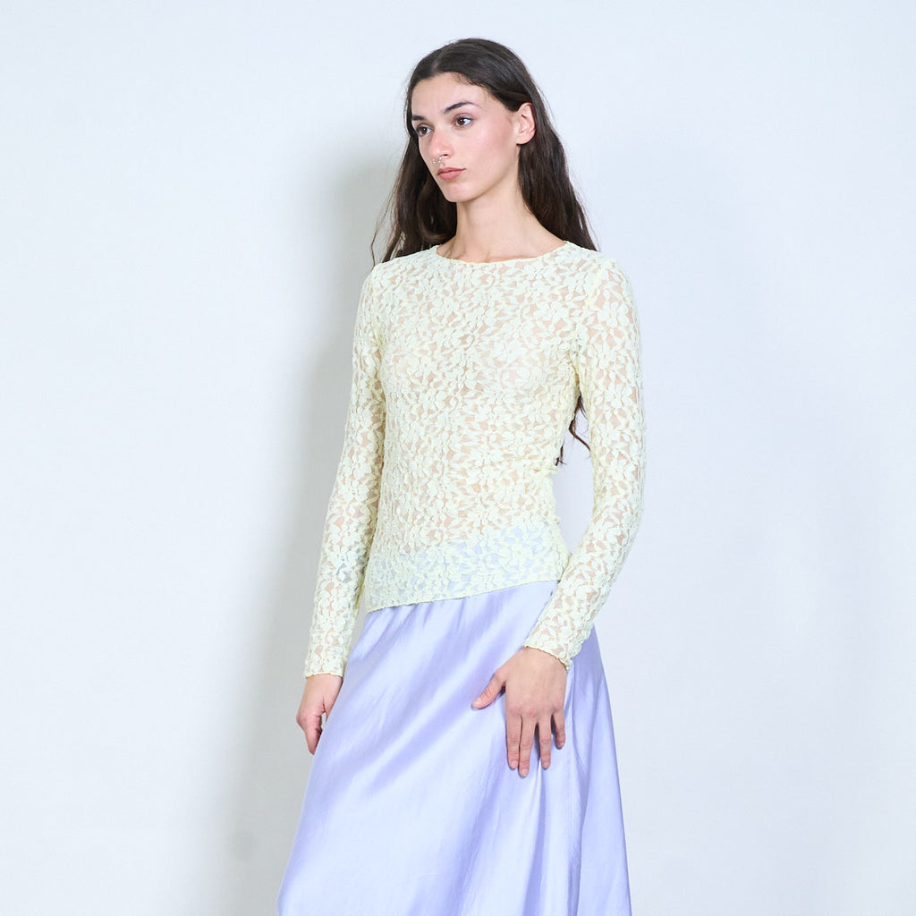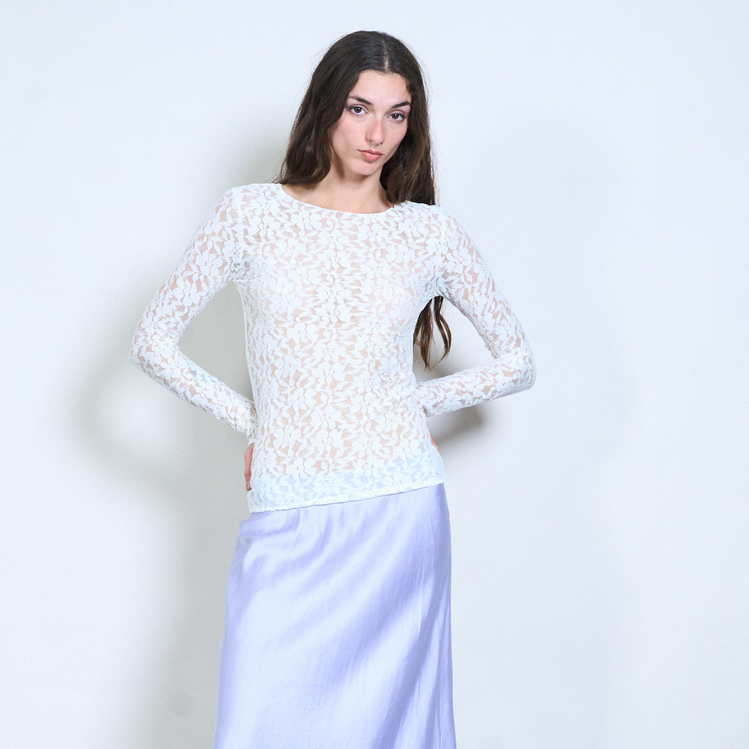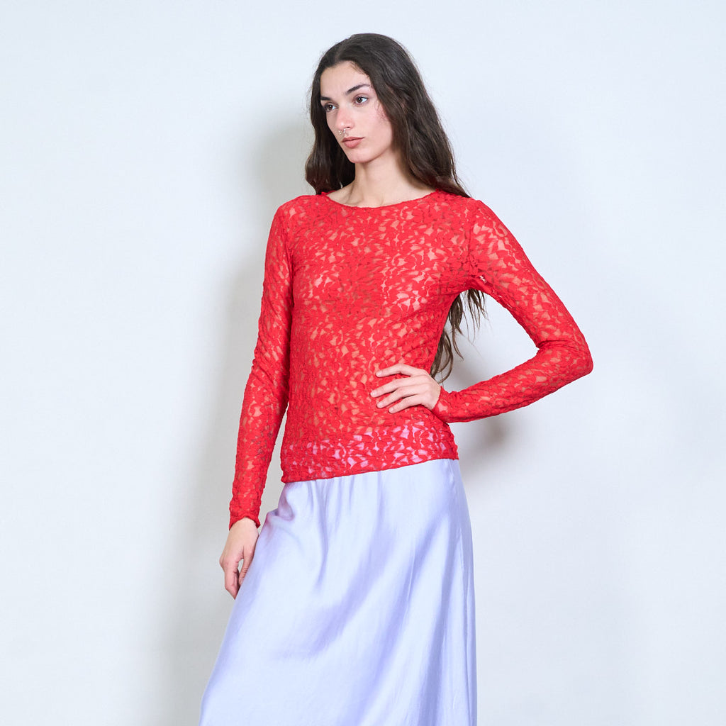 Groothandel doorzichtige top met lange mouwen en bloemenkant