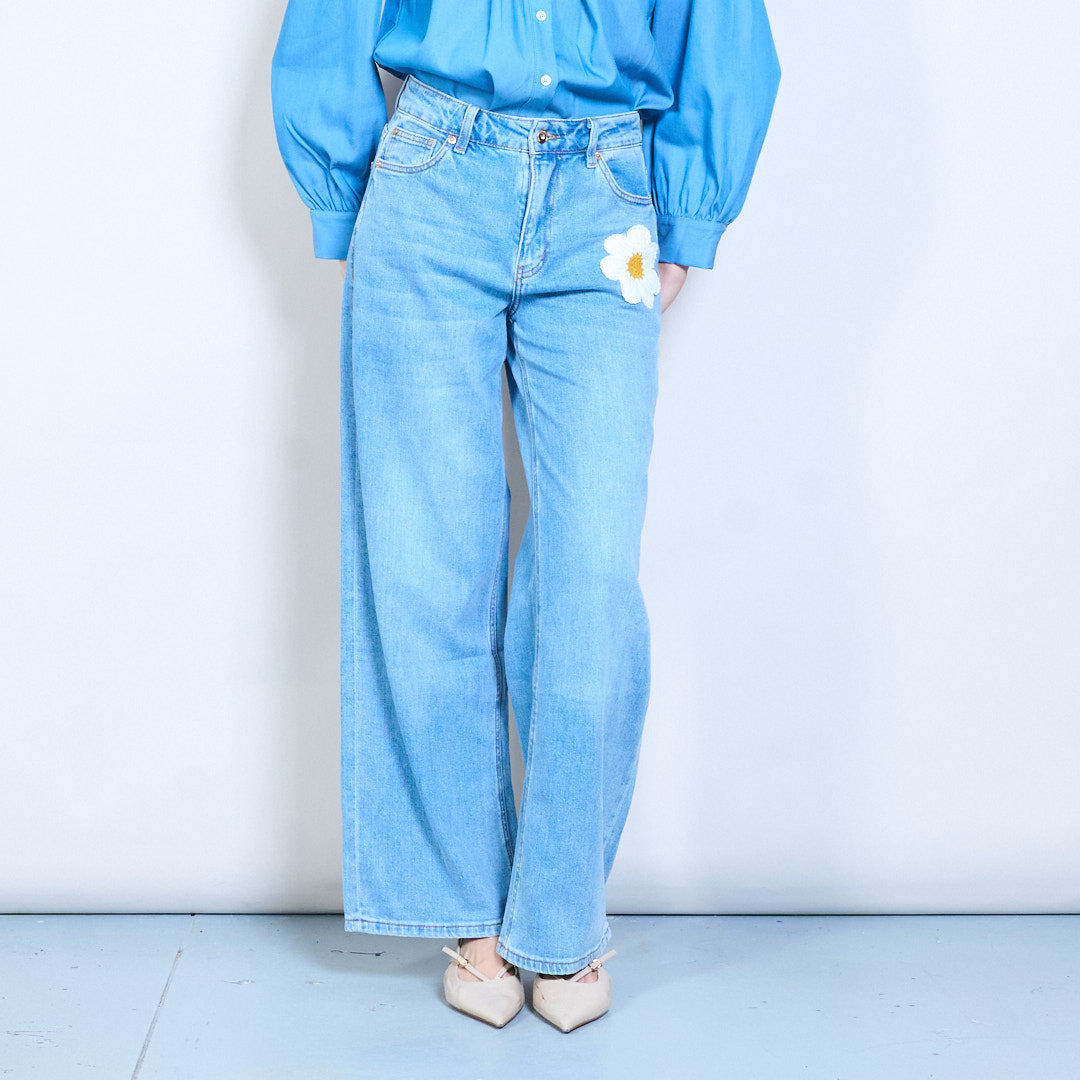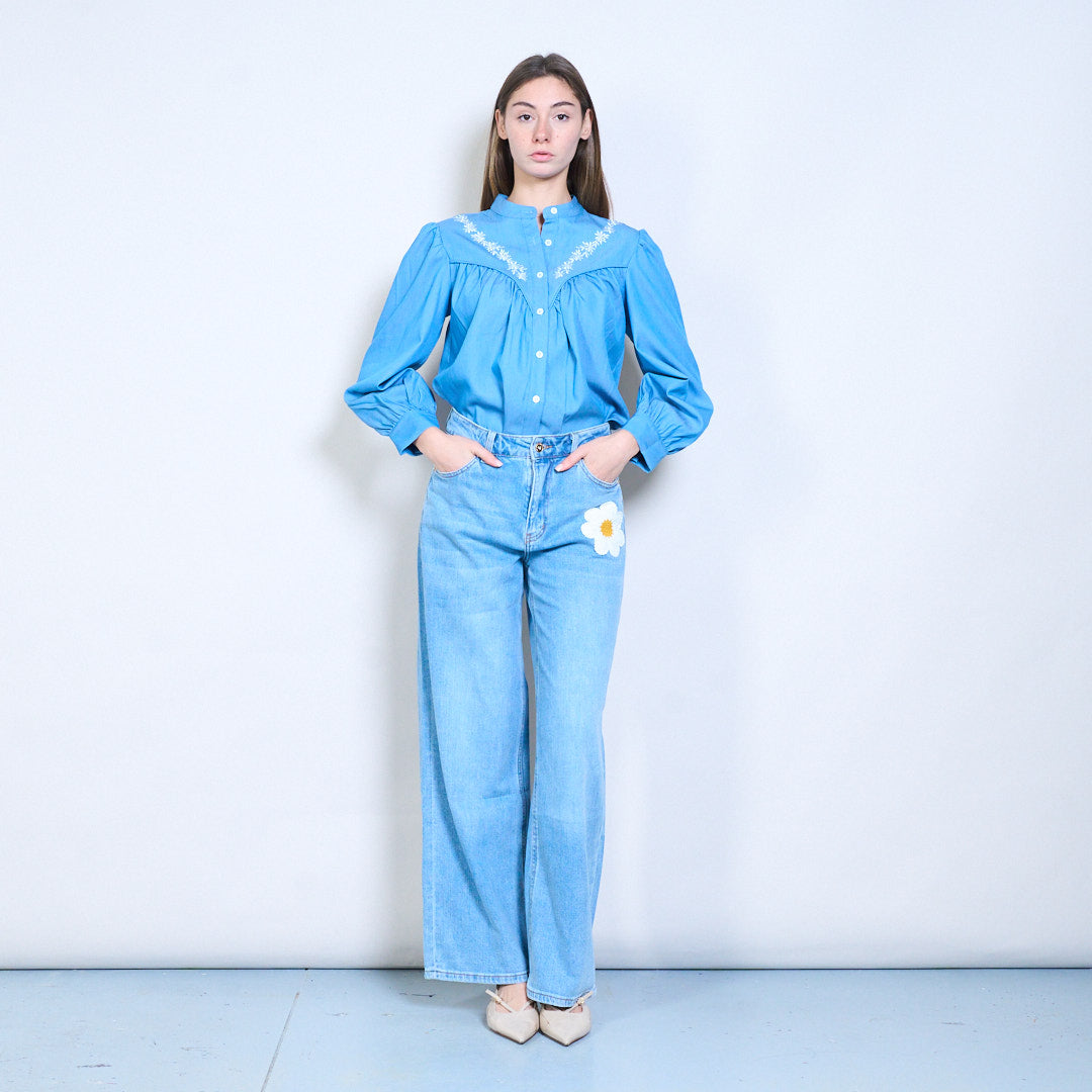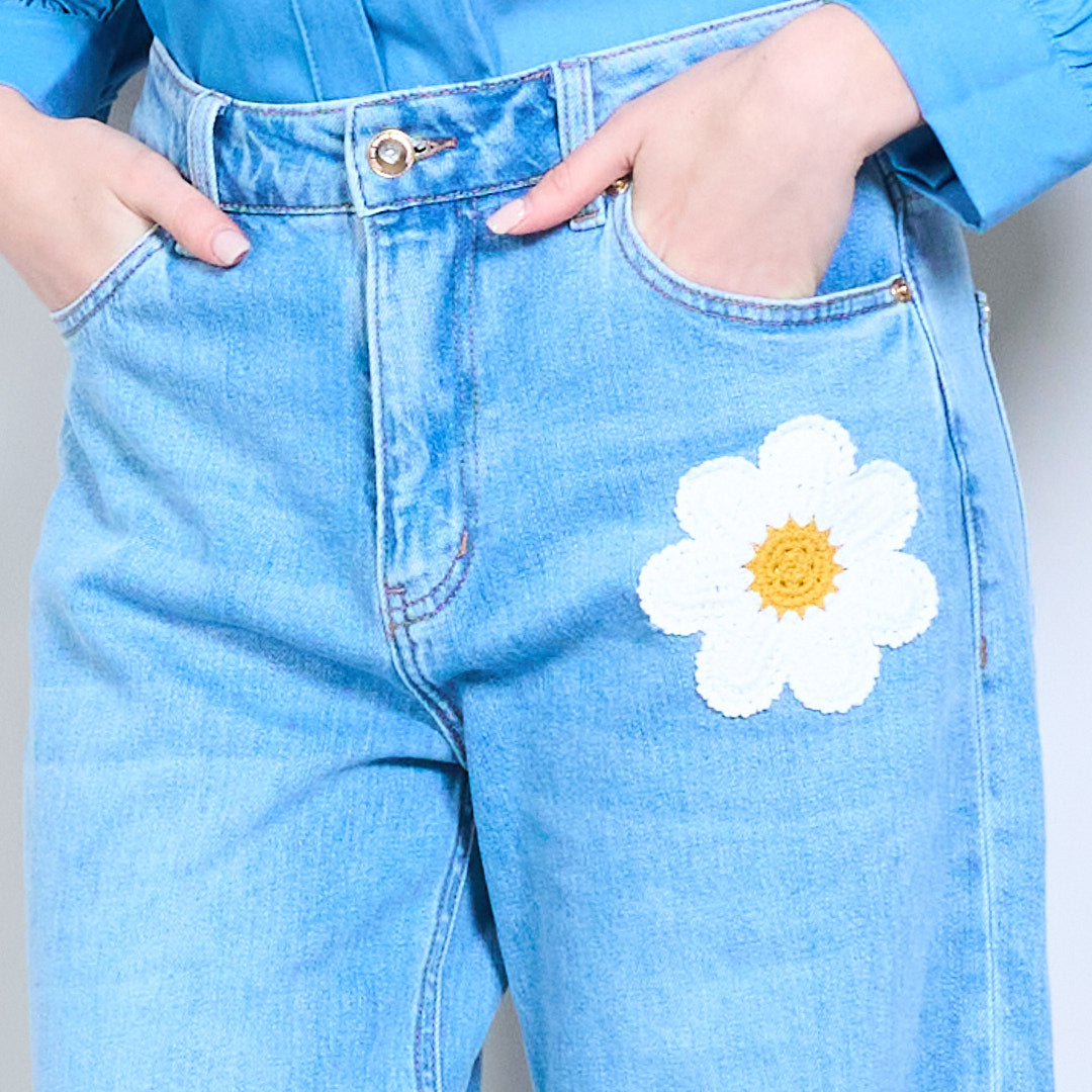 Groothandel in denimbroeken met rechte pijpen en geborduurde details