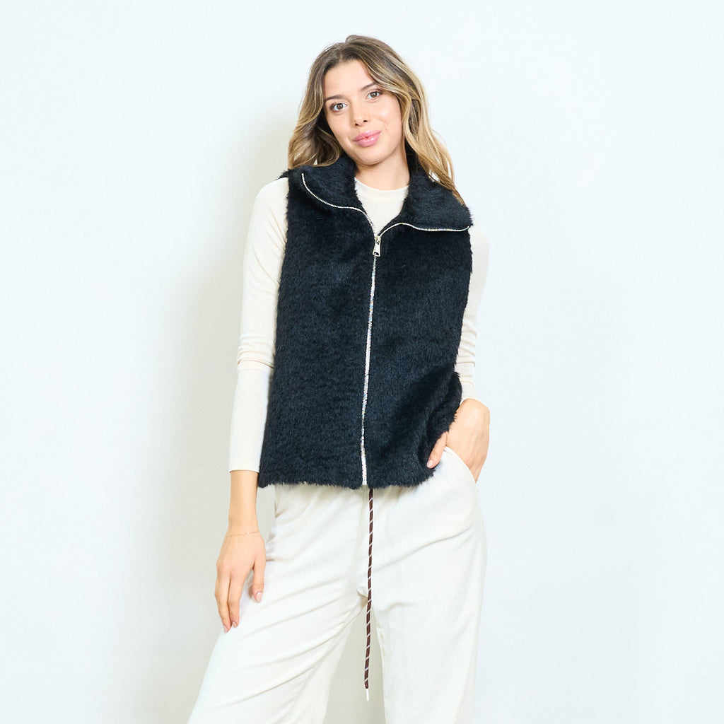 - Stijlvol mouwloos vest gemaakt van zacht nepbont