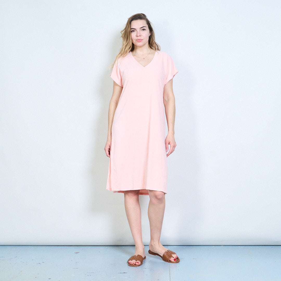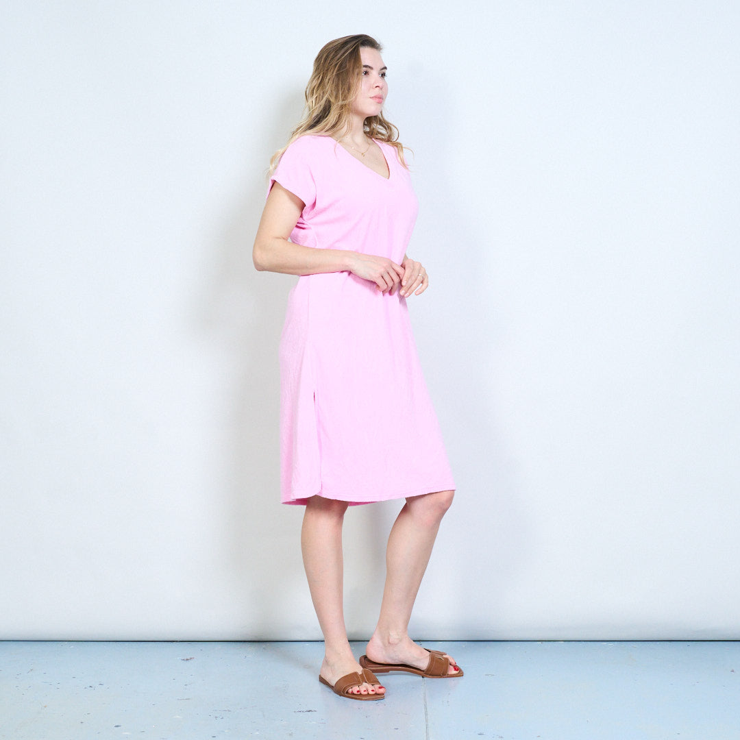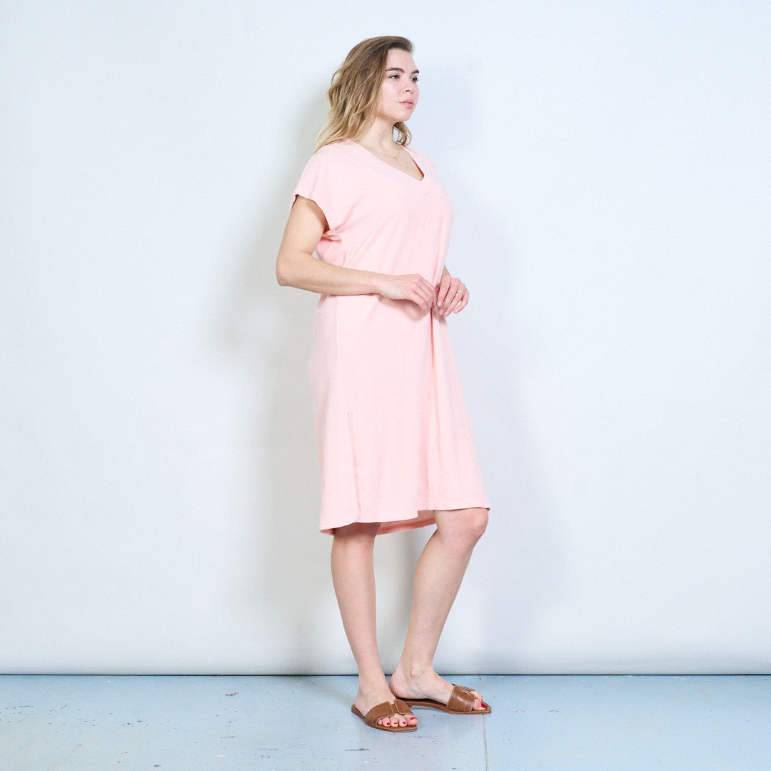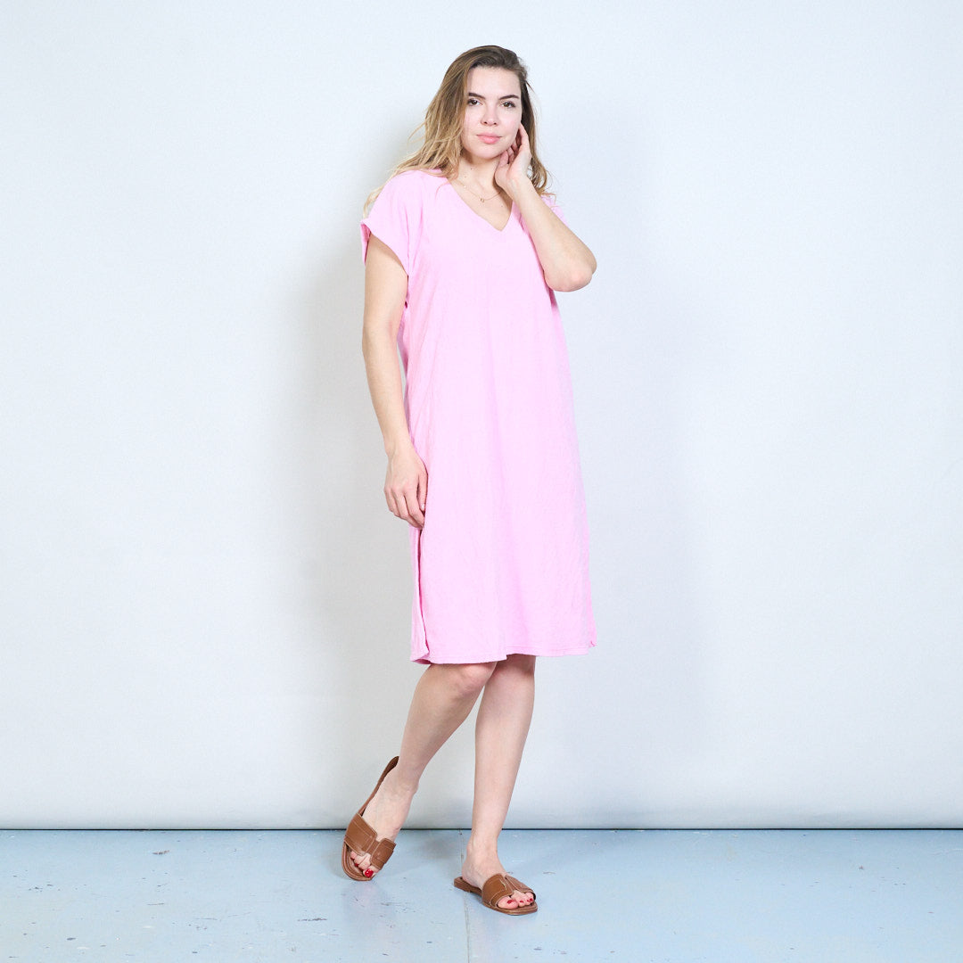 Luźna sukienka z krótkim rękawem i dekoltem w kształcie litery V. Hurtownia hurtowa
