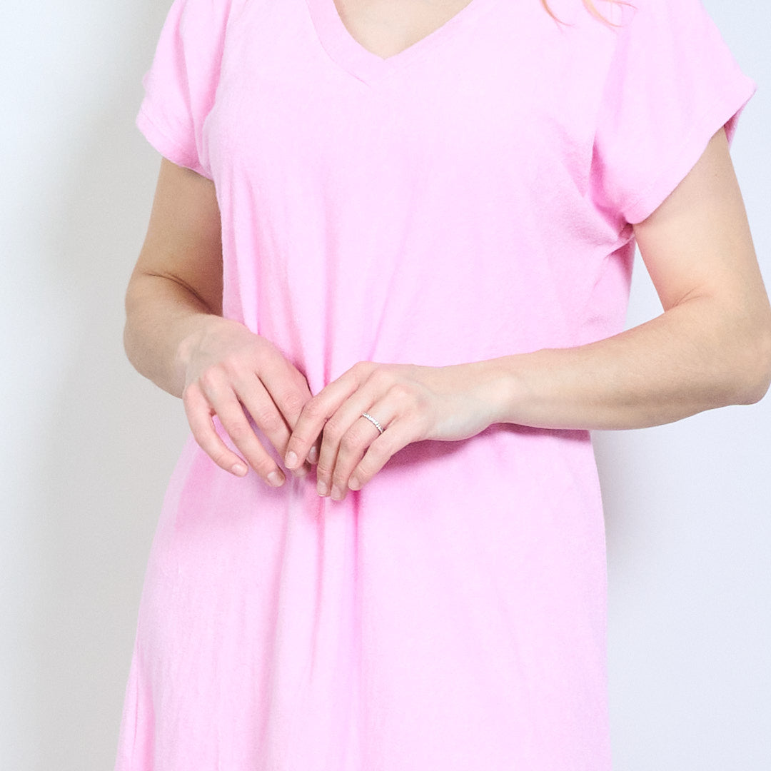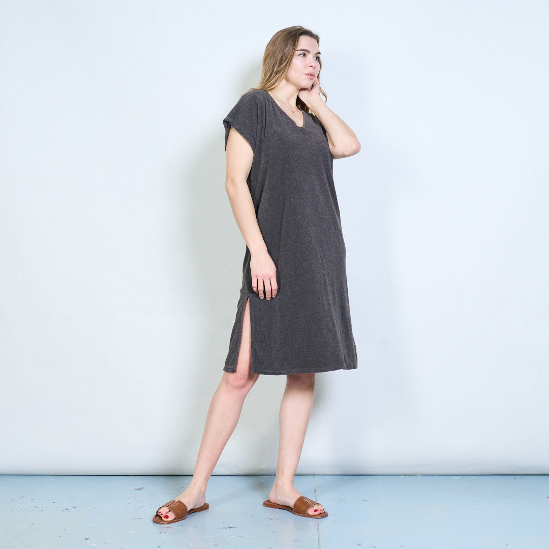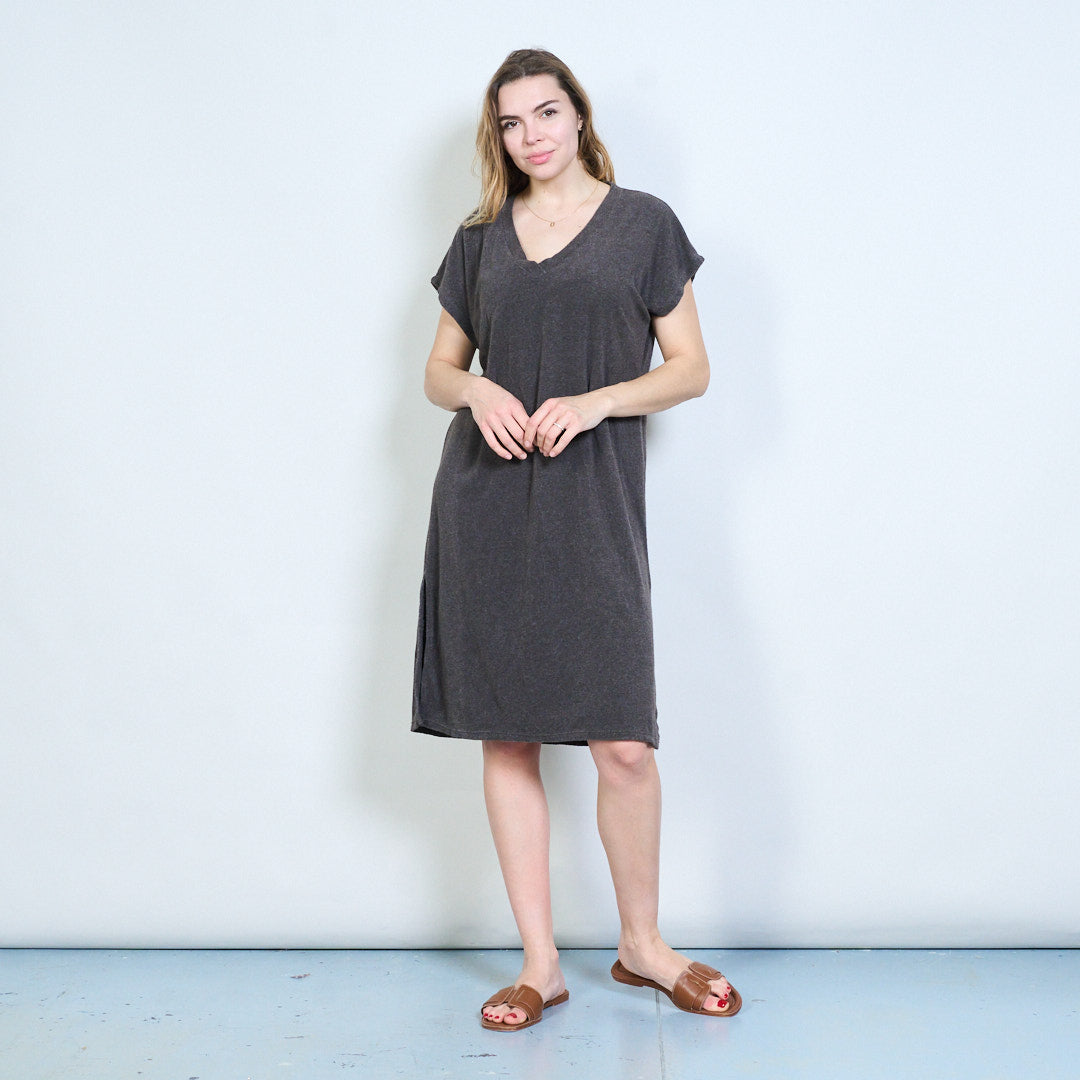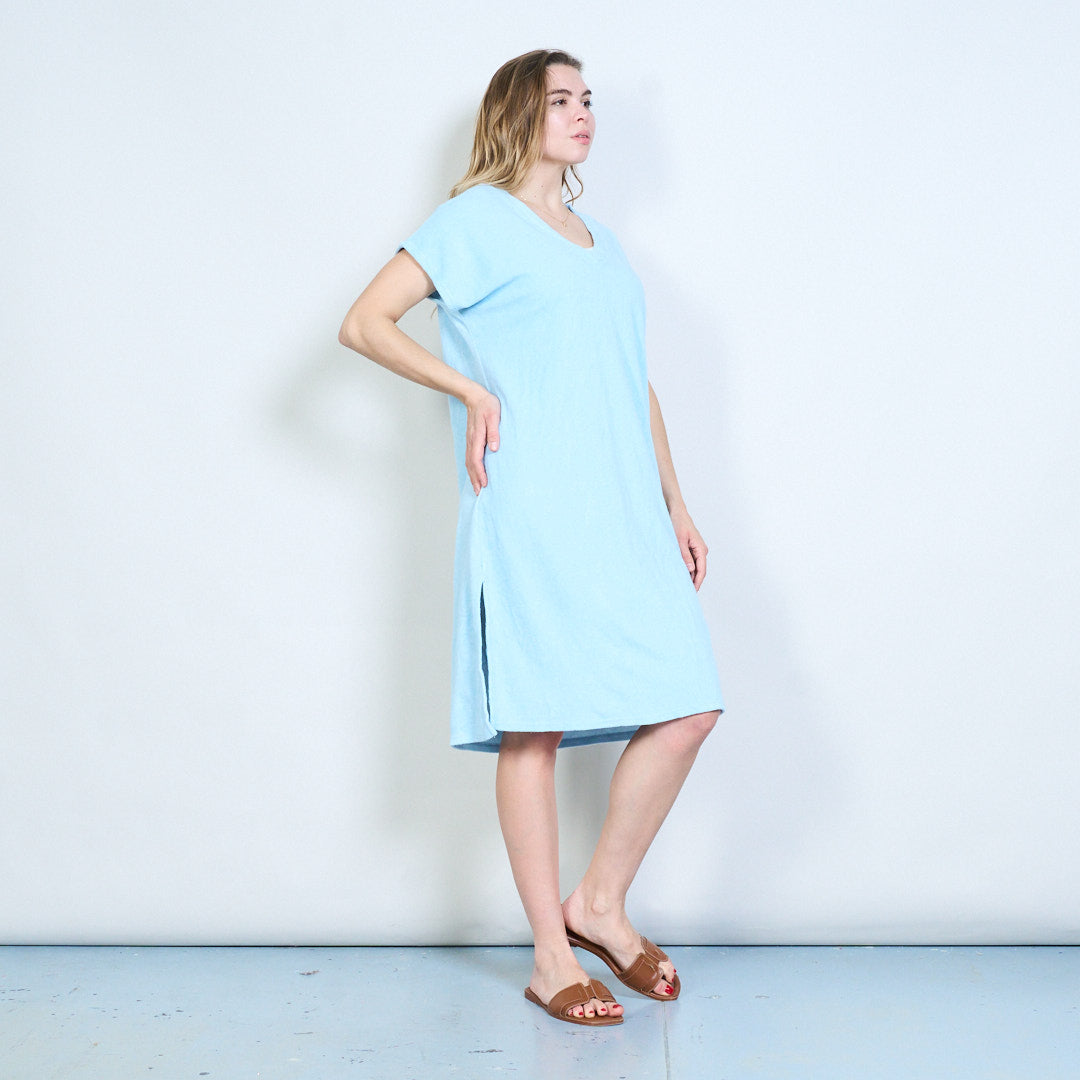 Luźna sukienka z krótkim rękawem i dekoltem w kształcie litery V. Hurtownia hurtowa