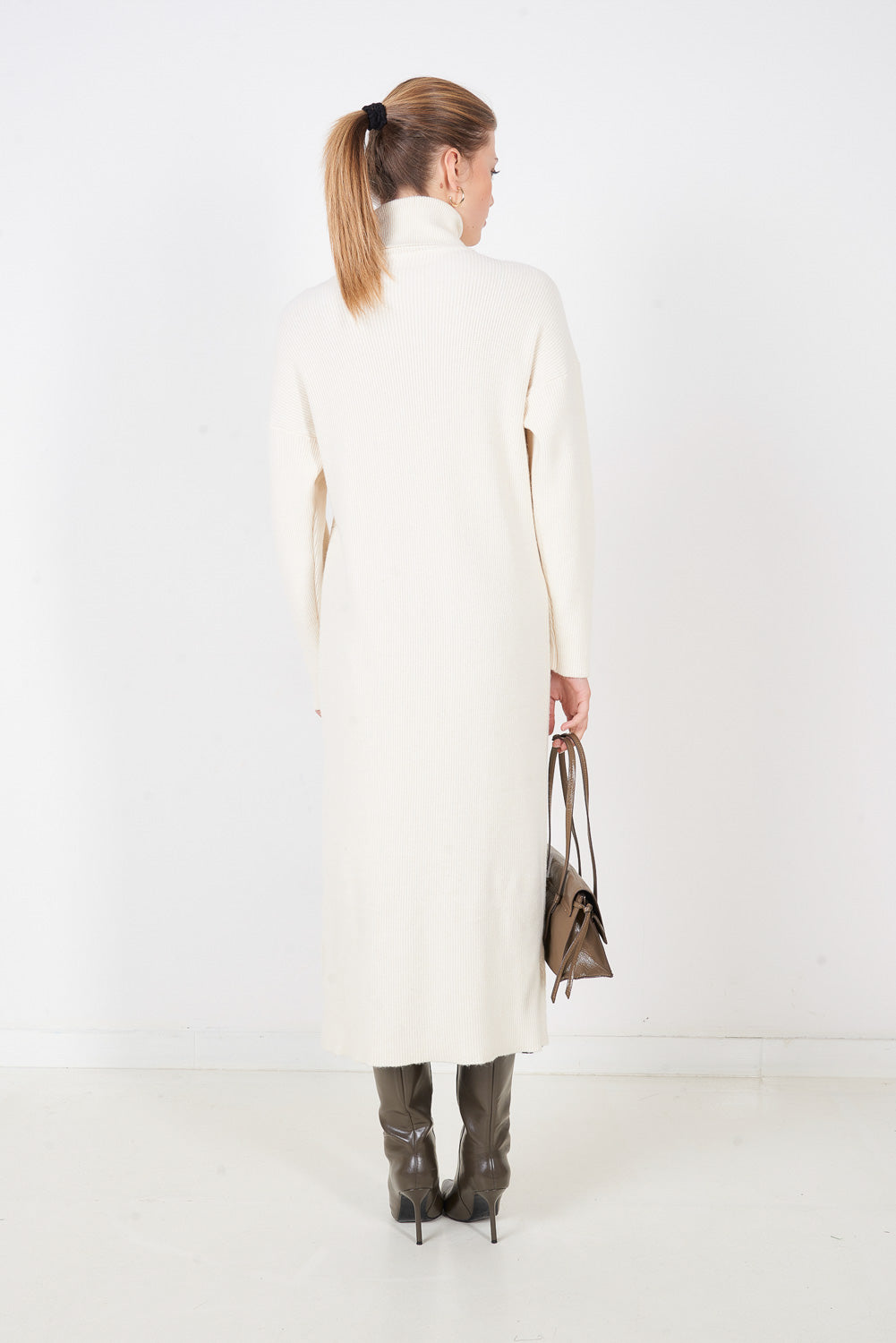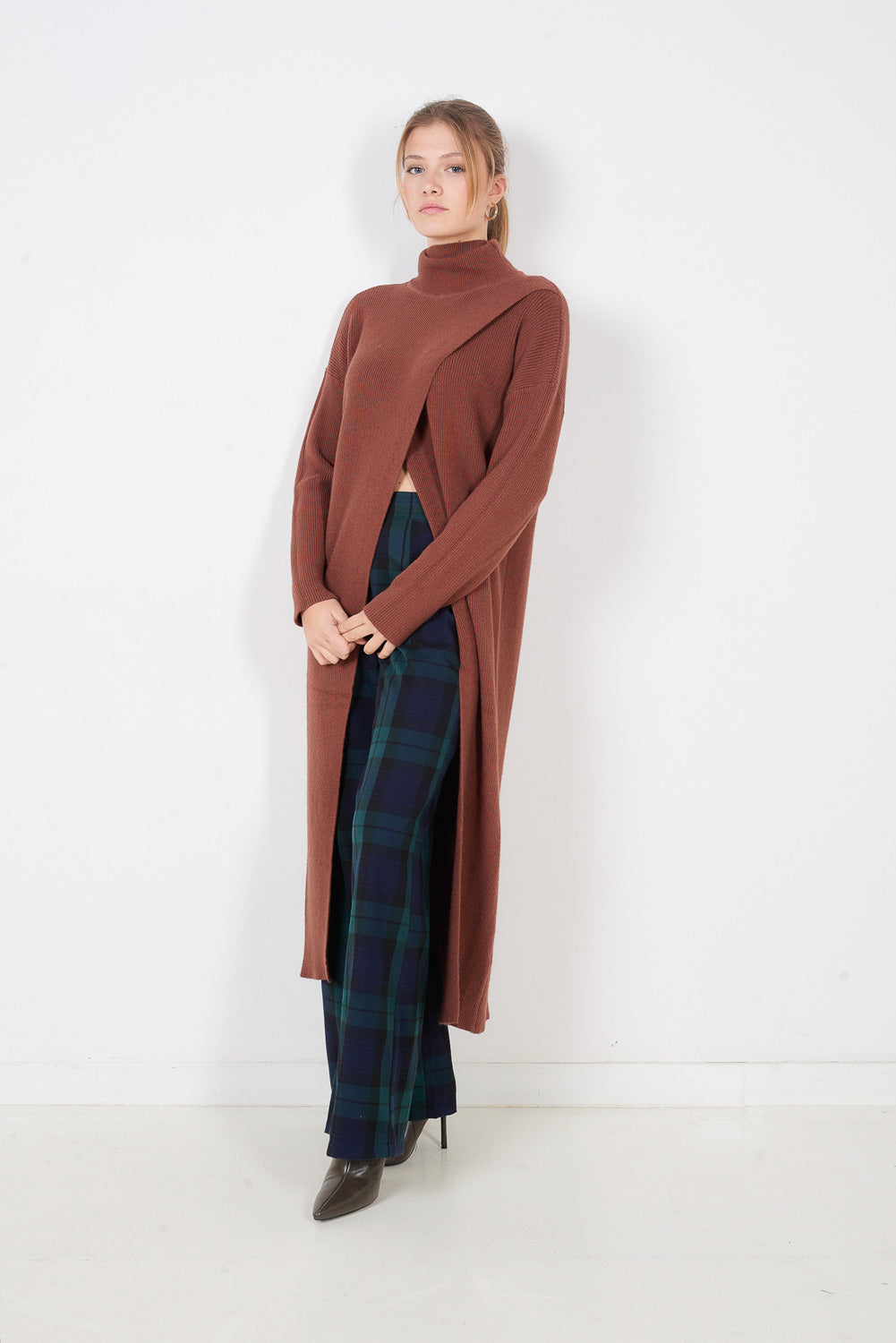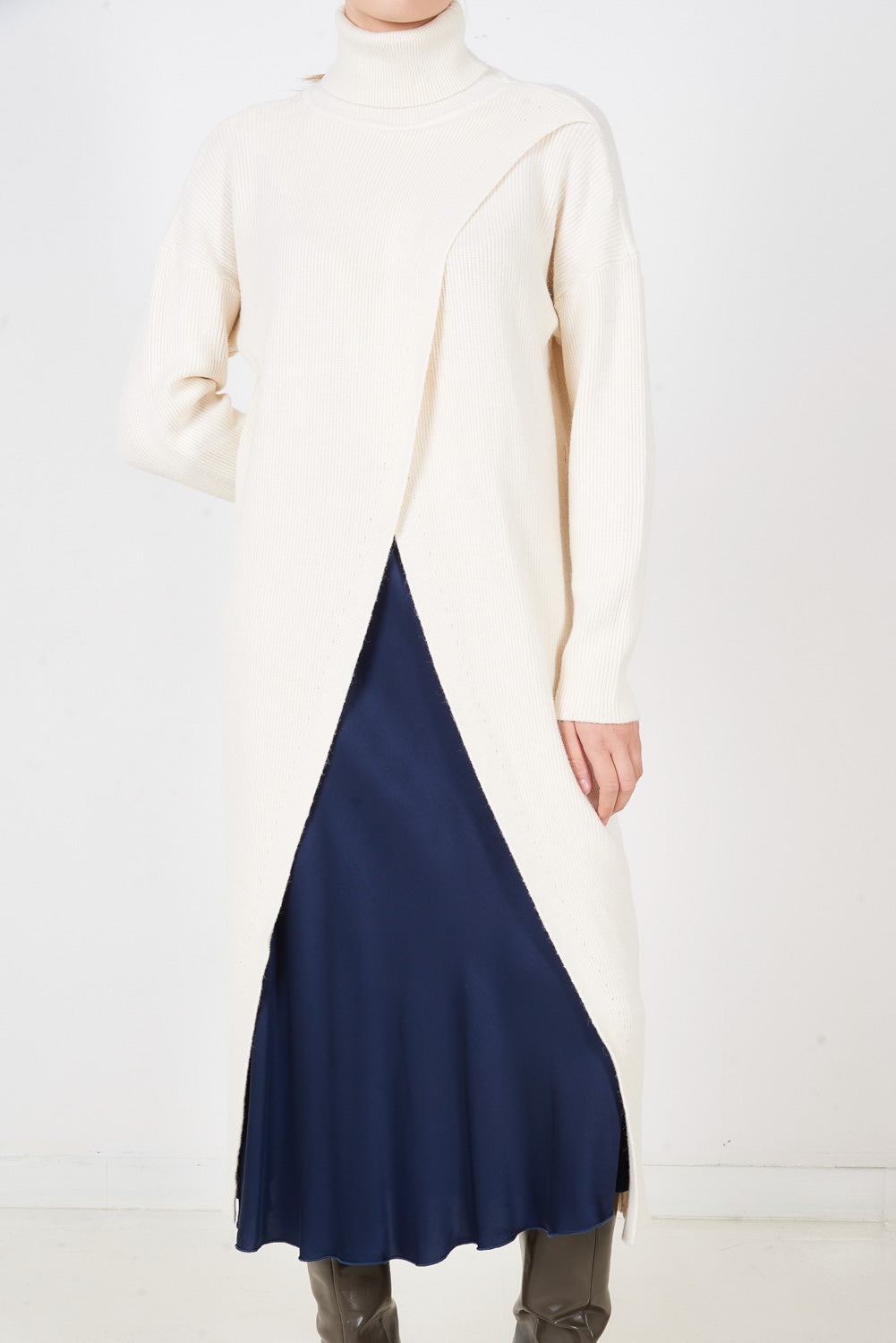 Warstwowy, długi, dzianinowy top z wysokim dekoltem w sprzedaży hurtowej