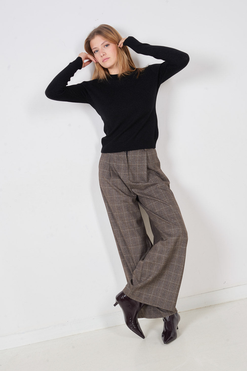 Hurtownia plisowanych, dopasowanych spodni z szerokimi nogawkami w kratę