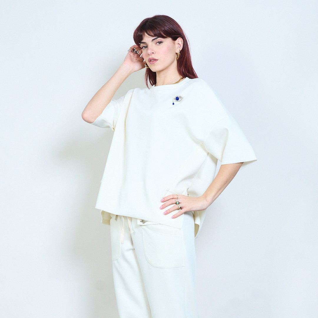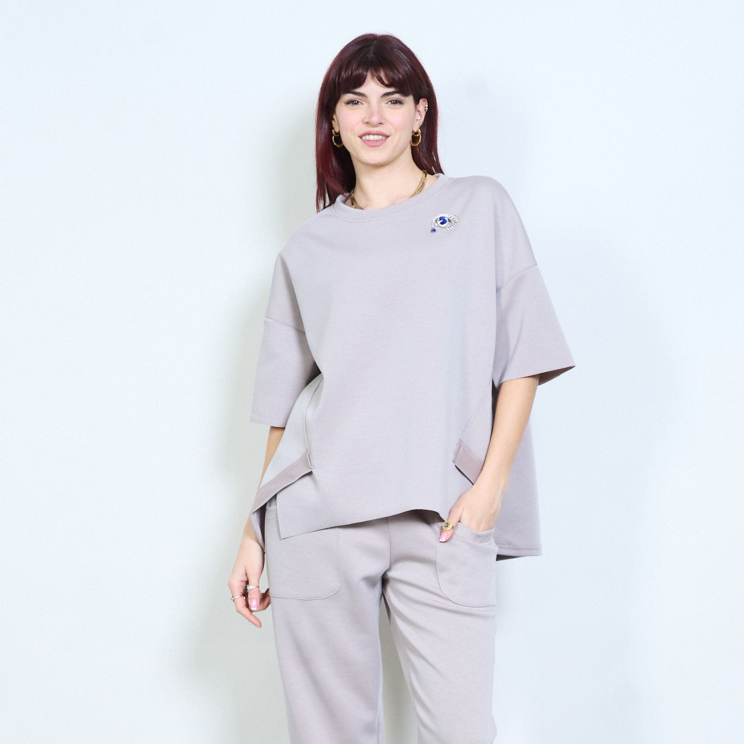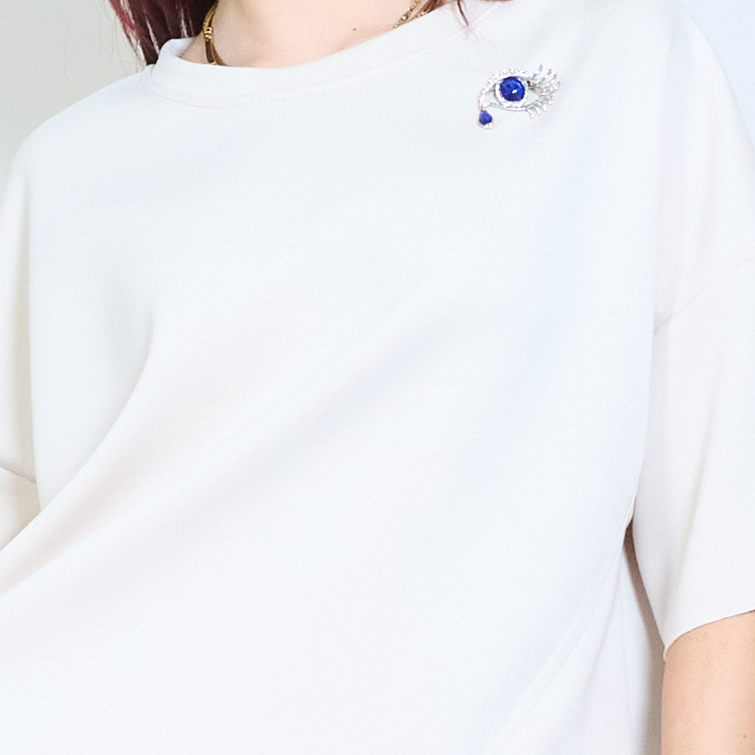 Broszka z kryształkami, zrelaksowany, okrągły dekolt i krótki rękaw, hurt