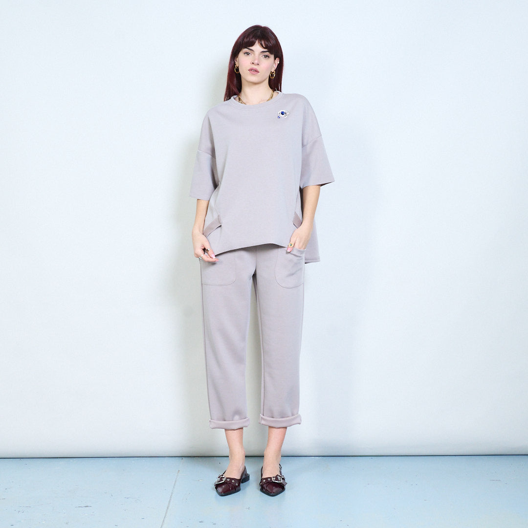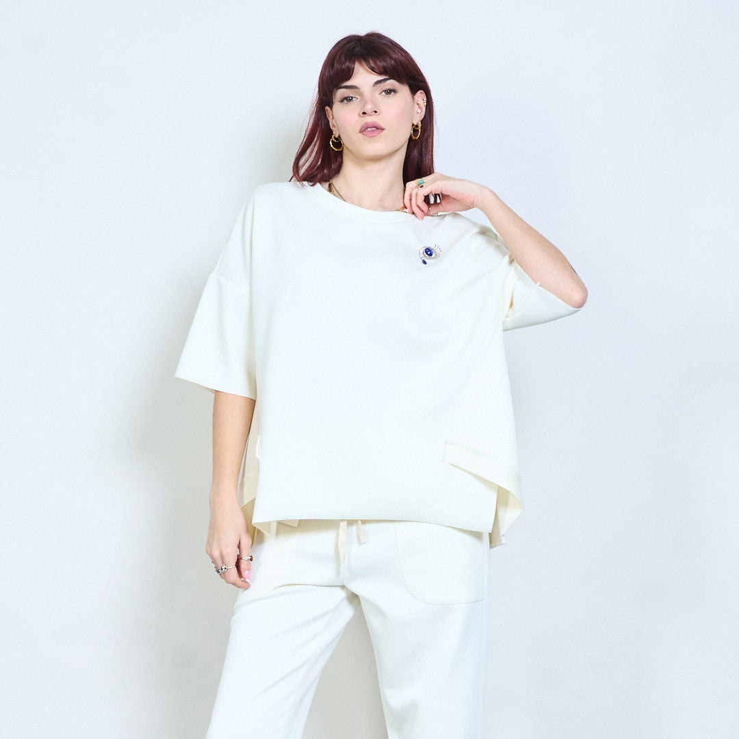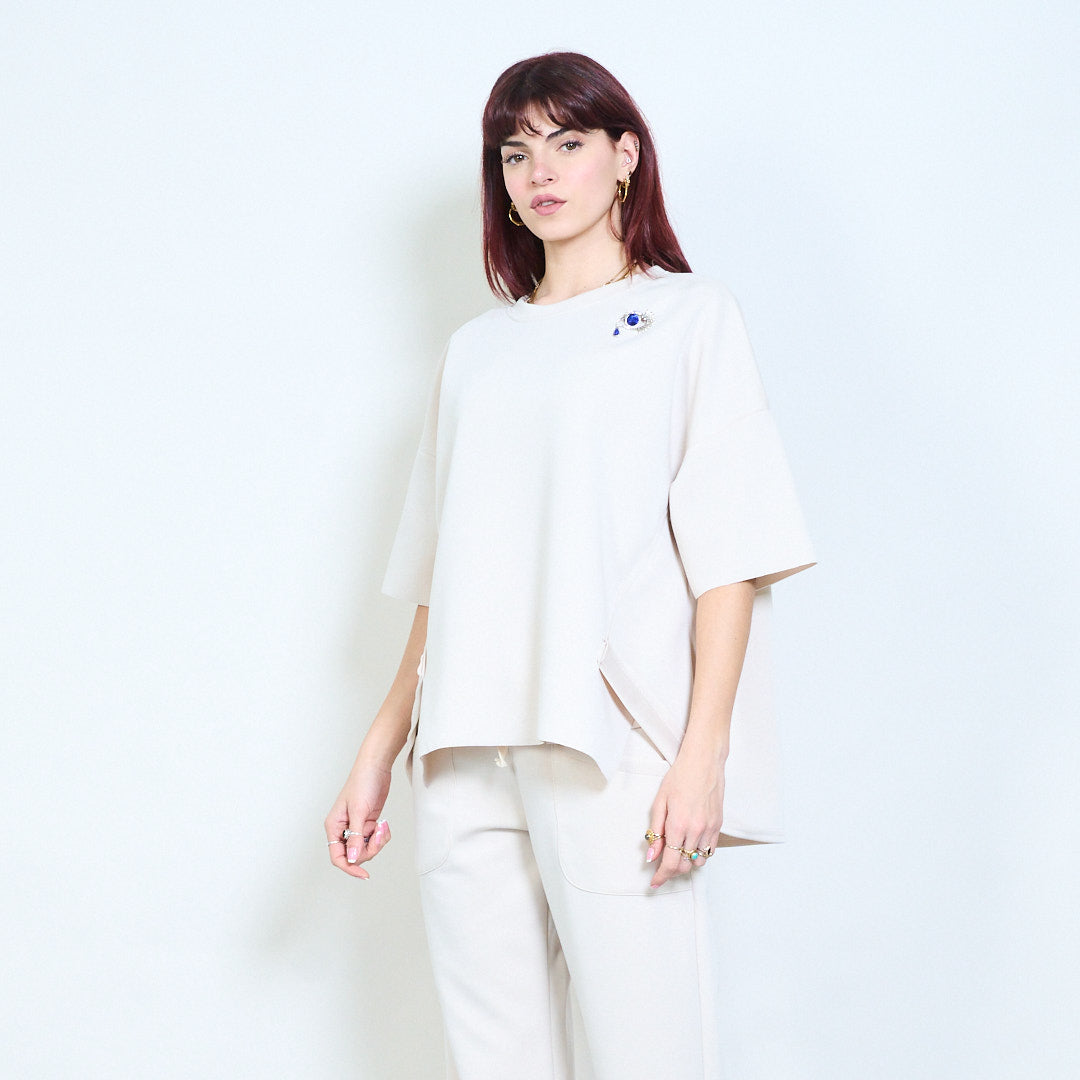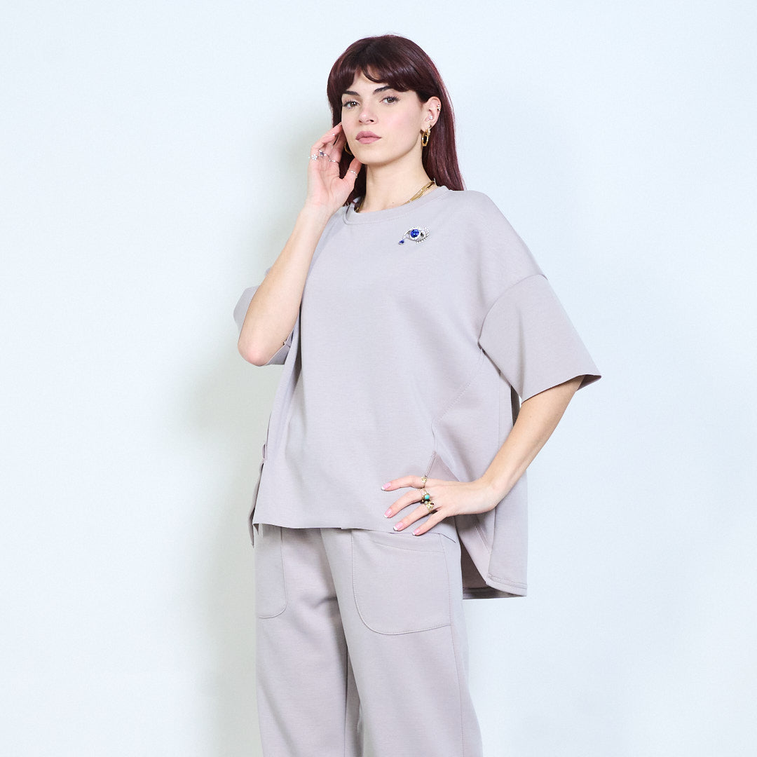 Broszka z kryształkami, zrelaksowany, okrągły dekolt i krótki rękaw, hurt