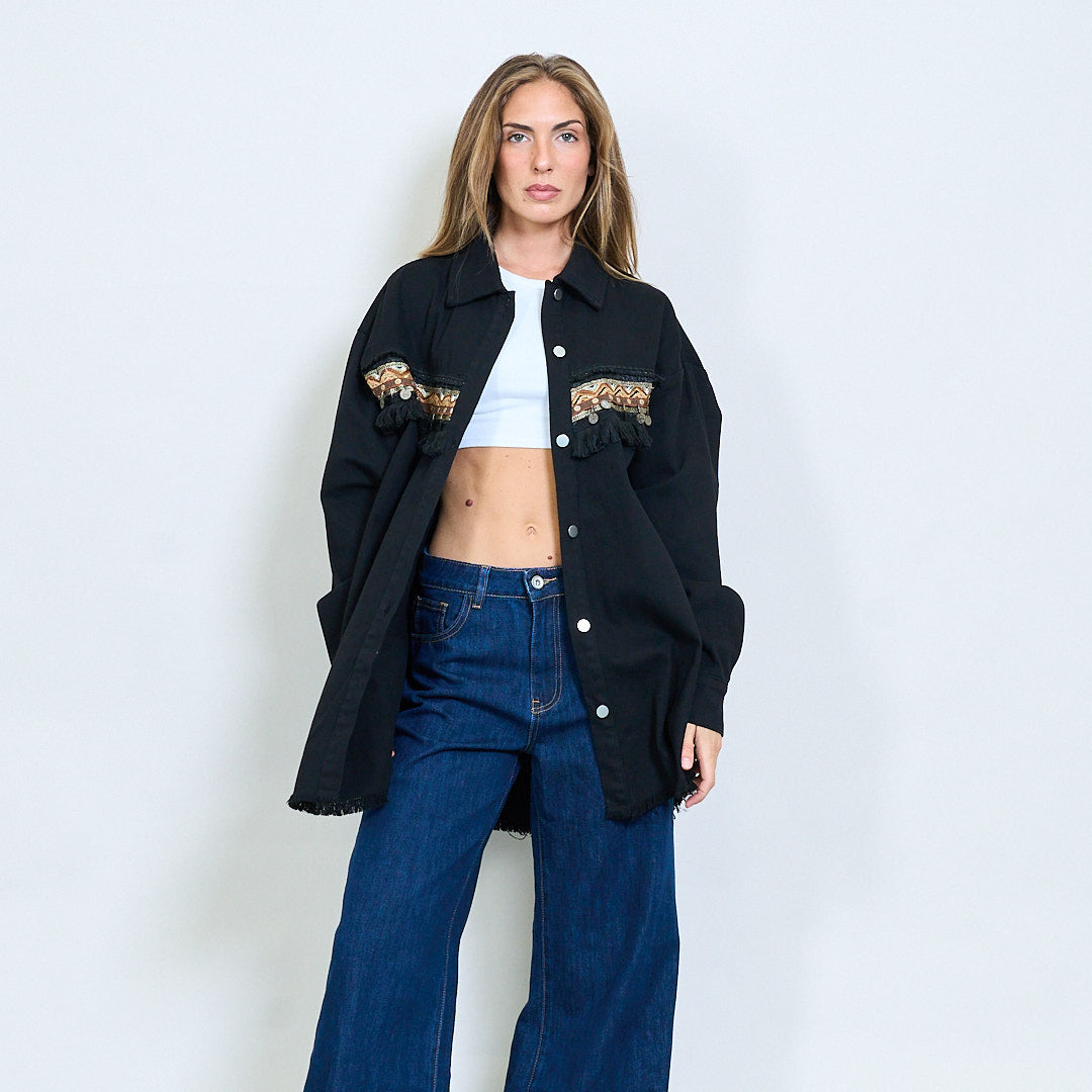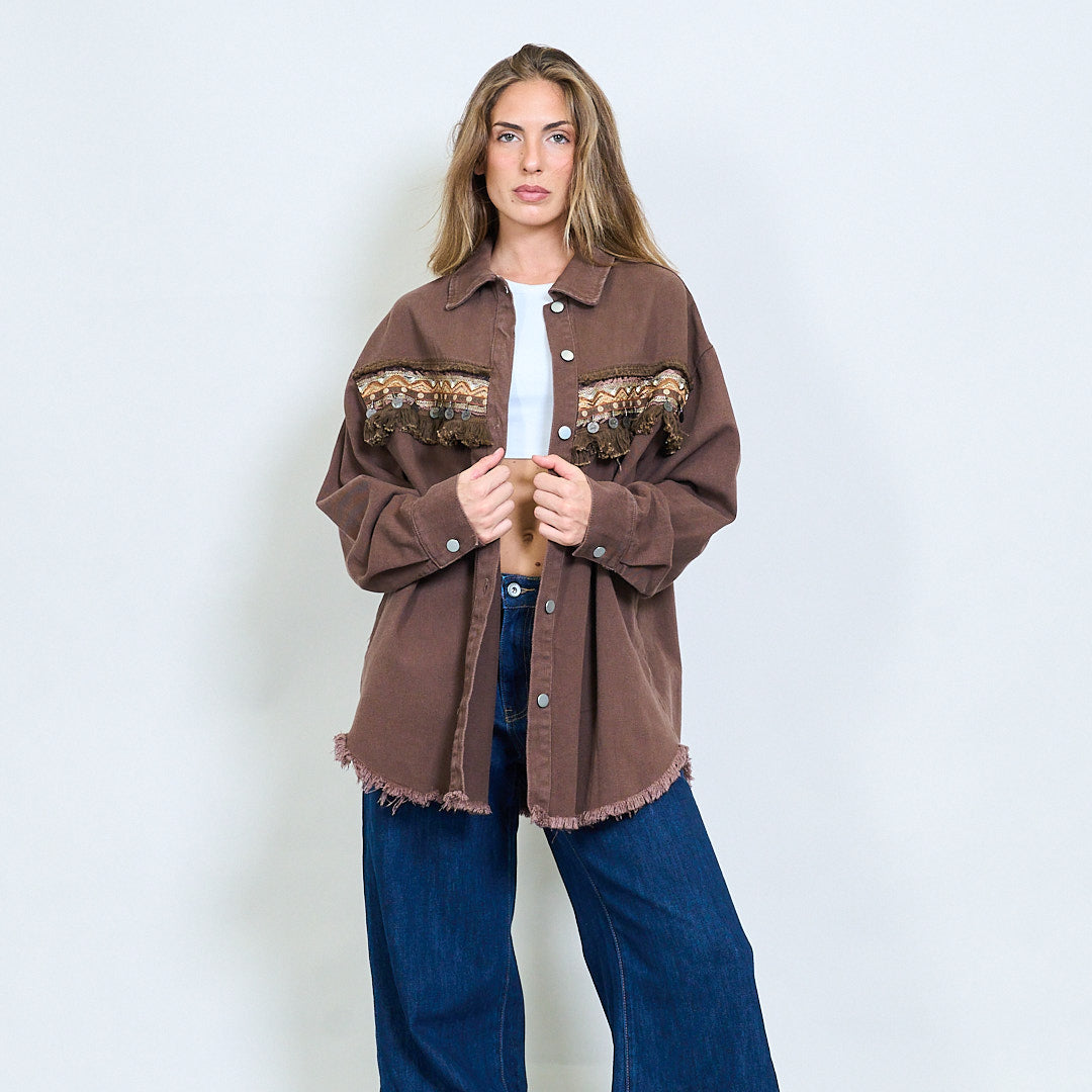 Etniczna kurtka koszulka z dłuższą ilością wykończenia z grzywką