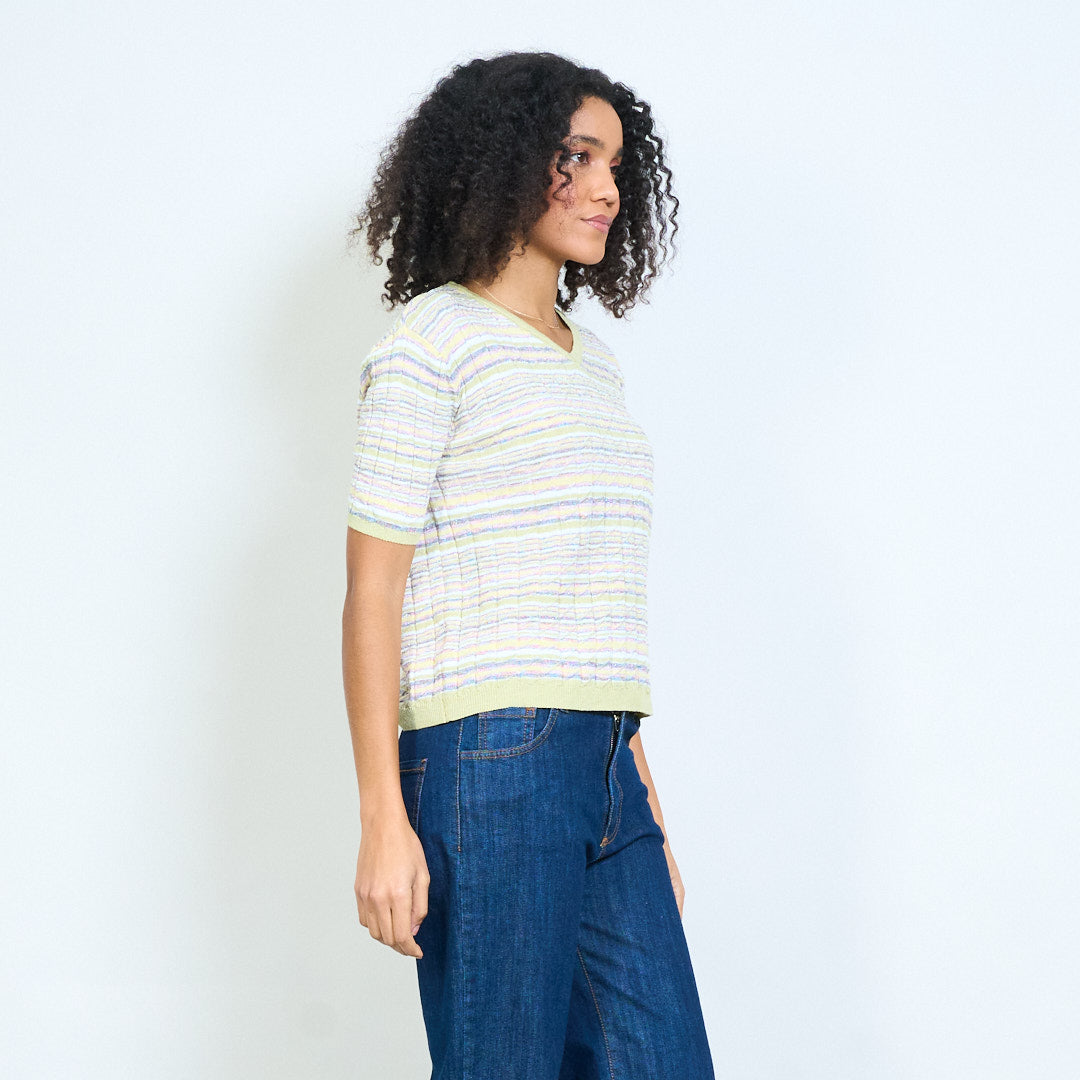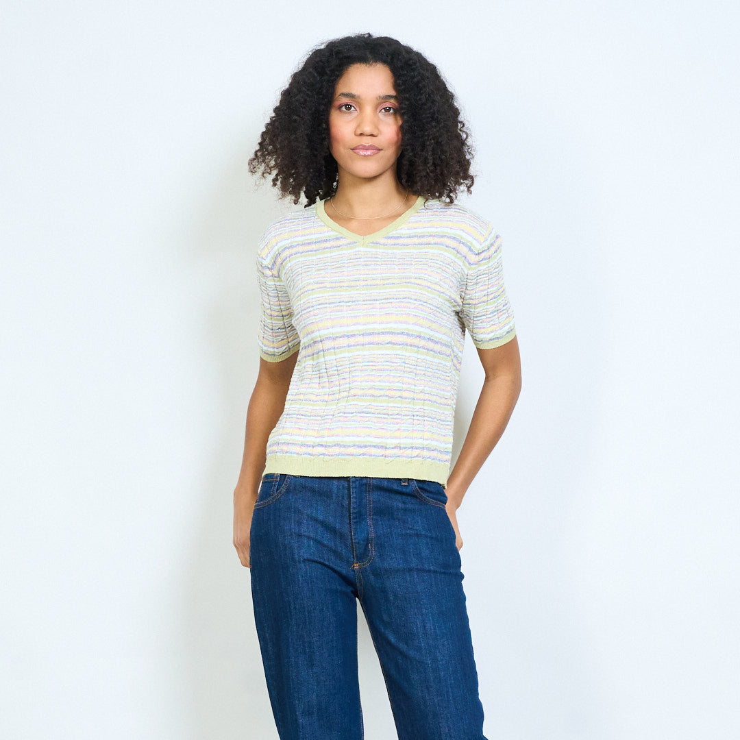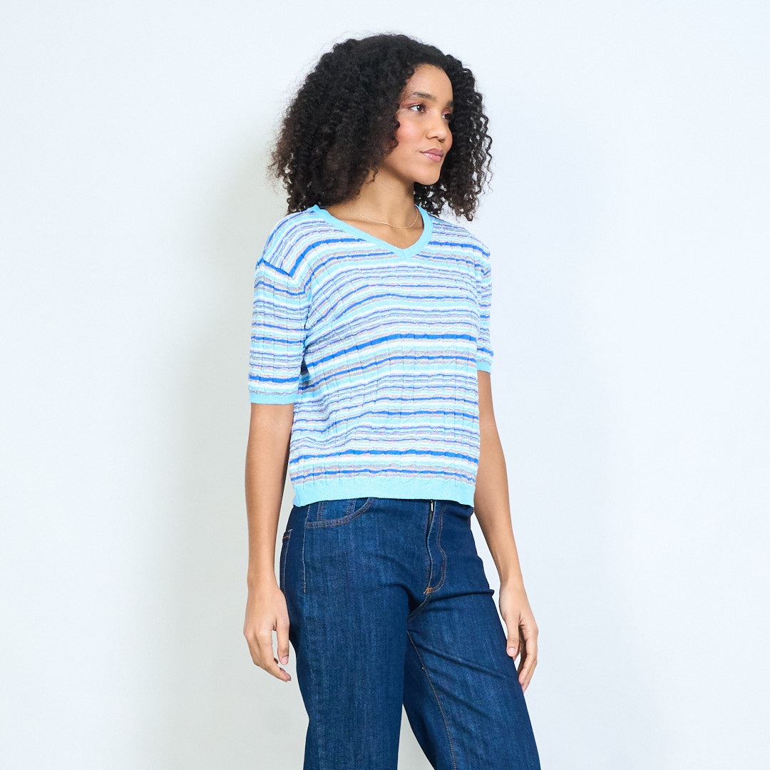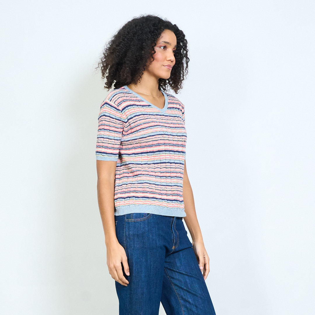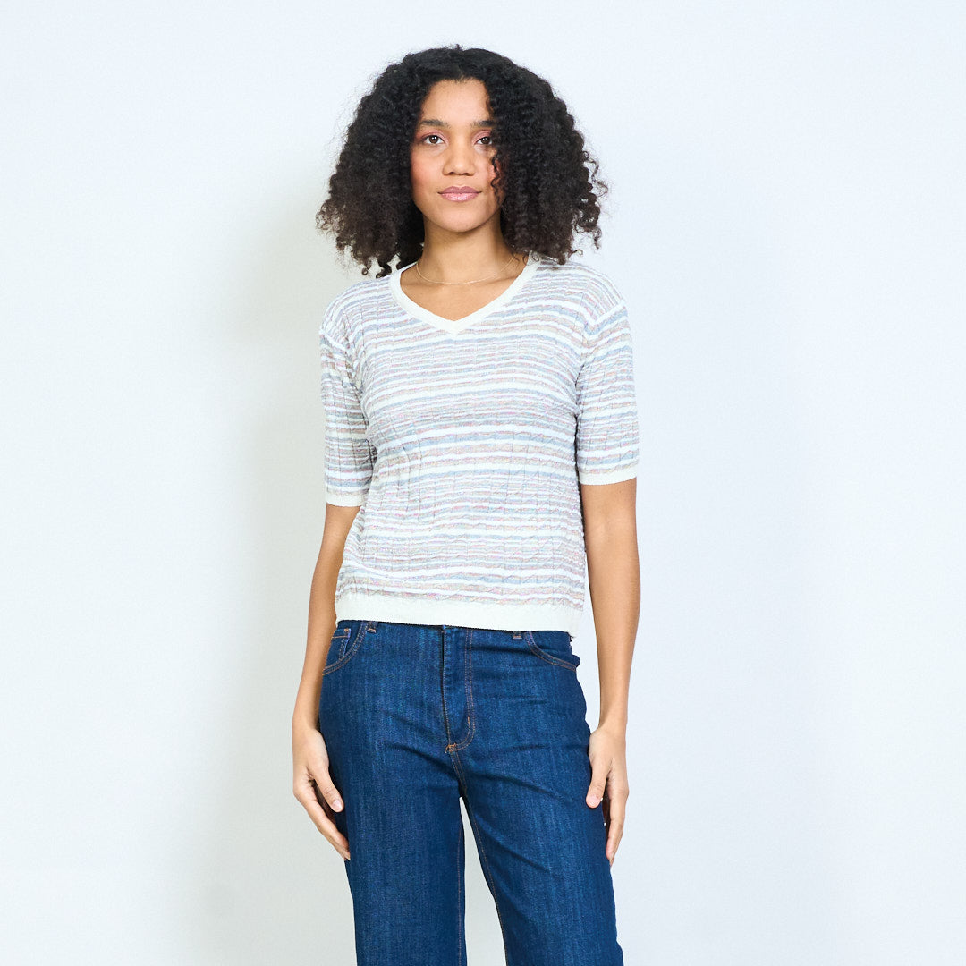 - Lekki, dzianinowy top z teksturowanym wzorem w poziome paski