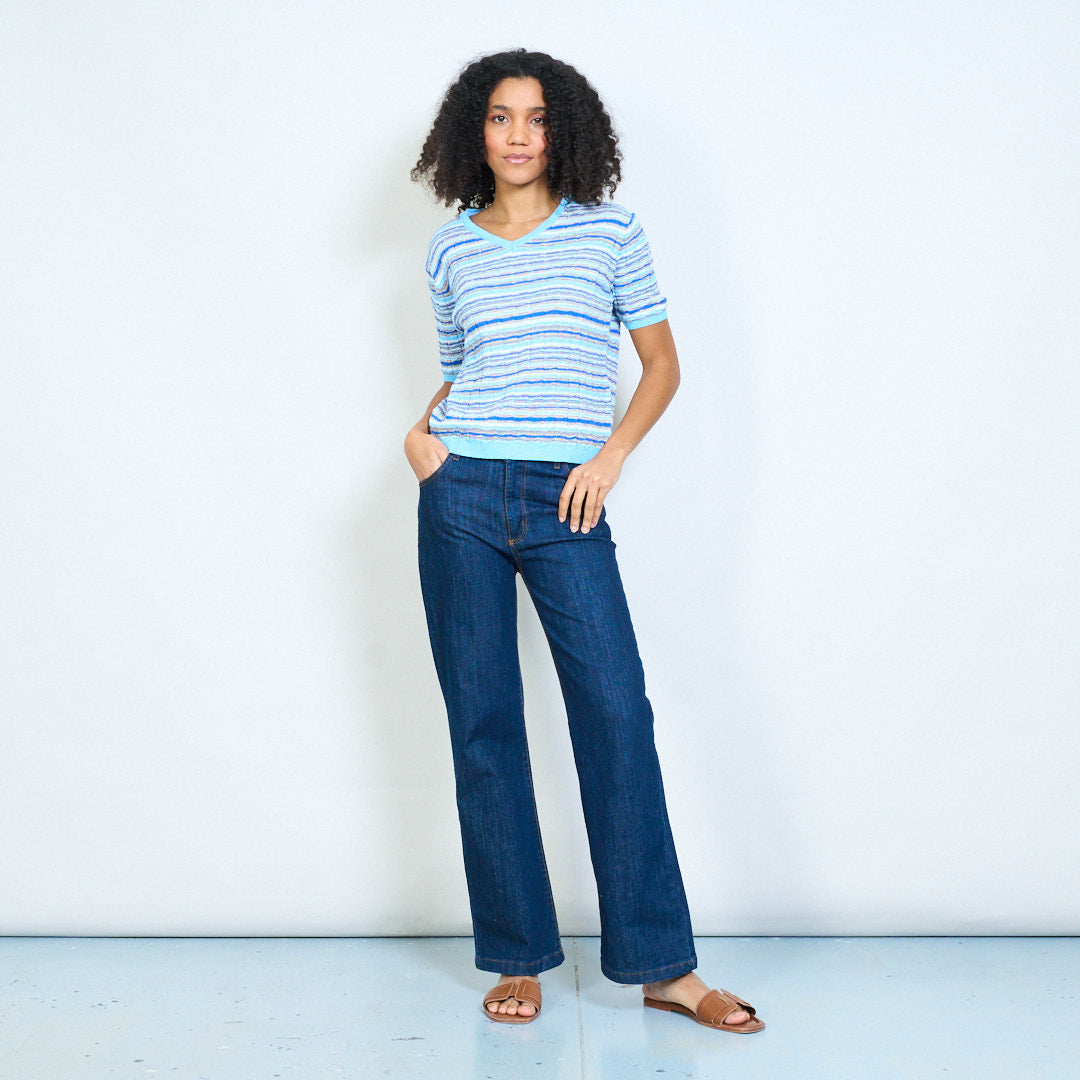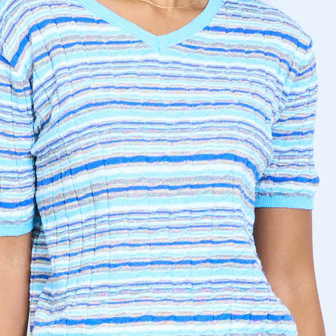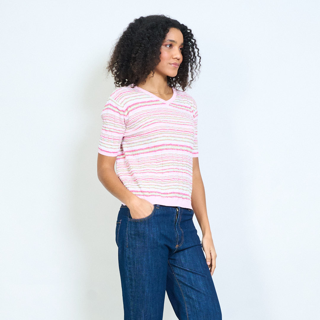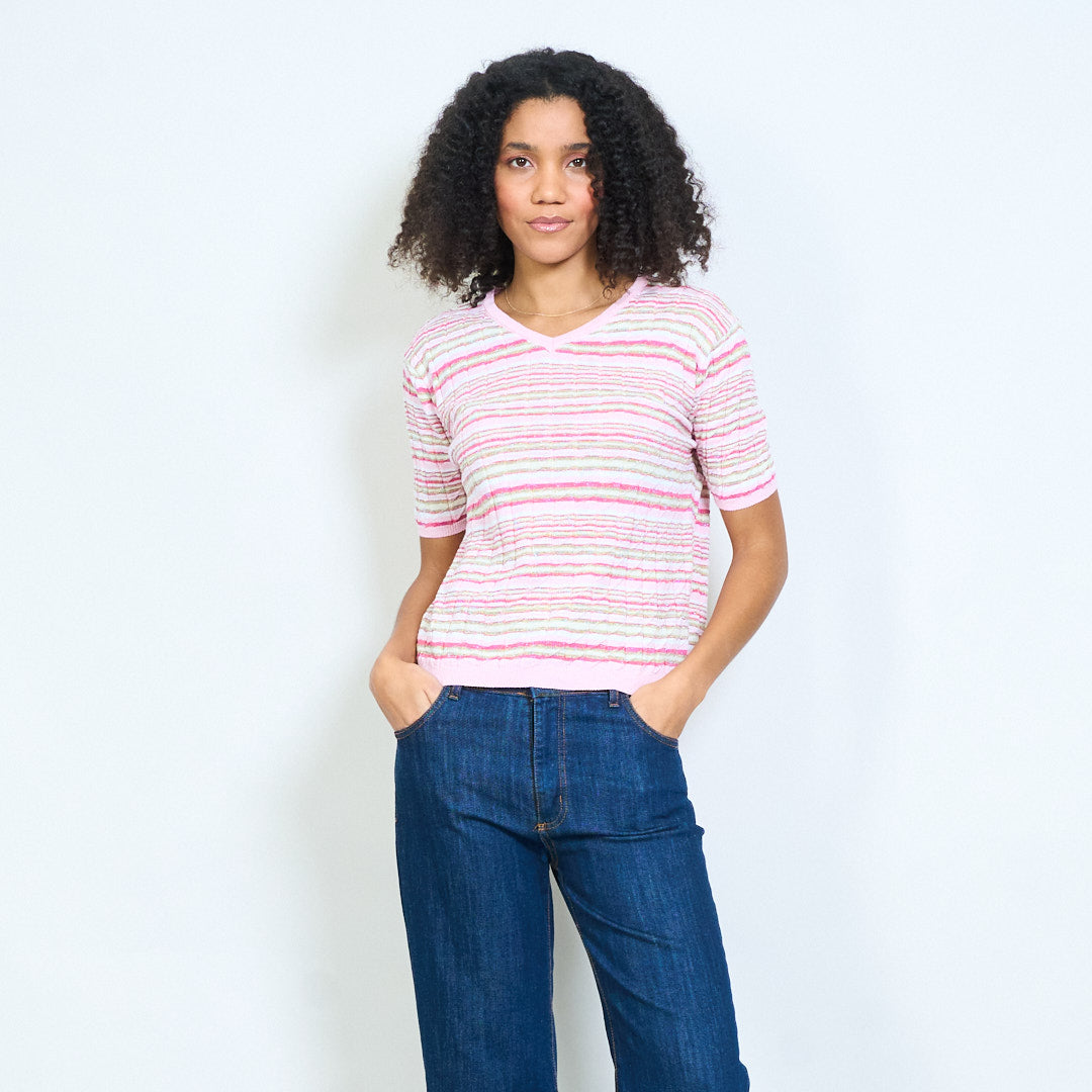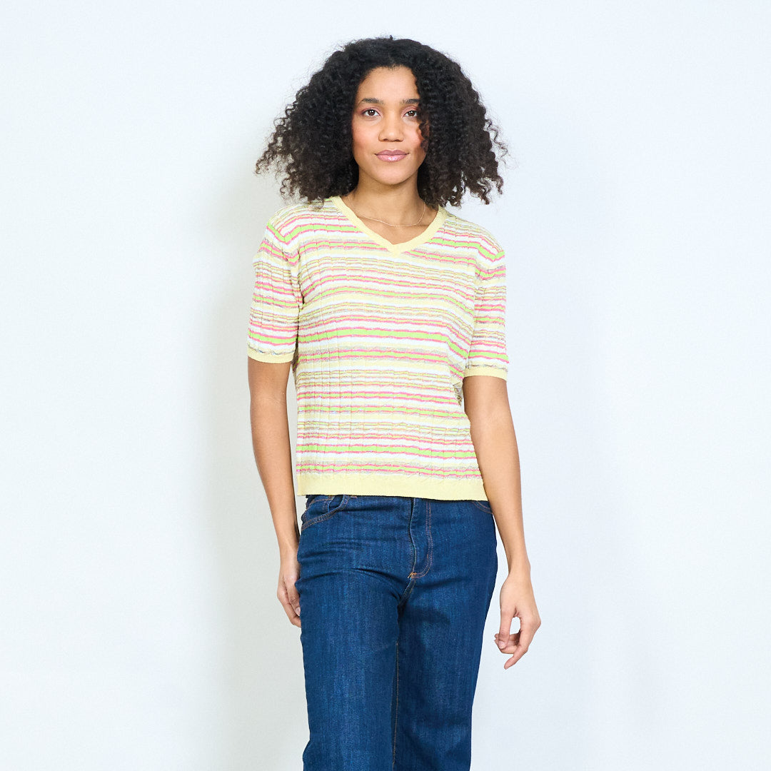 - Lekki, dzianinowy top z teksturowanym wzorem w poziome paski