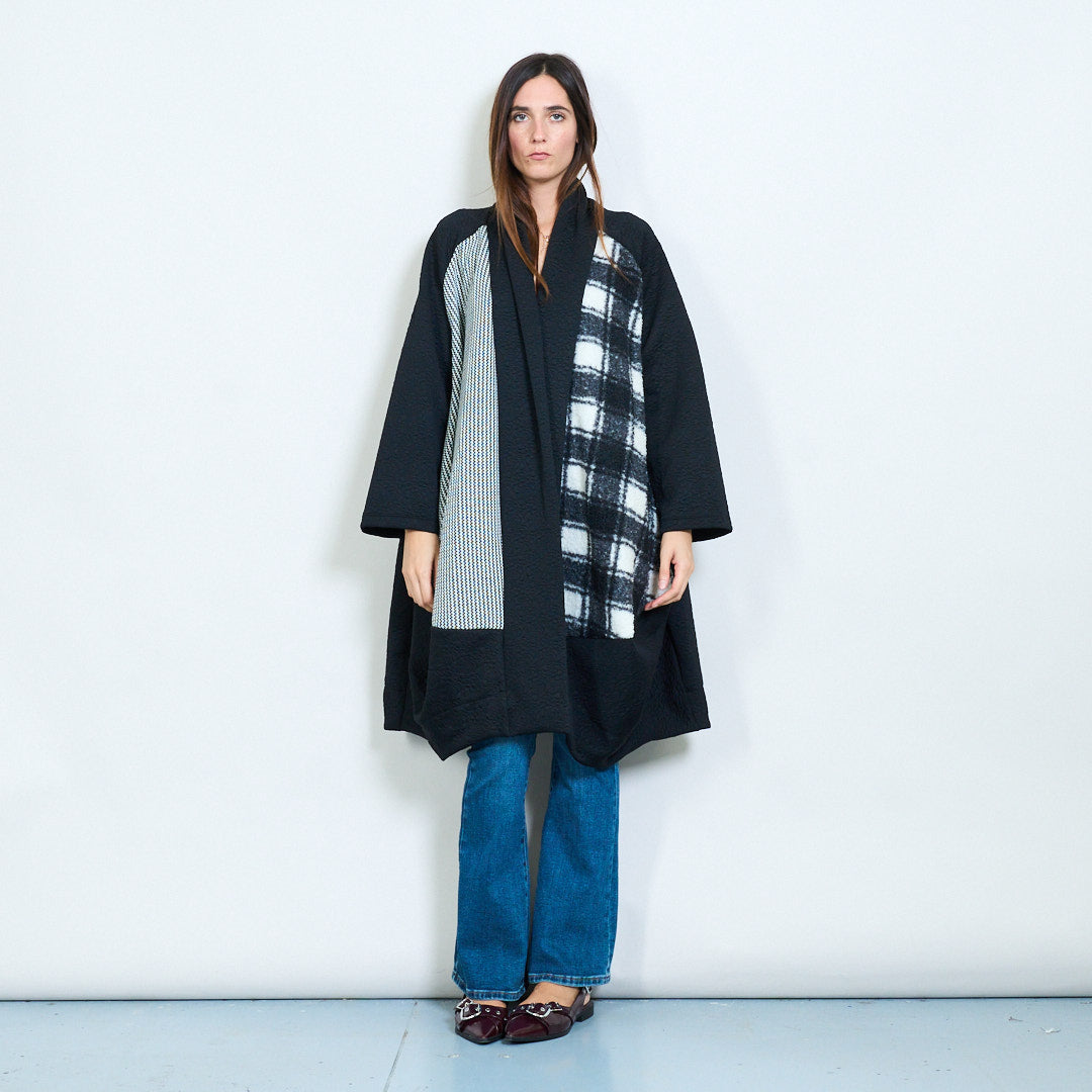 Patchwork Longline płaszcz z mieszanymi wzorami i szerokimi rękawami hurtowymi