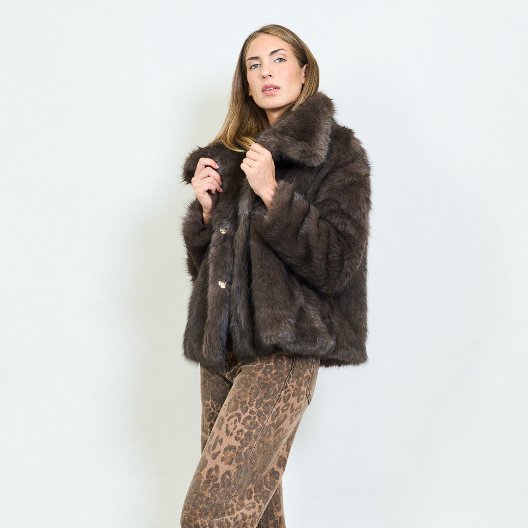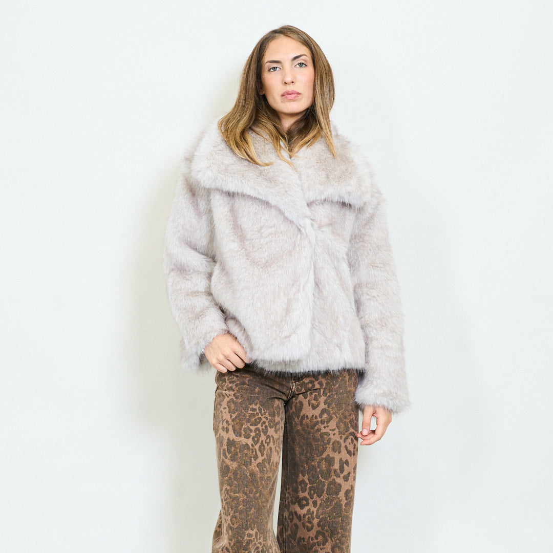 Krótki futra futra z dużym hurtowym kołnierzem klapowym