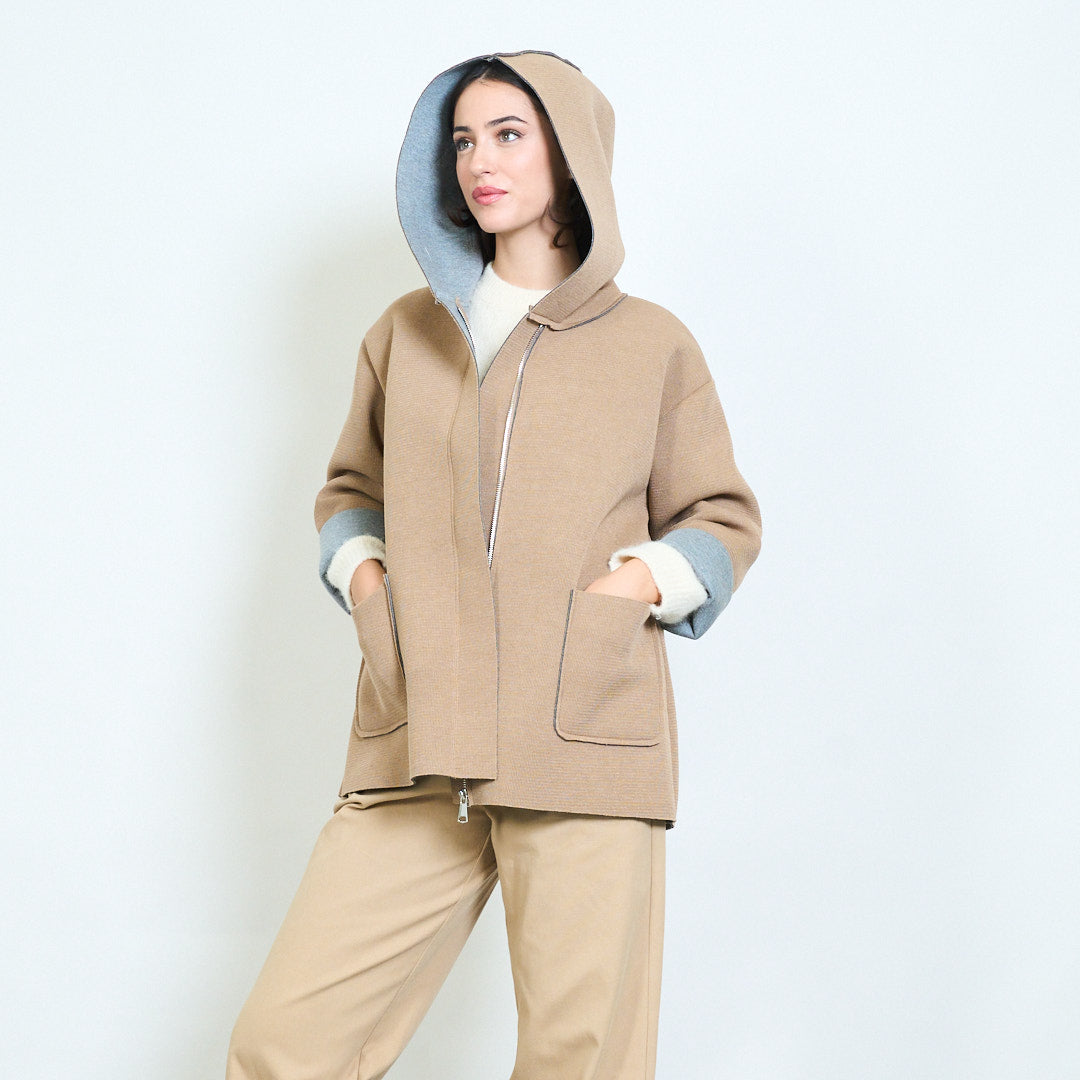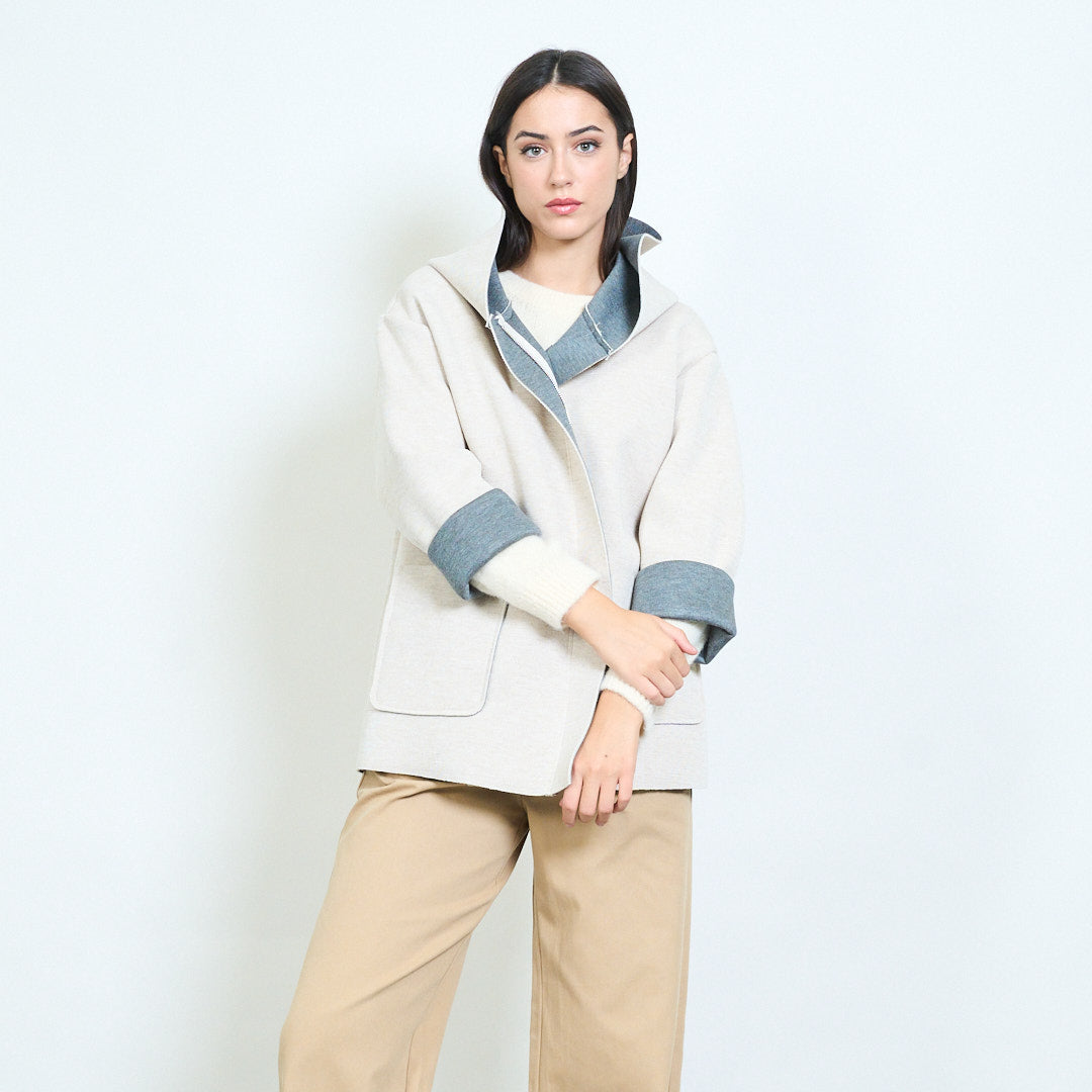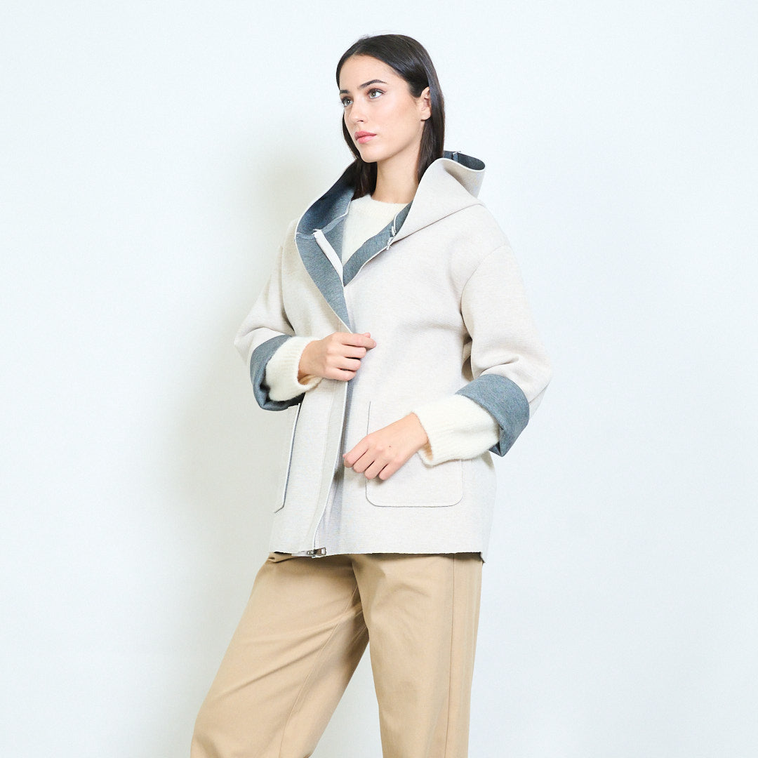 Hurtownia dwukolorowej kurtki casualowej z kapturem i zamkiem błyskawicznym