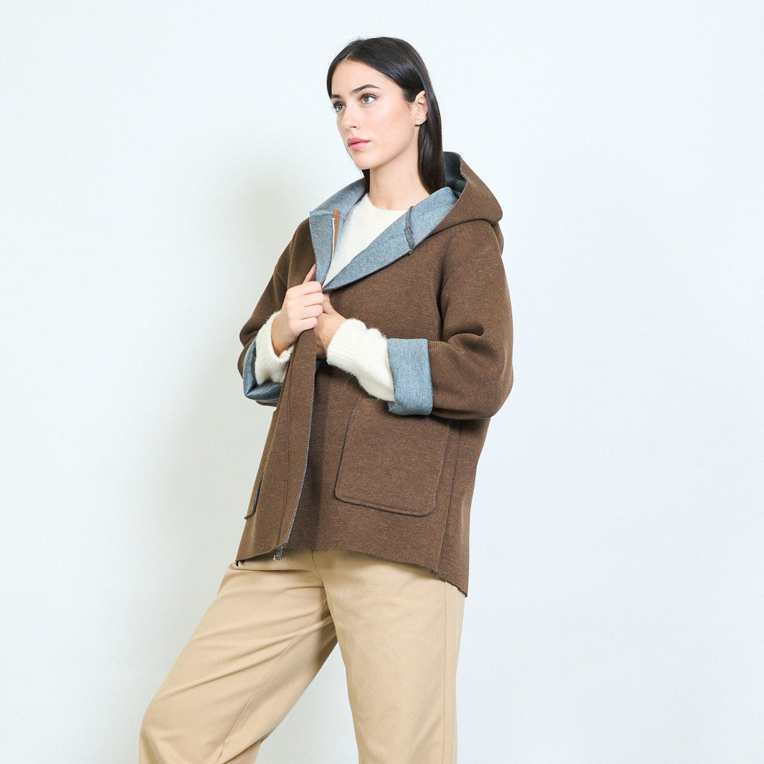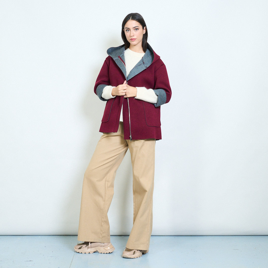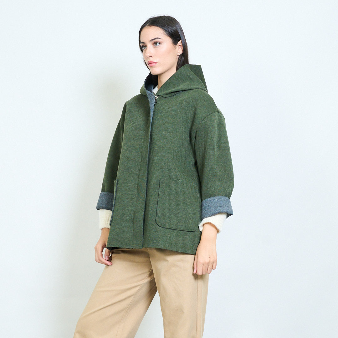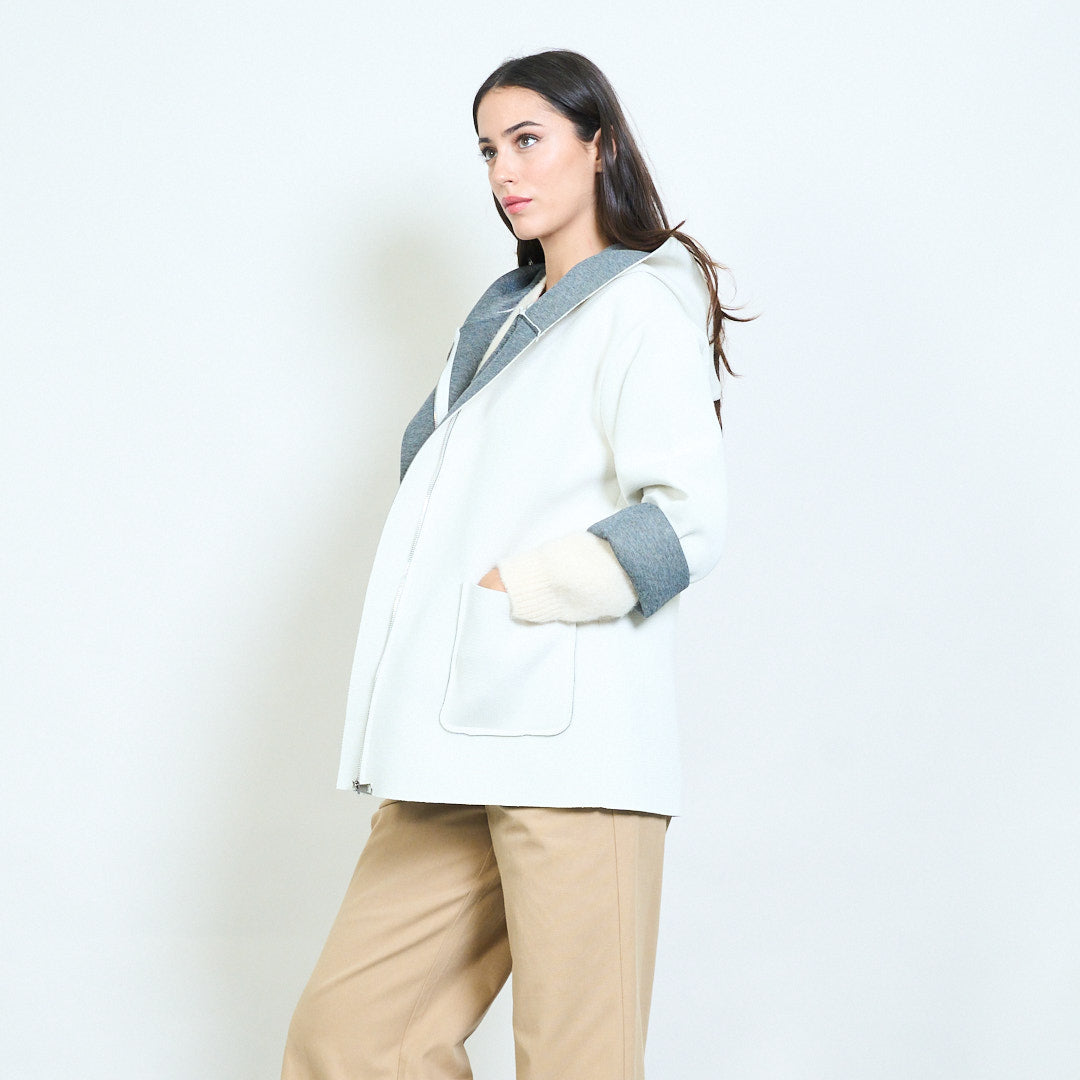 Hurtownia dwukolorowej kurtki casualowej z kapturem i zamkiem błyskawicznym