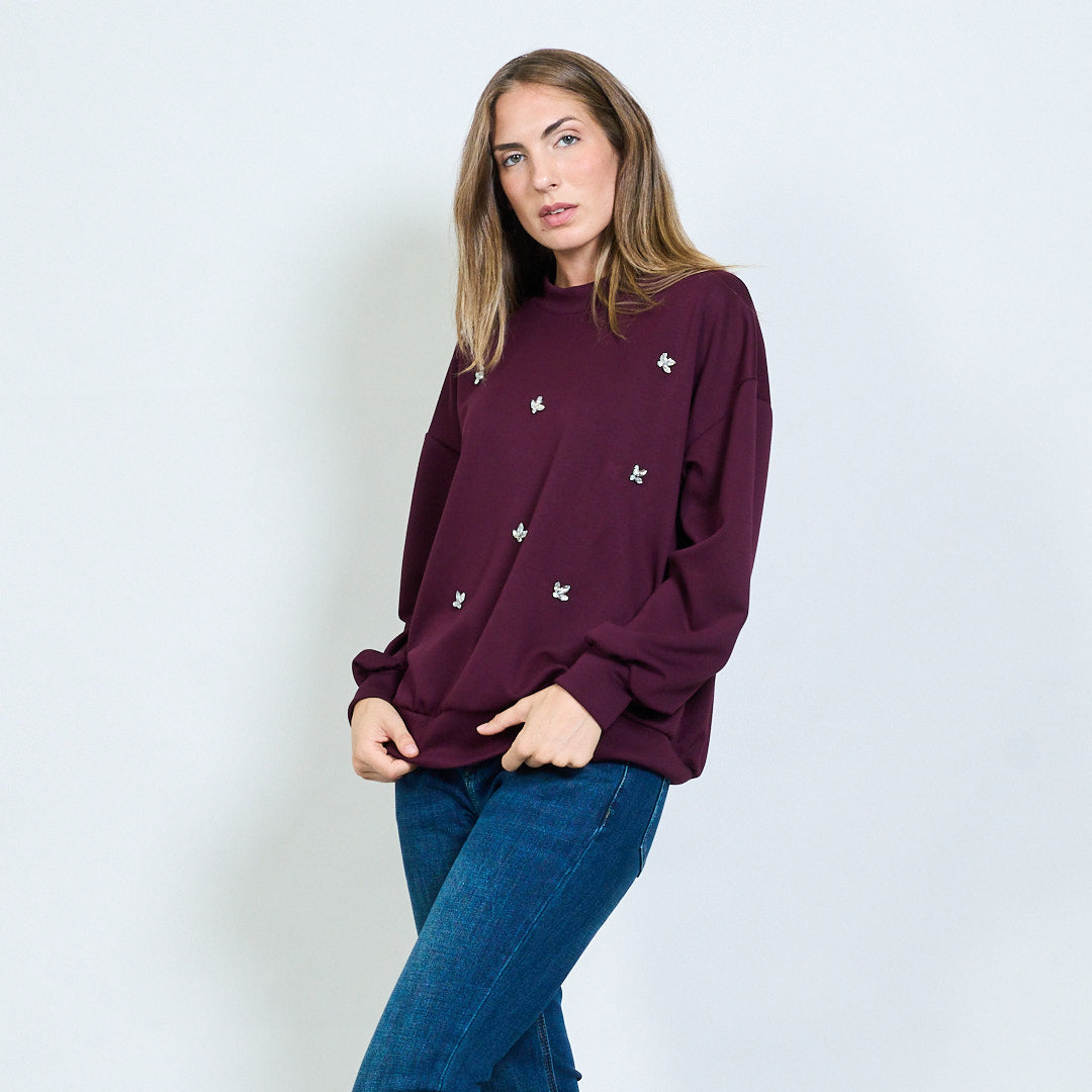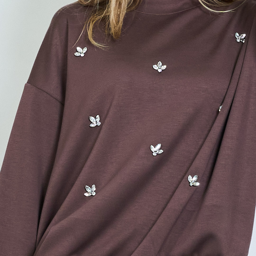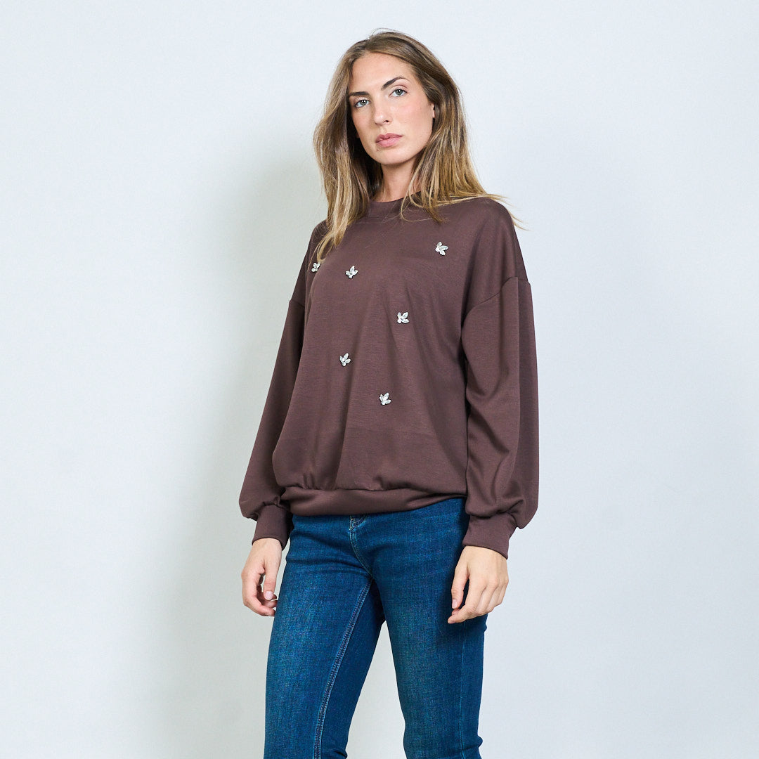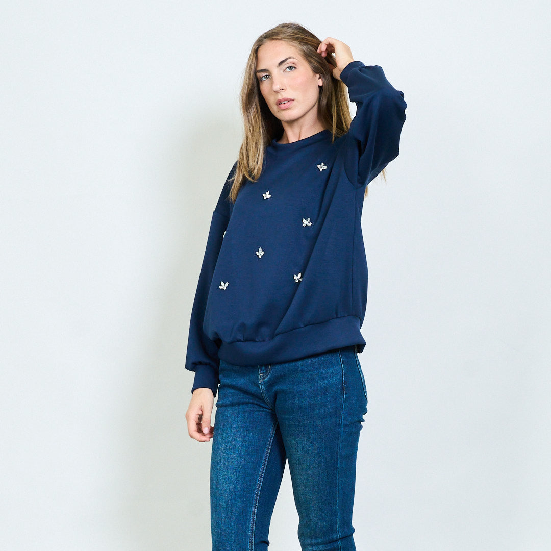 - Miękka bluza z rozproszonymi kryształowymi aplikacjami motyli