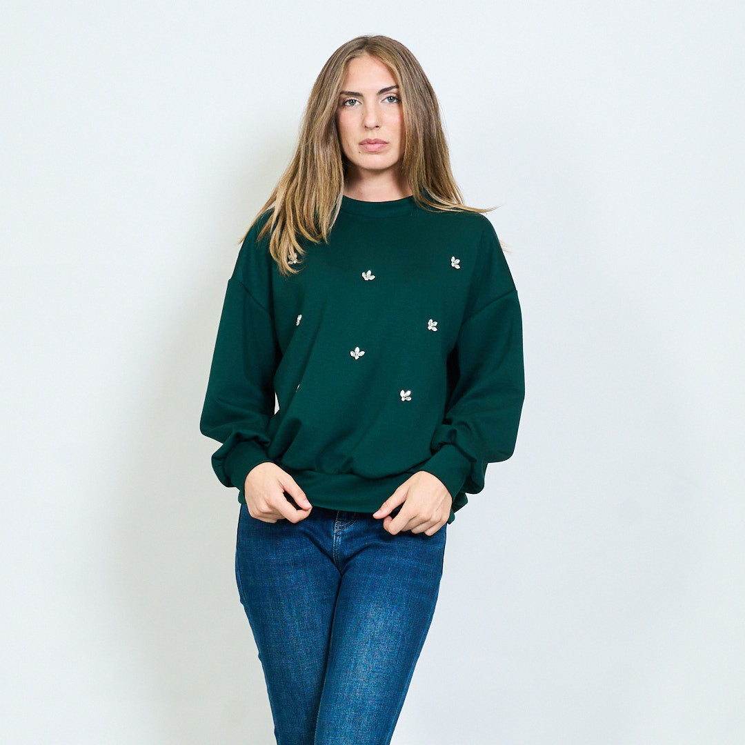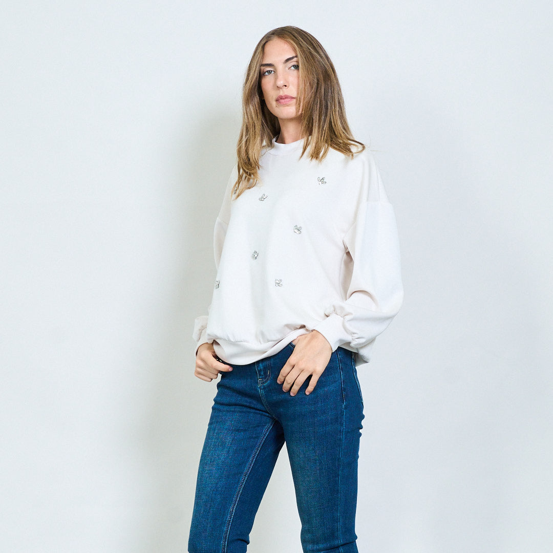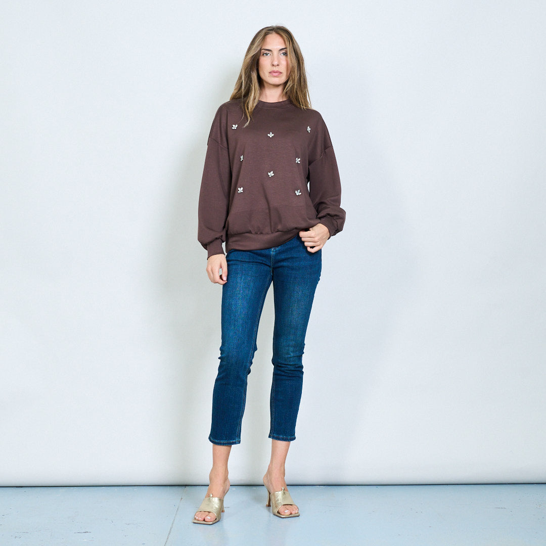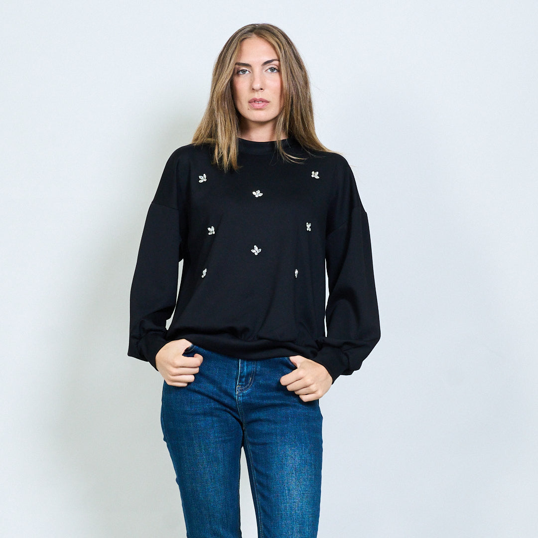 - Miękka bluza z rozproszonymi kryształowymi aplikacjami motyli