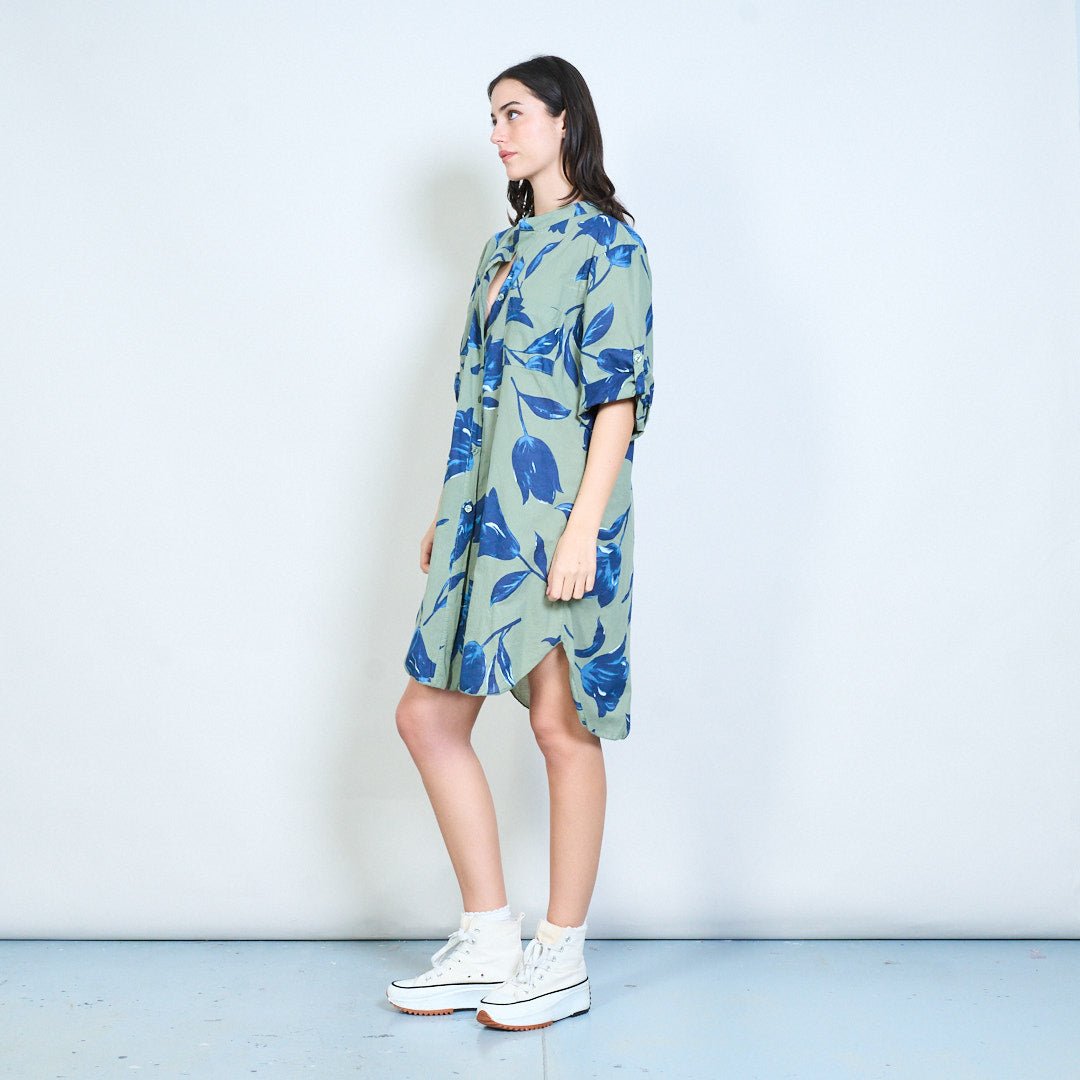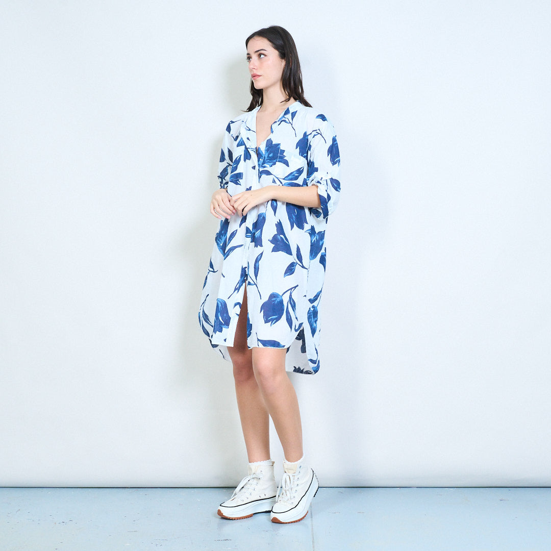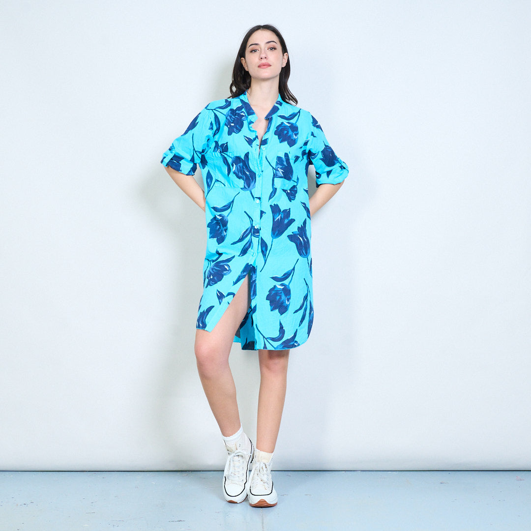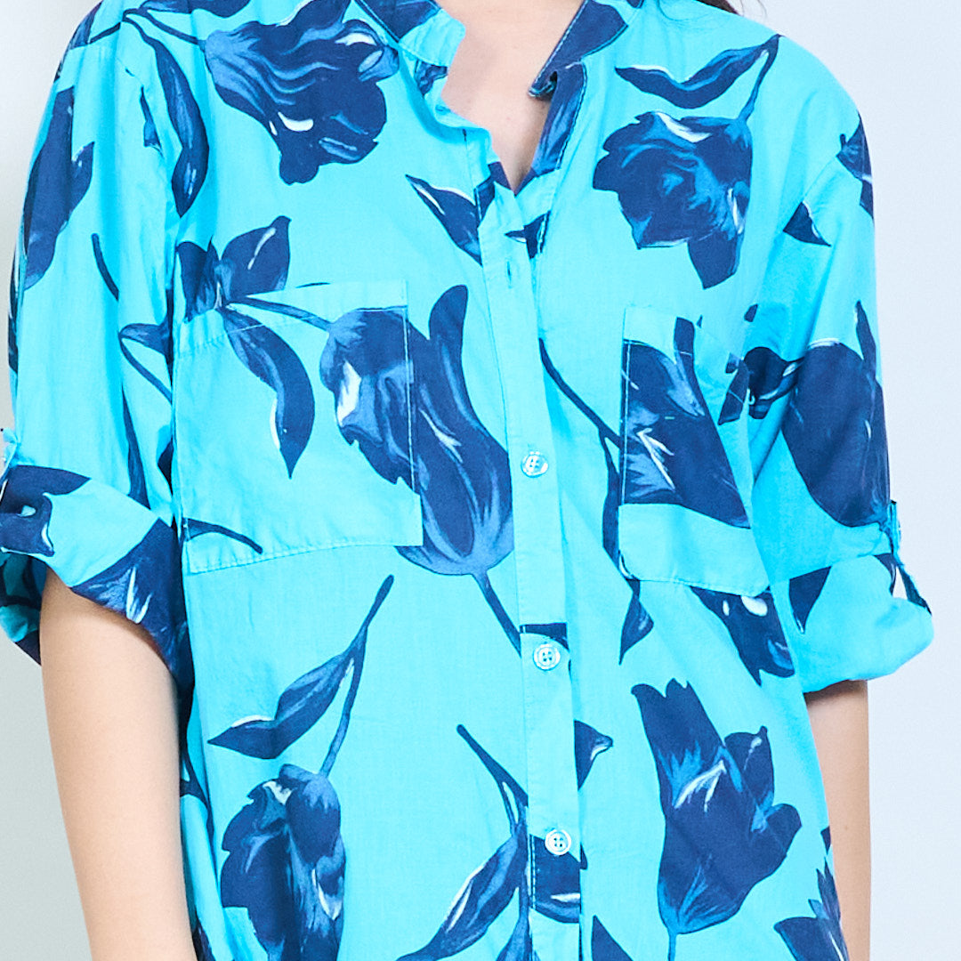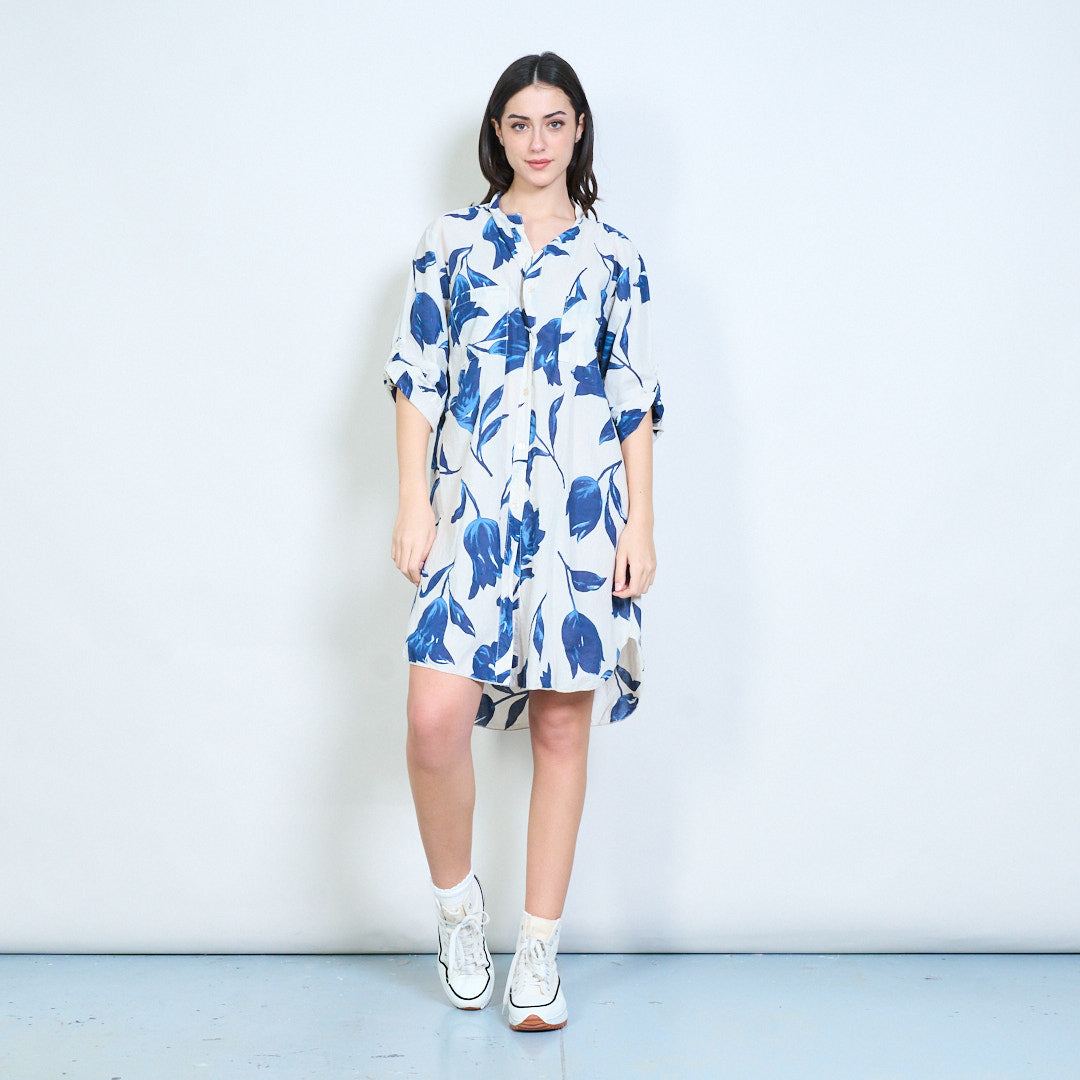 Sprzedam hurtową koszulę o długim kroju z kwiatowym nadrukiem i zapinaną na guziki