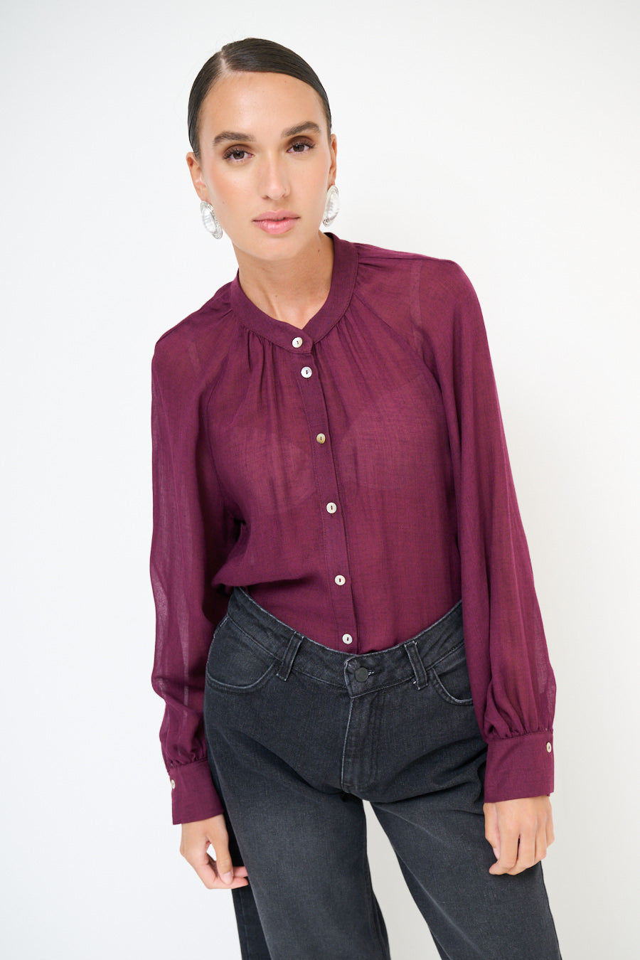 Czysta okrągła bluzka na guziki z rękawami z puchu hurtowo