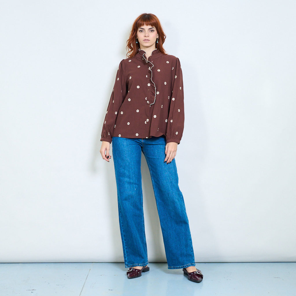 - Długie, bufiaste rękawy z marszczonymi mankietami dodają elegancji