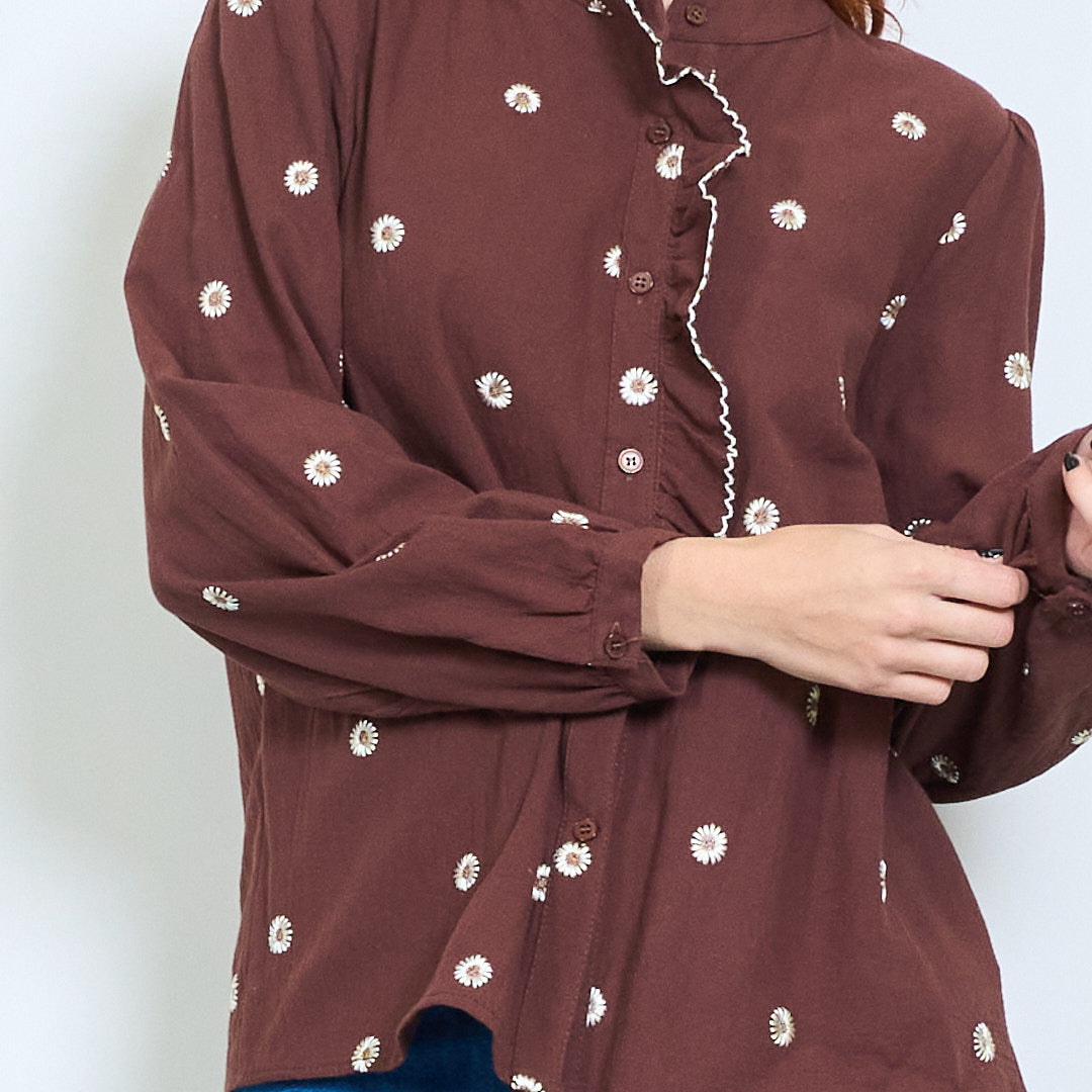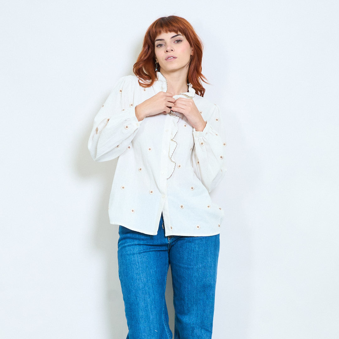 - Delikatny kwiatowy wzór haftu podkreślający jej romantyczny urok
