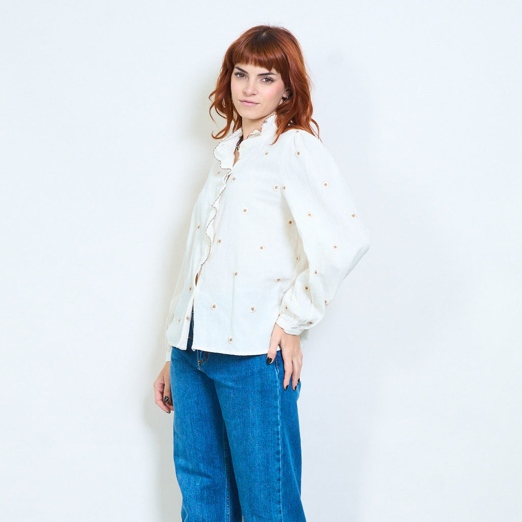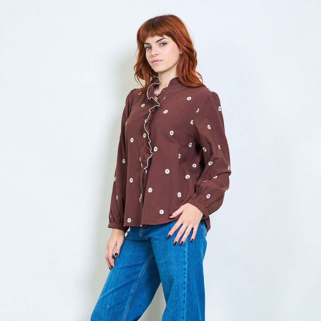 Hurtownia bluzek z haftowanym kwiatowym wzorem i dekoltem w szpic