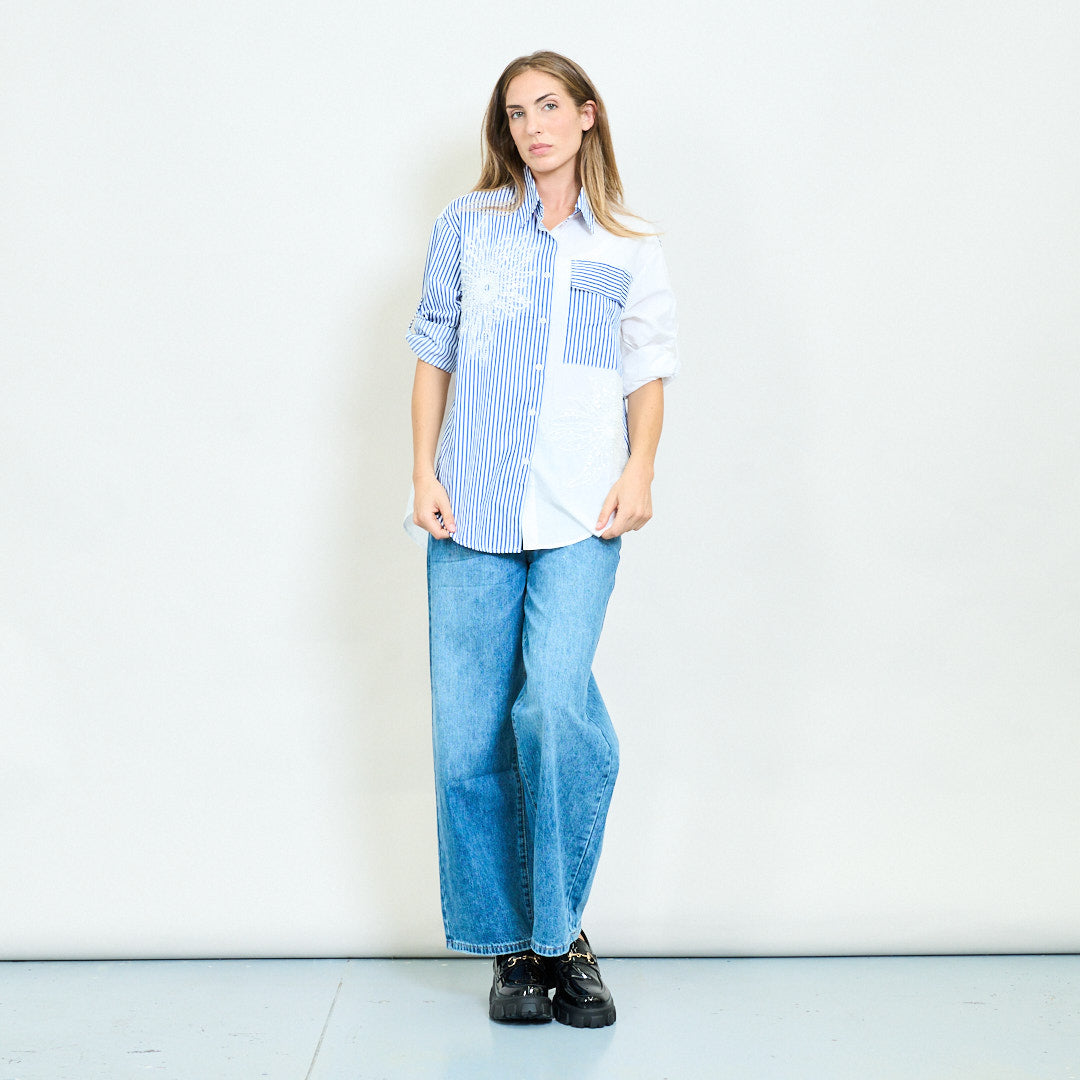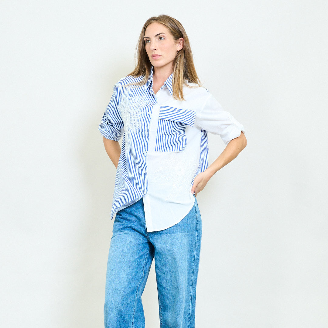 Koszula kontrastowa w paski z hurtową frezentacją kwiatową